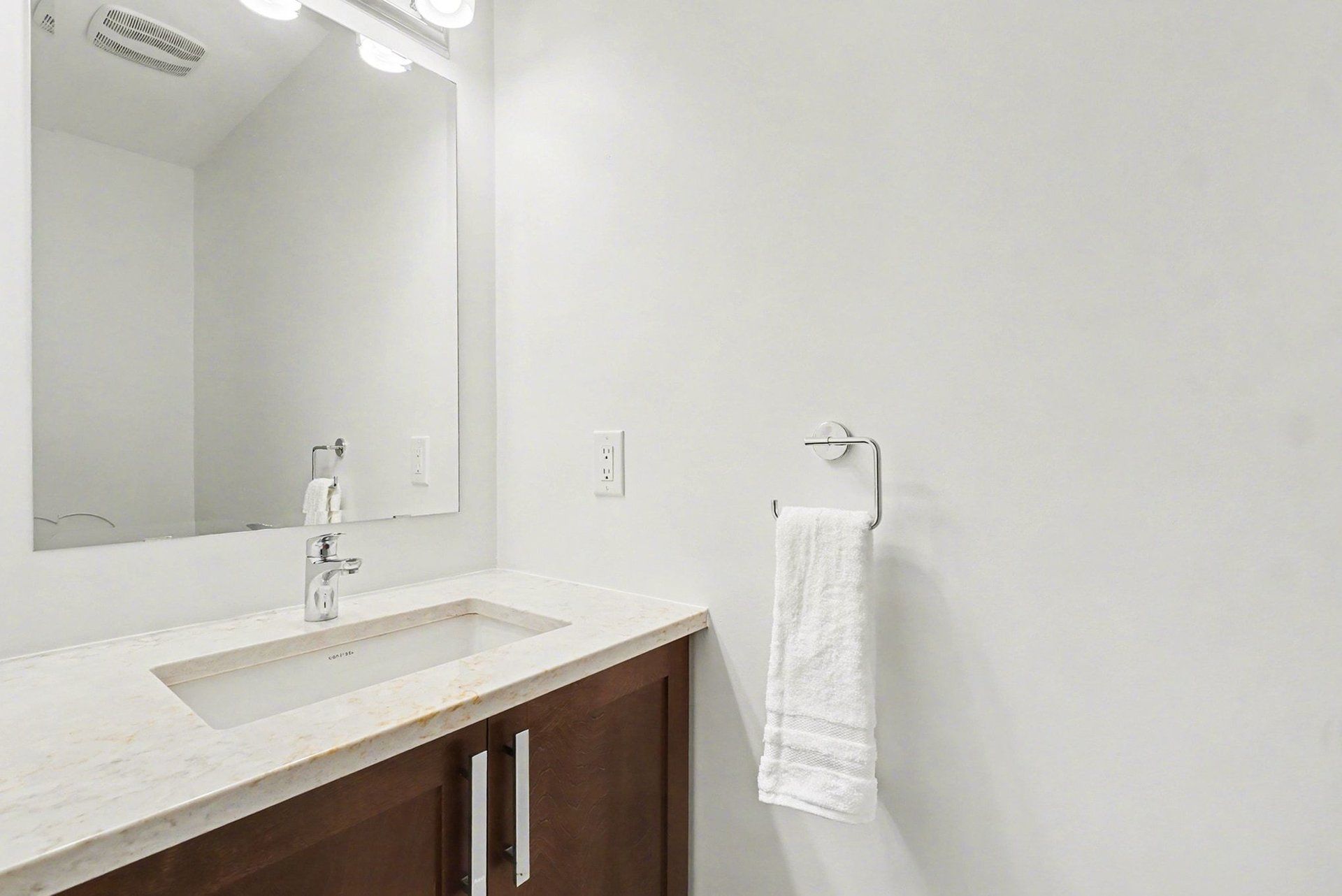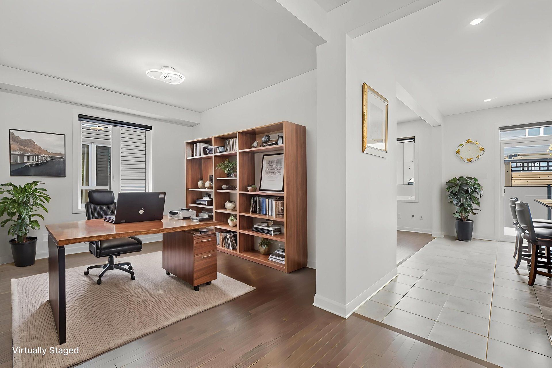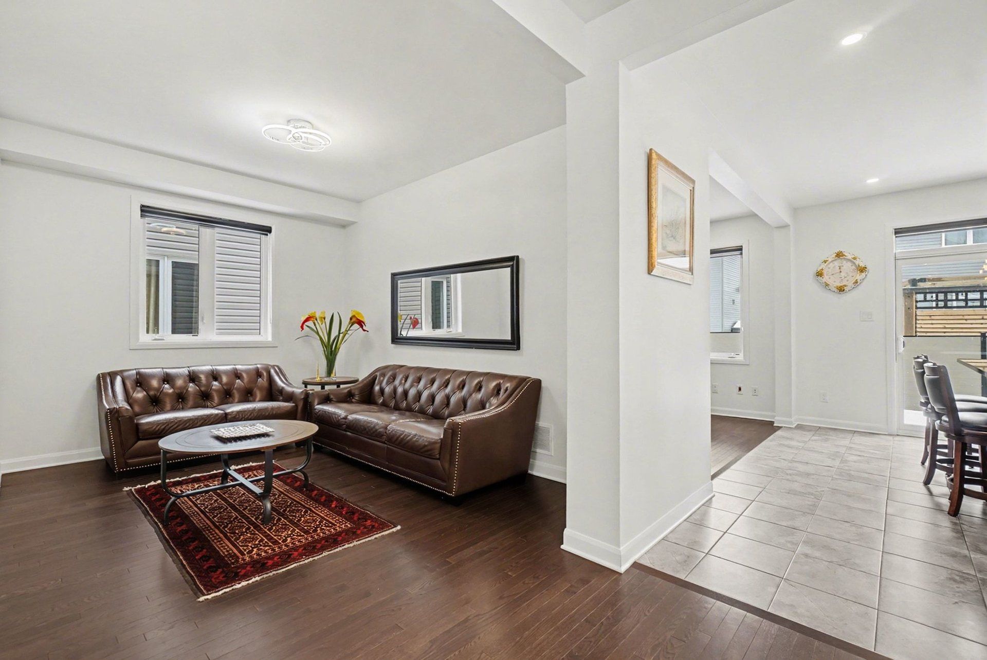 • Gourmet kitchen with modern appliances, quartz countertops, and a central island.