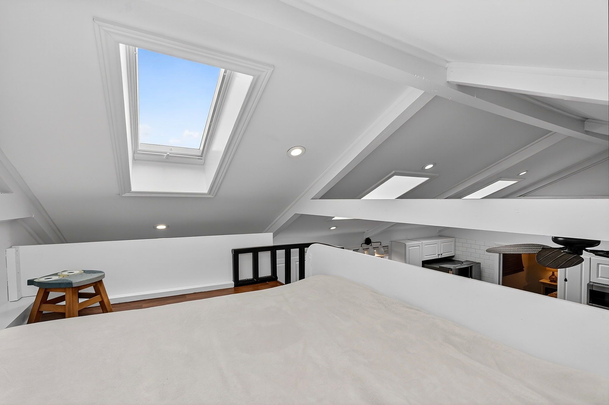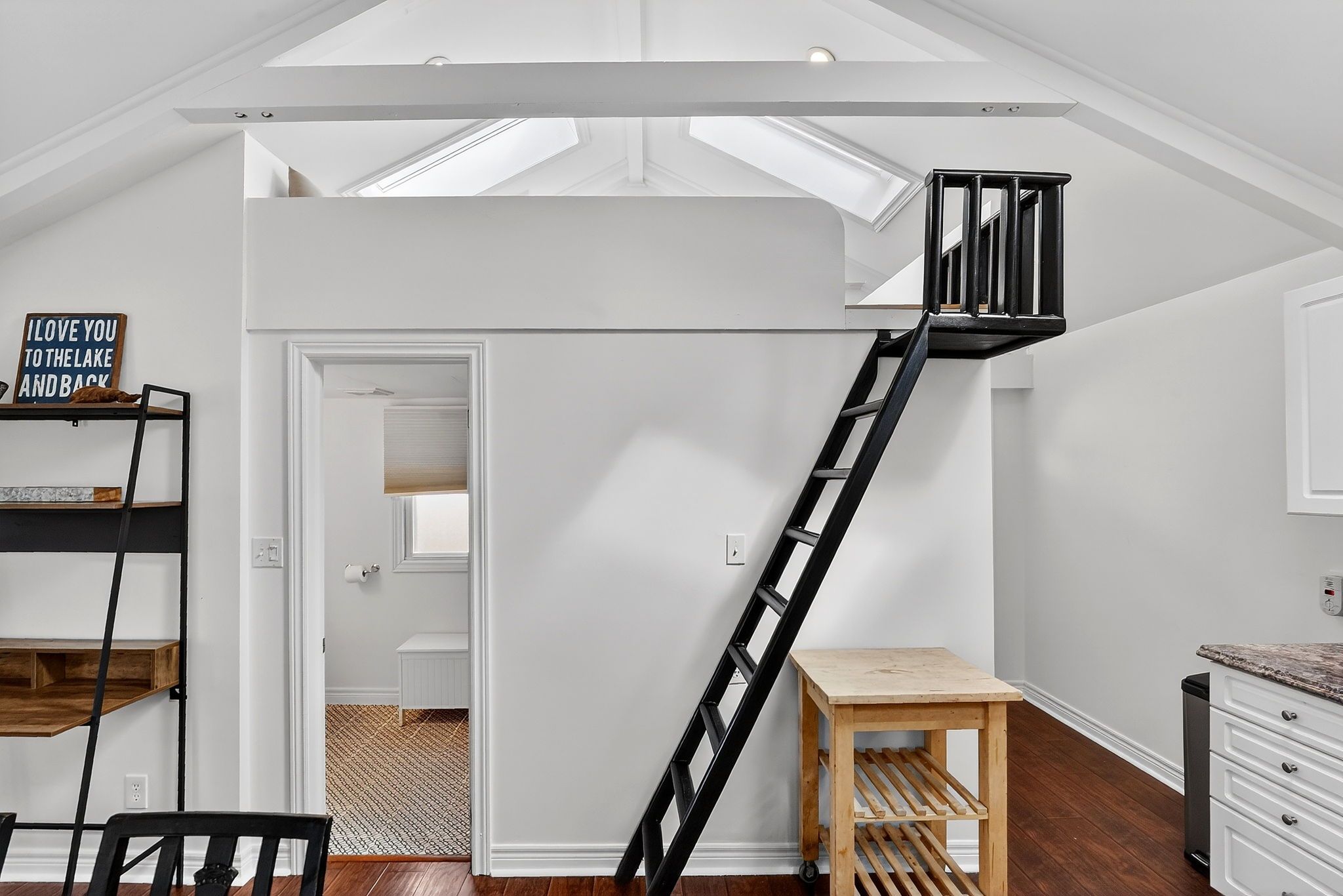 • Lofted bedroom space ideal for guests, studio, or retreat.