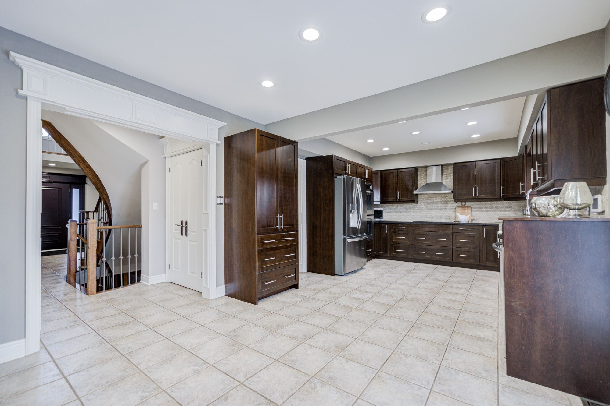 Welcome to this beautifully upgraded 4-bedroom detached gem nestled on a quiet, family-friendly street in vaughan's sought-after maple community *featuring an elegant stone front elevation, custom double-door entry, and landscaped curb appeal *this sun-filled home impresses with a bright, open-concept layout *the spacious living and dining areas are framed by decorative columns and rich hardwood floors, while the expansive kitchen boasts modern cabinetry, a beverage cooler, and walk-out to a large, maintenance-free deck with glass railings *the inviting family room offers a cozy gas fireplace and overlooks the serene backyard *a grand spiral staircase leads to generous bedrooms and updated bathrooms *the finished walk-out basement includes a second full kitchen, 3-piece bath, and gas fireplace - ideal for in-law living or income potential *close to top-rated schools, parks, transit, and more!