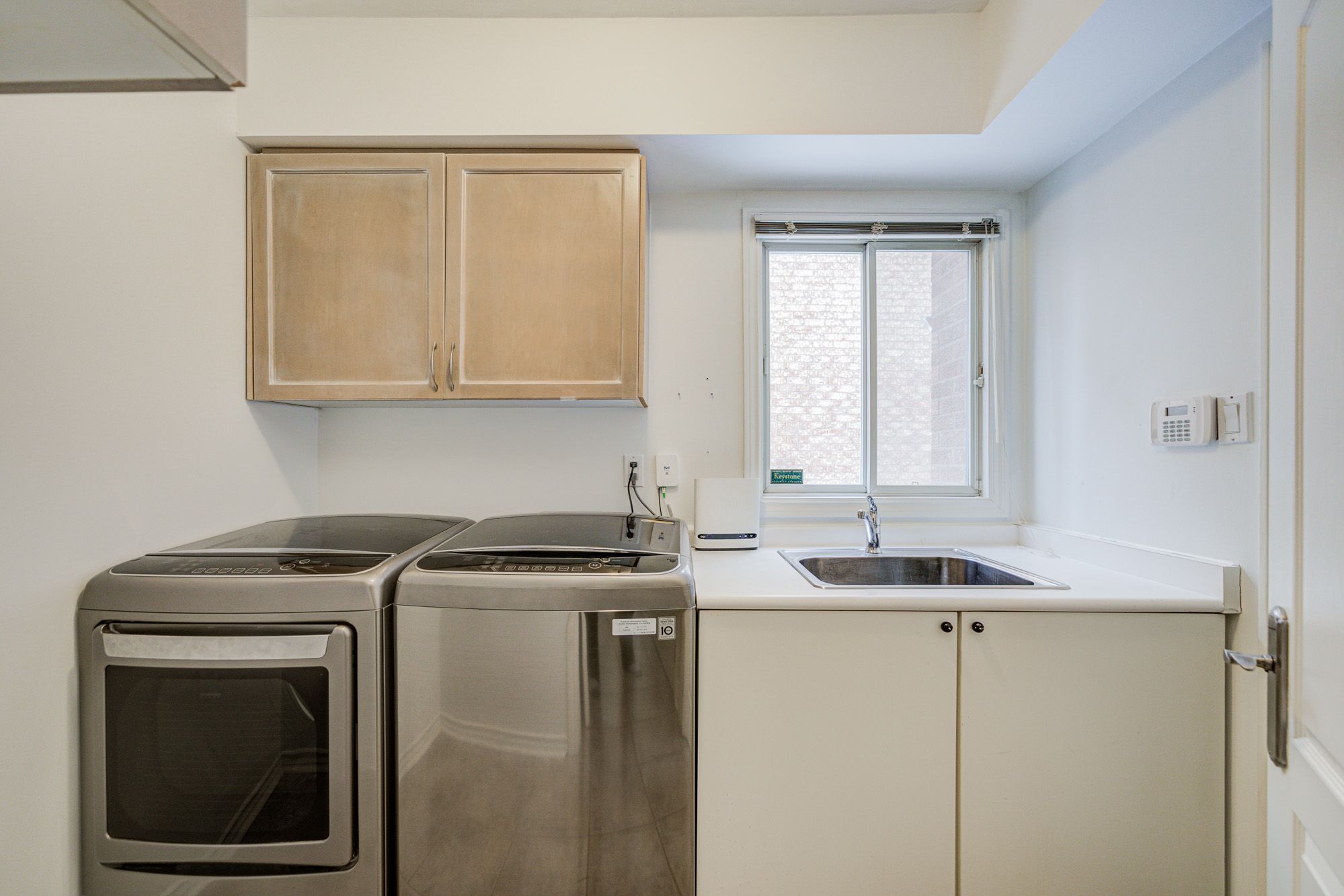• Modern kitchen with beverage cooler and access to a large deck.