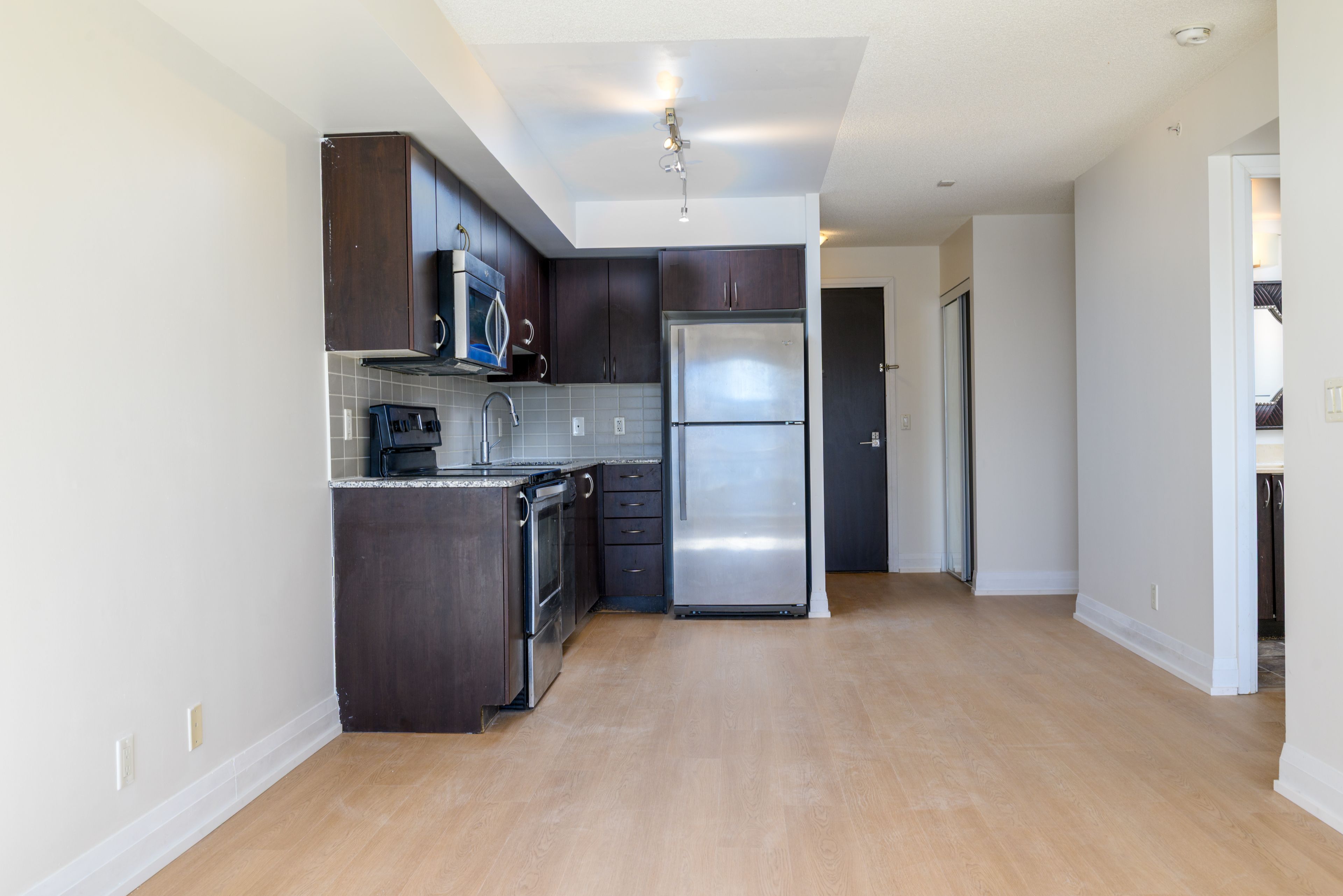 • Bright one plus den condo with a large open balcony.