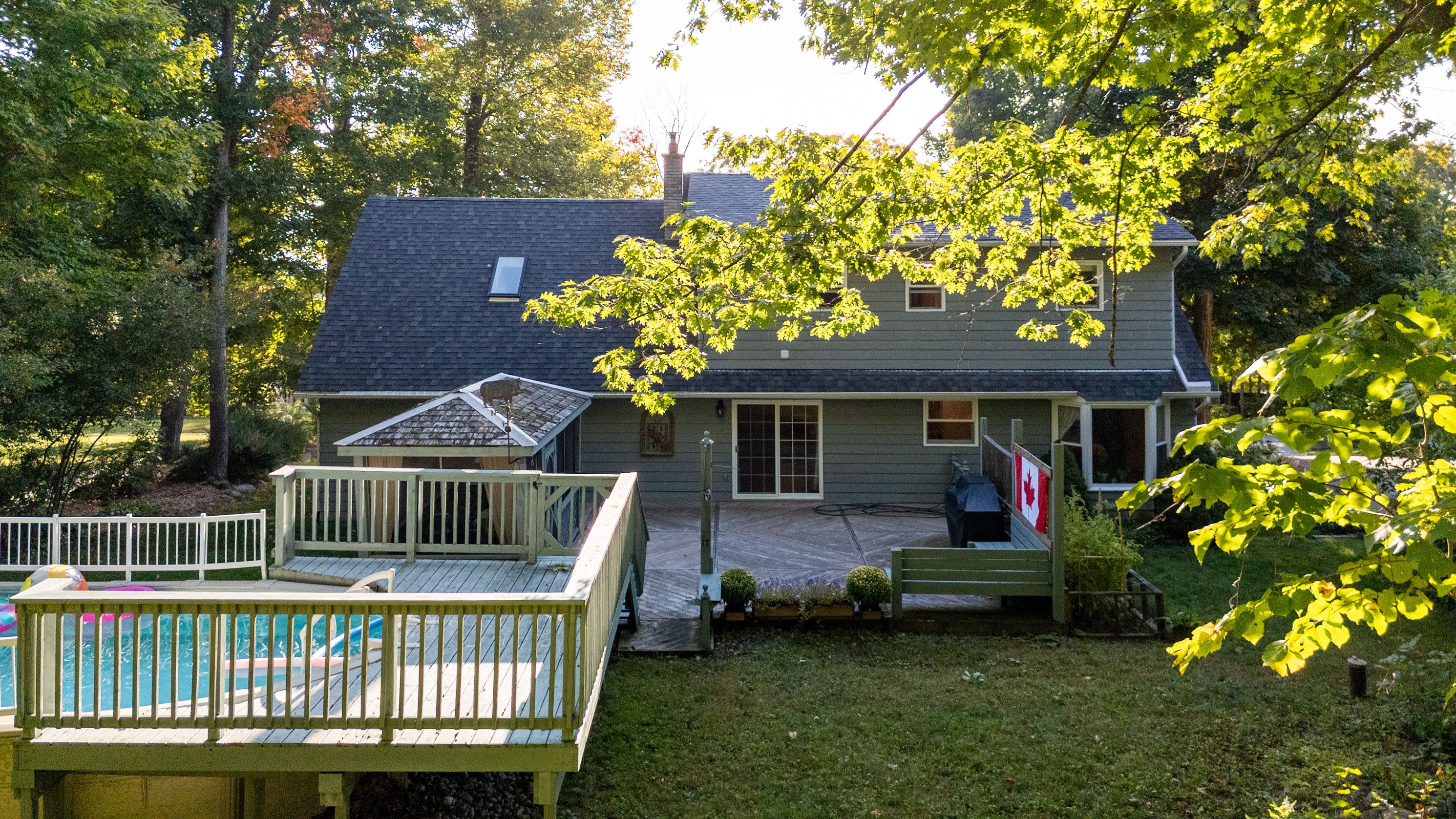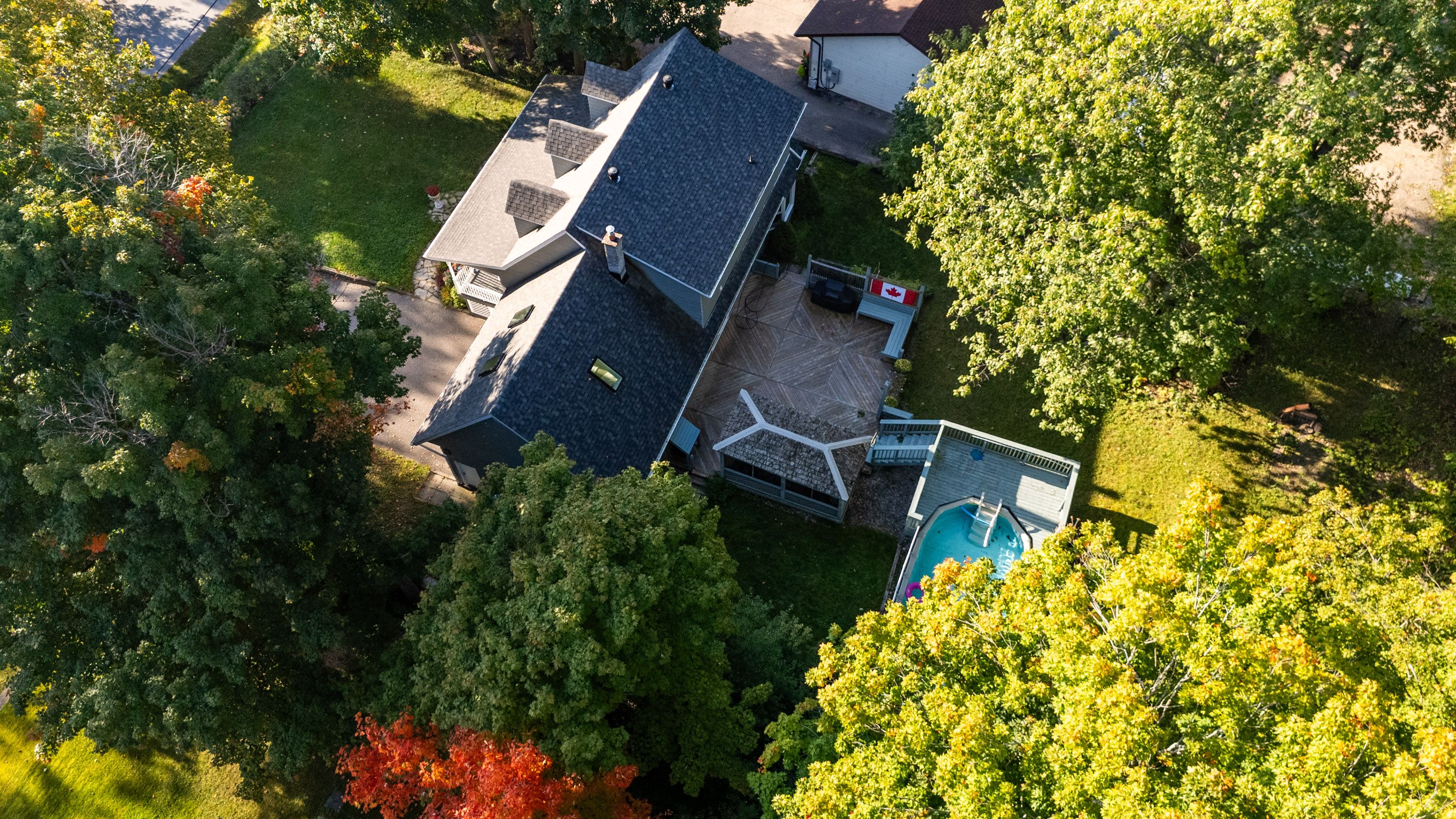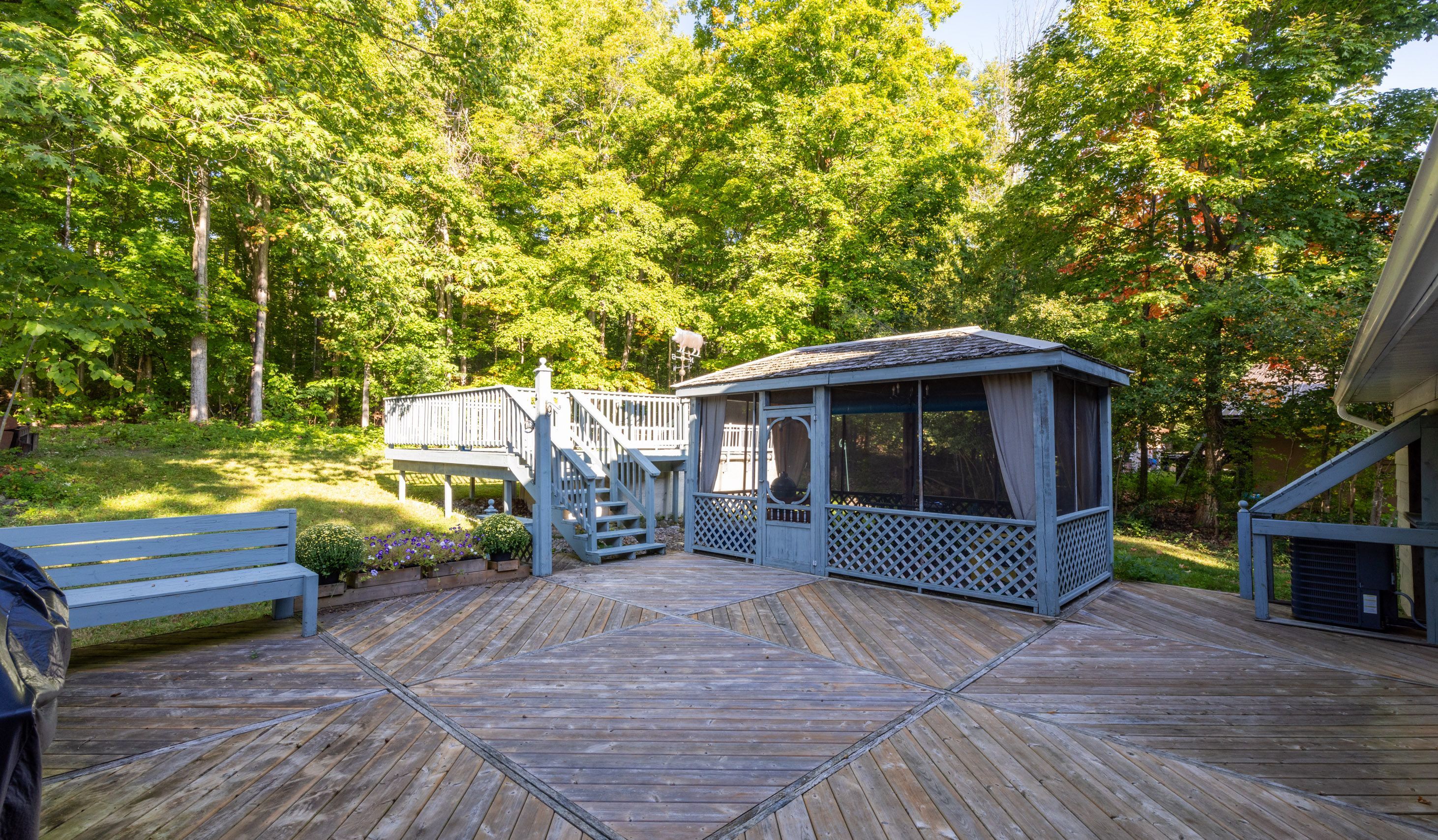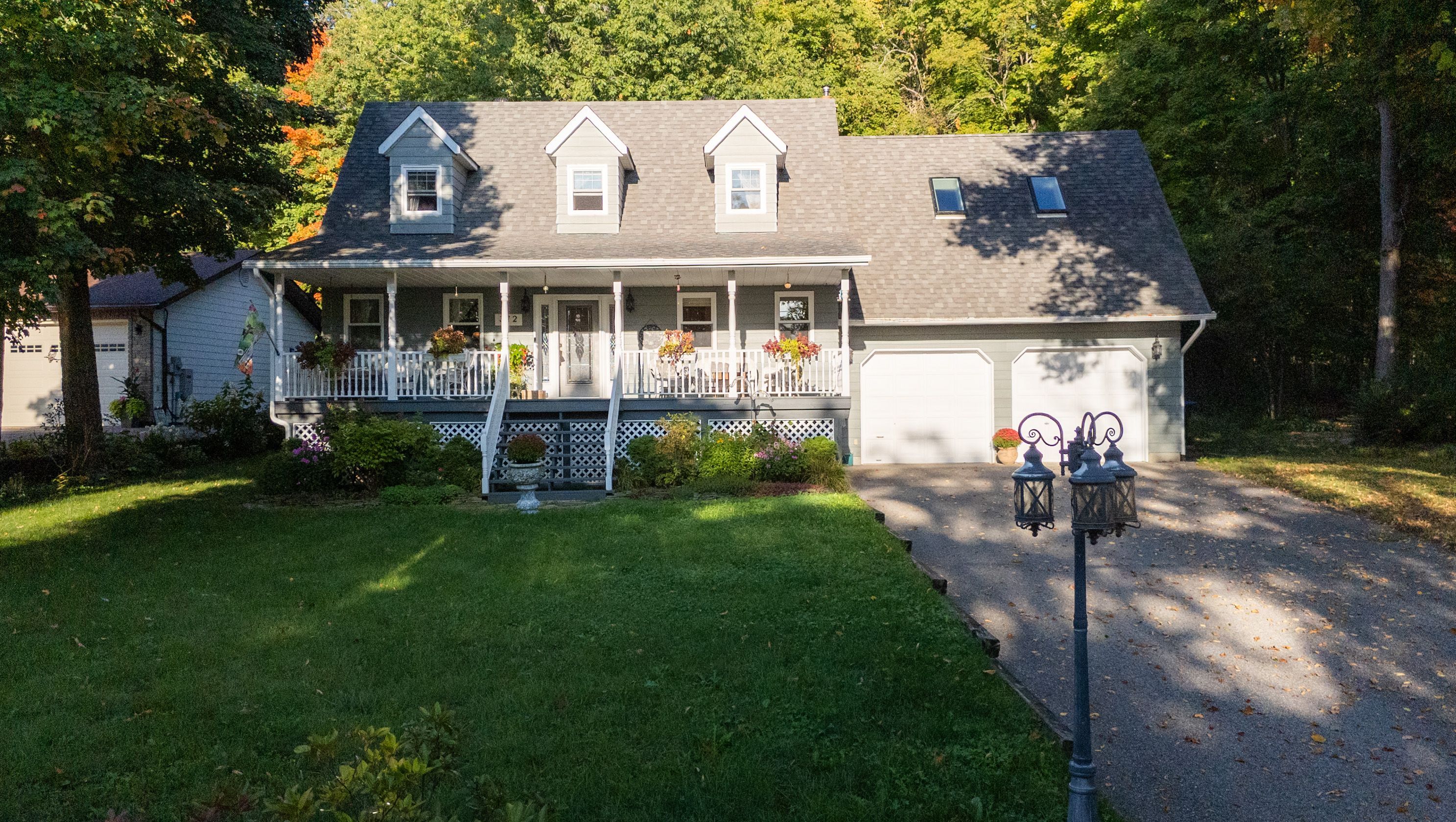 Welcome to 372 lakewood, an exquisite family home spanning approximately 3,000 square feet, perfectly blending modern elegance with timeless charm, just steps from the serene shores of midland bay. This rural retreat offers breathtaking water views and a peaceful ambiance while remaining conveniently close to local amenities. Step inside to a bright and airy open-concept living space, bathed in natural light, ideal for cozy family moments or vibrant entertaining. Warm up on chilly evenings by the jotul wood stove, creating a cozy ambiance for nights by the fire. The home features a recently replaced roof, a new air conditioning system, and a new furnace, ensuring comfort and reliability for years to come. An expansive loft with skylights, perfect for stargazing, serves as a versatile space for an oversized office or additional bedroom. The fully finished basement offers a multi-use area, ideal for a gym, yoga studio, or entertainment space. Outside, a private backyard oasis awaits, enveloped by mature oaks and maple trees that provide exceptional privacy and a lush, natural canopy. The expansive lot, dotted with skylights for nighttime star viewing, includes a beautiful patio and charming gazebo, perfect for tranquil evenings or hosting gatherings. Enjoy the luxury of a heated salt-water above-ground pool for relaxation or family fun. A private walking path leads to a secluded sand beach, offering exclusive access to midland bays tranquil shores. The front porch, with stunning bay vistas, invites you to unwind and soak in the waterfront beauty. A fully finished garage with high ceilings provides ample space for vehicles, storage, or a workshop. With a generous yard ideal for gardening, outdoor activities, or simply embracing natures calm, 372 lakewood is a sanctuary of comfort, privacy, and scenic splendor.