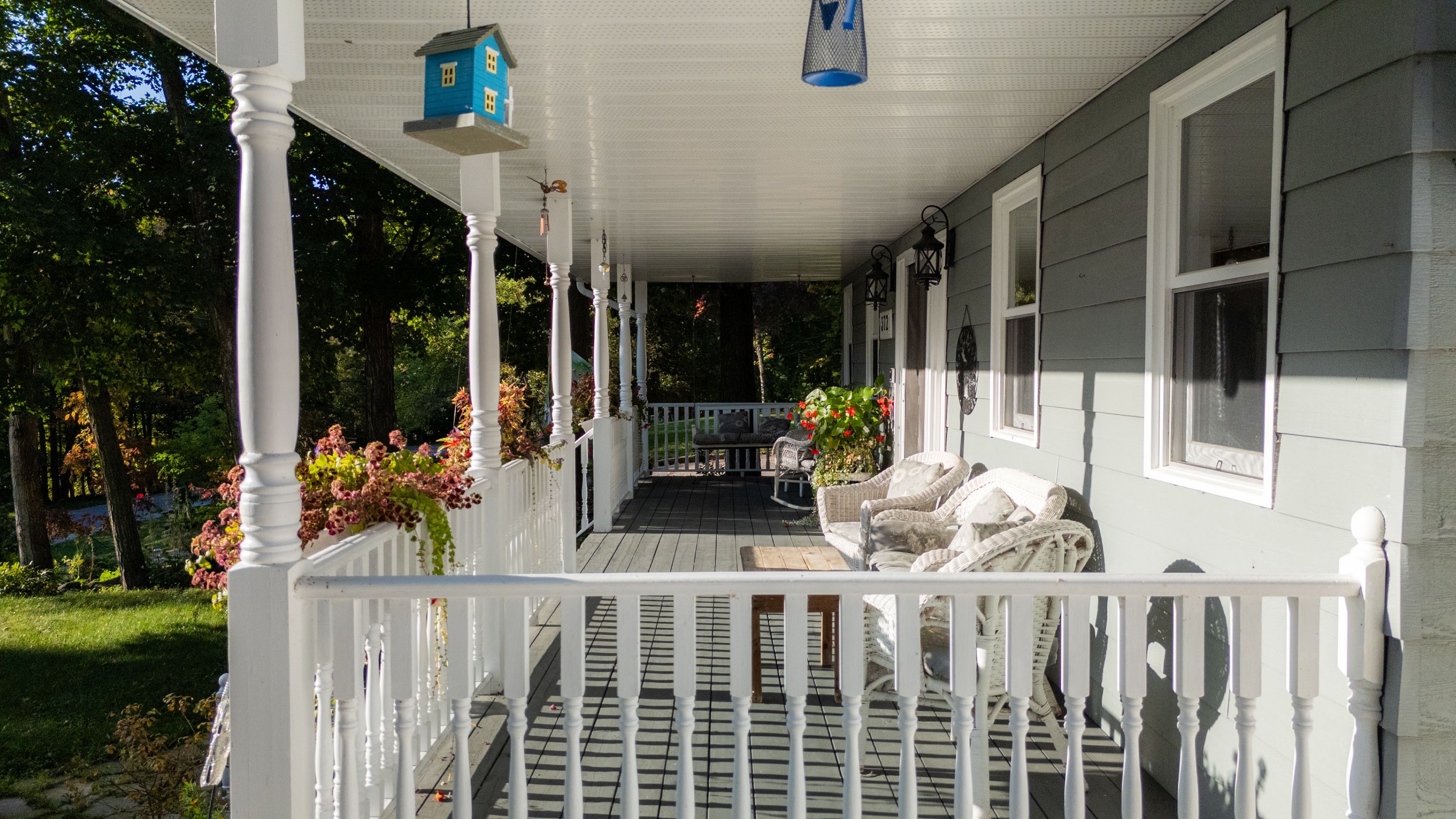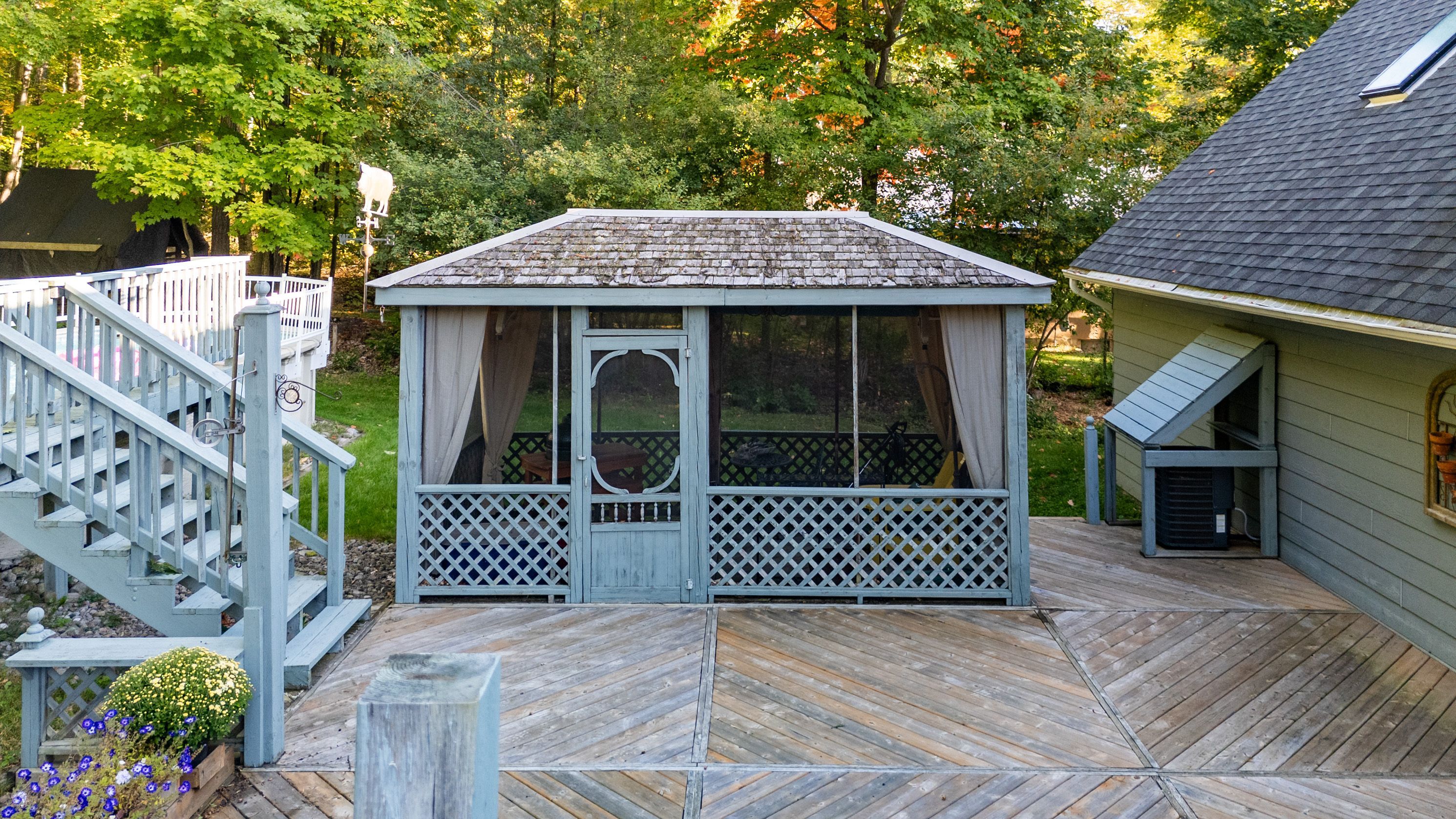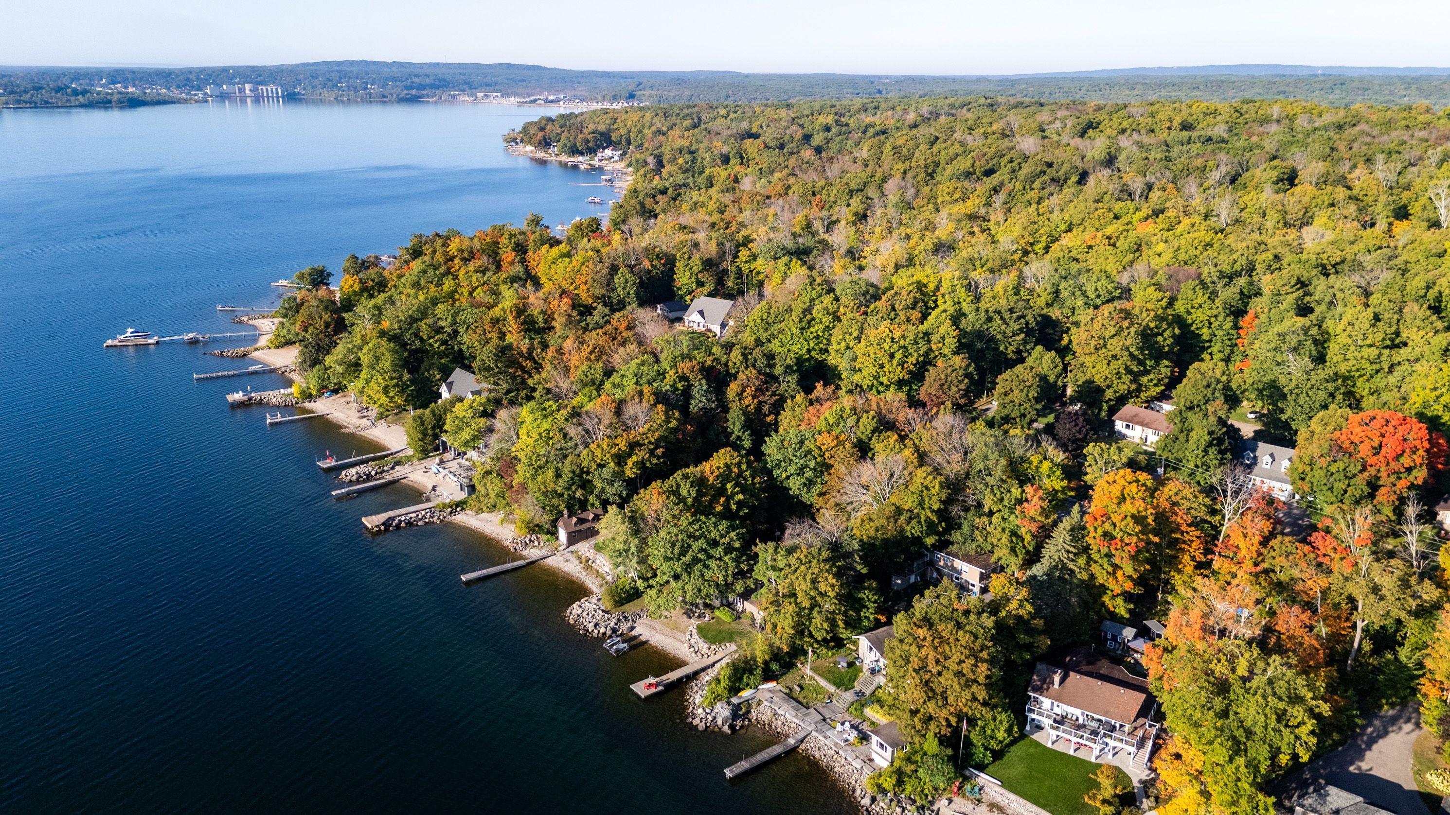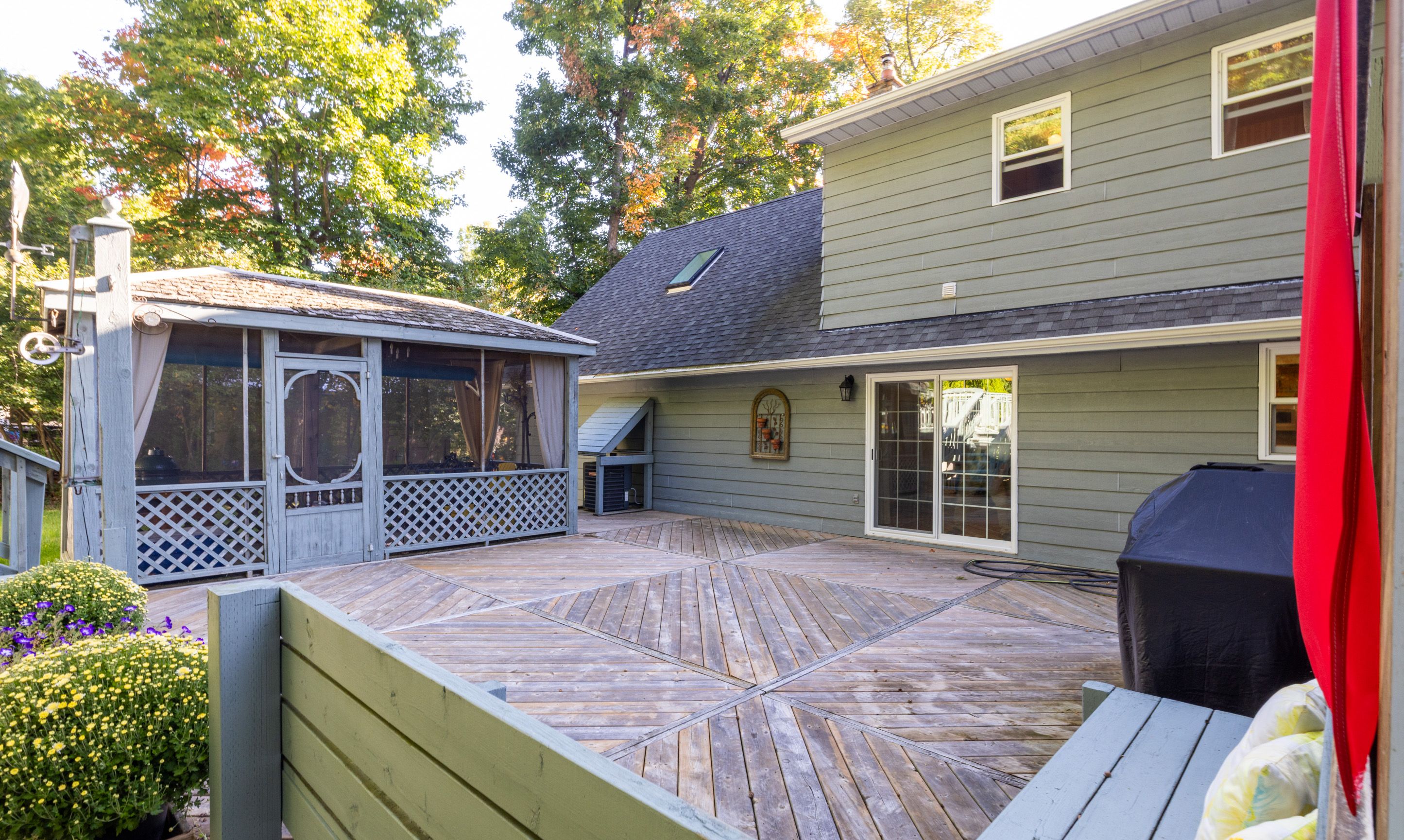 Welcome to 372 lakewood, an exquisite family home spanning approximately 3,000 square feet, perfectly blending modern elegance with timeless charm, just steps from the serene shores of midland bay. This rural retreat offers breathtaking water views and a peaceful ambiance while remaining conveniently close to local amenities. Step inside to a bright and airy open-concept living space, bathed in natural light, ideal for cozy family moments or vibrant entertaining. Warm up on chilly evenings by the jotul wood stove, creating a cozy ambiance for nights by the fire. The home features a recently replaced roof, a new air conditioning system, and a new furnace, ensuring comfort and reliability for years to come. An expansive loft with skylights, perfect for stargazing, serves as a versatile space for an oversized office or additional bedroom. The fully finished basement offers a multi-use area, ideal for a gym, yoga studio, or entertainment space. Outside, a private backyard oasis awaits, enveloped by mature oaks and maple trees that provide exceptional privacy and a lush, natural canopy. The expansive lot, dotted with skylights for nighttime star viewing, includes a beautiful patio and charming gazebo, perfect for tranquil evenings or hosting gatherings. Enjoy the luxury of a heated salt-water above-ground pool for relaxation or family fun. A private walking path leads to a secluded sand beach, offering exclusive access to midland bays tranquil shores. The front porch, with stunning bay vistas, invites you to unwind and soak in the waterfront beauty. A fully finished garage with high ceilings provides ample space for vehicles, storage, or a workshop. With a generous yard ideal for gardening, outdoor activities, or simply embracing natures calm, 372 lakewood is a sanctuary of comfort, privacy, and scenic splendor.