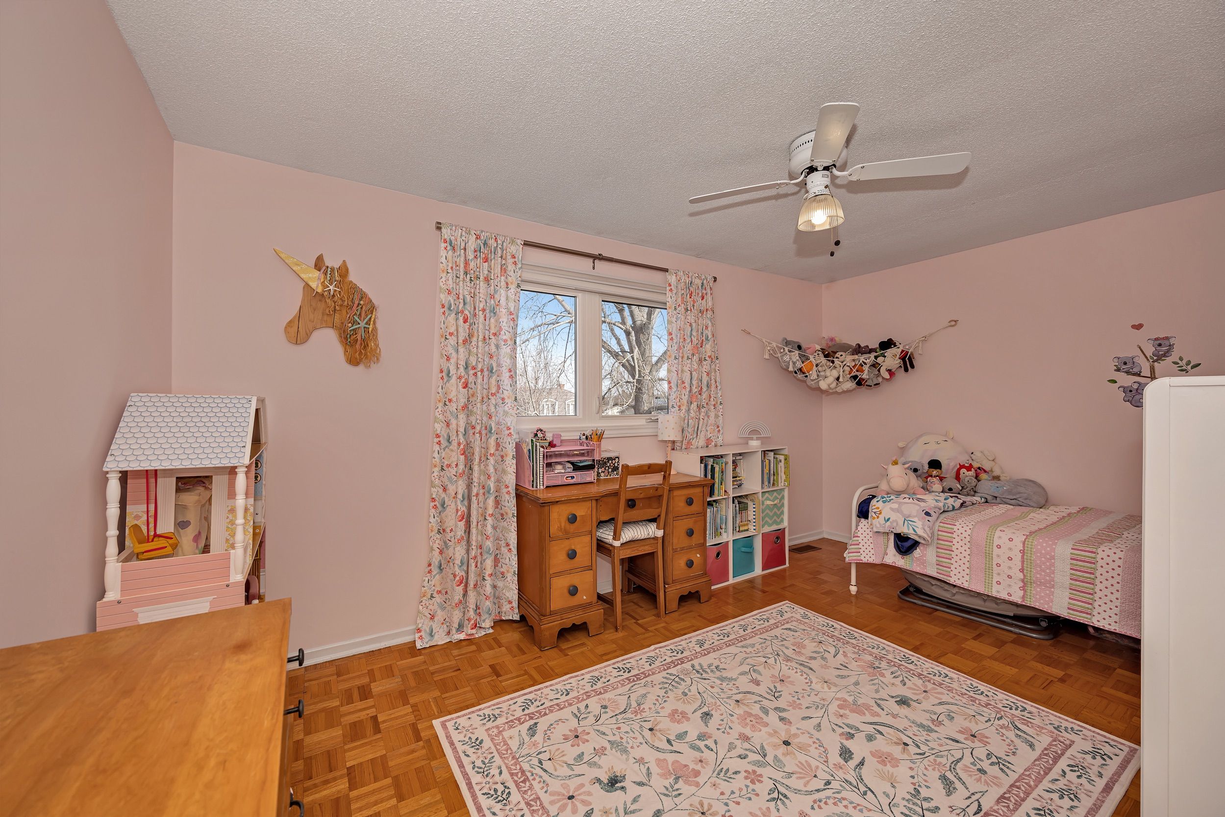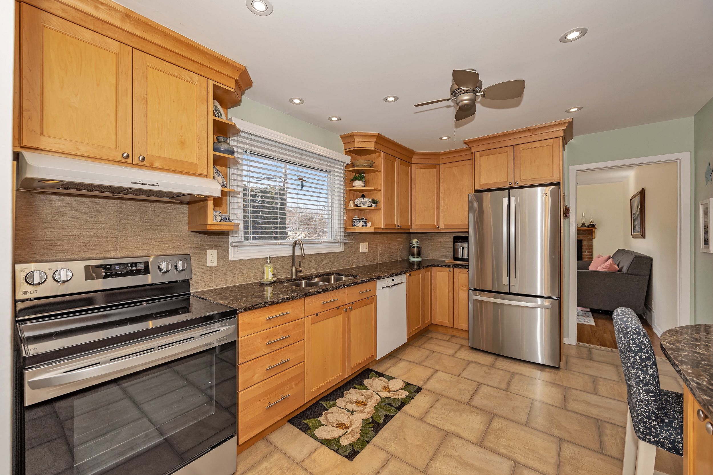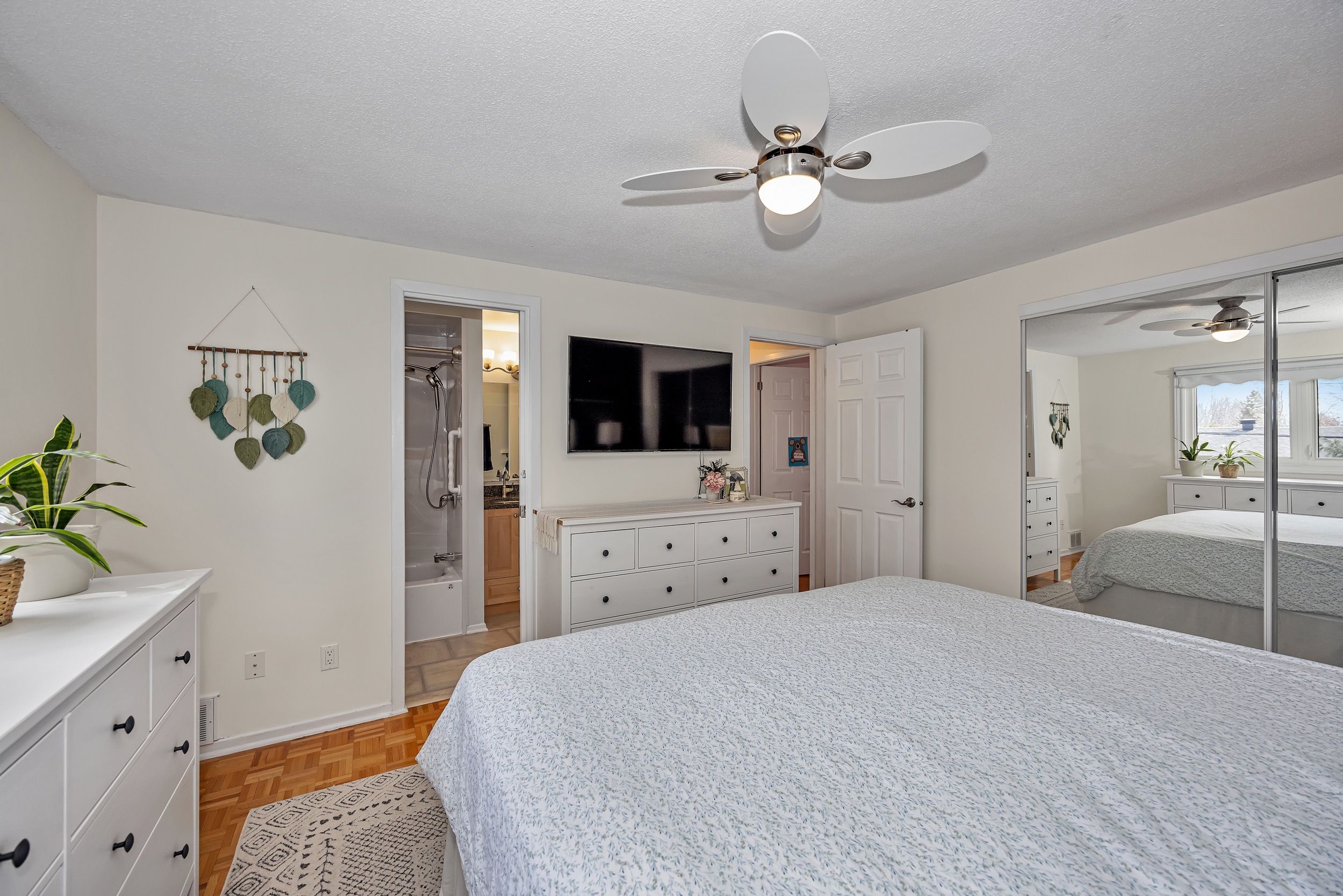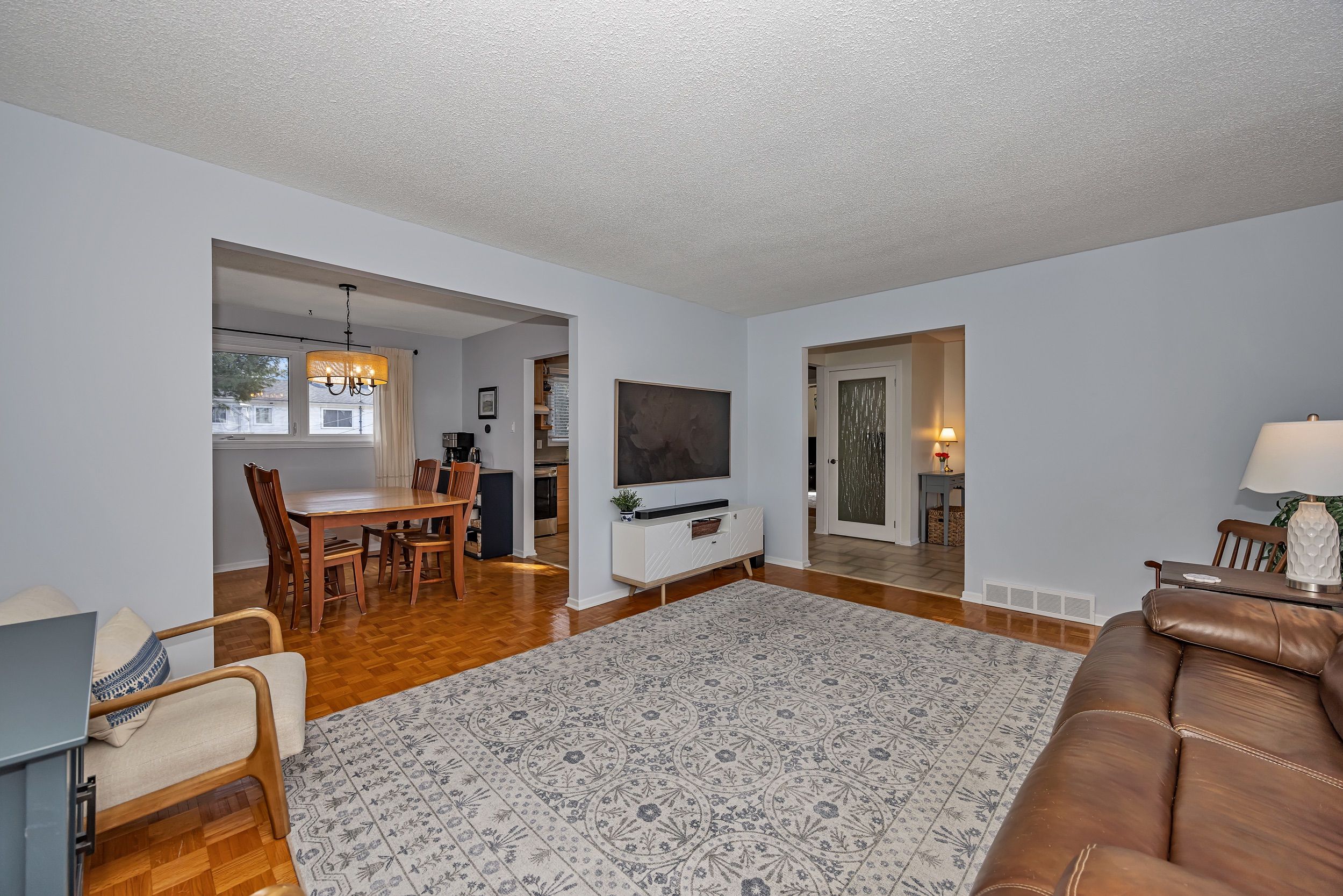 Welcome to queenswood heights! Meticulously maintained by a loving family, this spacious 4-bedroom home sits on a beautiful 60 x 100 ft lot with ideal southern exposure. Nestled on a quiet, family-friendly street, it offers the perfect setting for kids to play while being just minutes from all amenities. A large central foyer welcomes you into bright and inviting living and dining rooms. The adjacent kitchen has been fully renovated and features quality wood cabinetry with crown moulding, pot drawers, quartz countertops, pot lights, a breakfast area, and new stainless steel appliances. The main floor family room offers a cozy gas fireplace and patio doors leading to a maintenance-free composite deck and a generous backyard ready to be enjoyed. Upstairs, the primary bedroom includes a double mirrored closet and convenient cheater access to the updated main bath. Three additional bedrooms are all generously sized, ideal for growing families. Enjoy inside access to the oversized garage with high ceilings - perfect for adding a mezzanine and maximizing storage. The basement is partially finished with insulation, drywall, and electrical already completed - just add flooring and paint to significantly expand your living space. Recent updates include: hrv (2026), kitchen appliances (2025/26), washer & dryer (2024), roof and a/c (2022), furnace (2014), high-quality windows and doors (mostly 2010). Move-in ready while offering a true 4-bedroom layout is rare in this price range. Don't miss your opportunity!