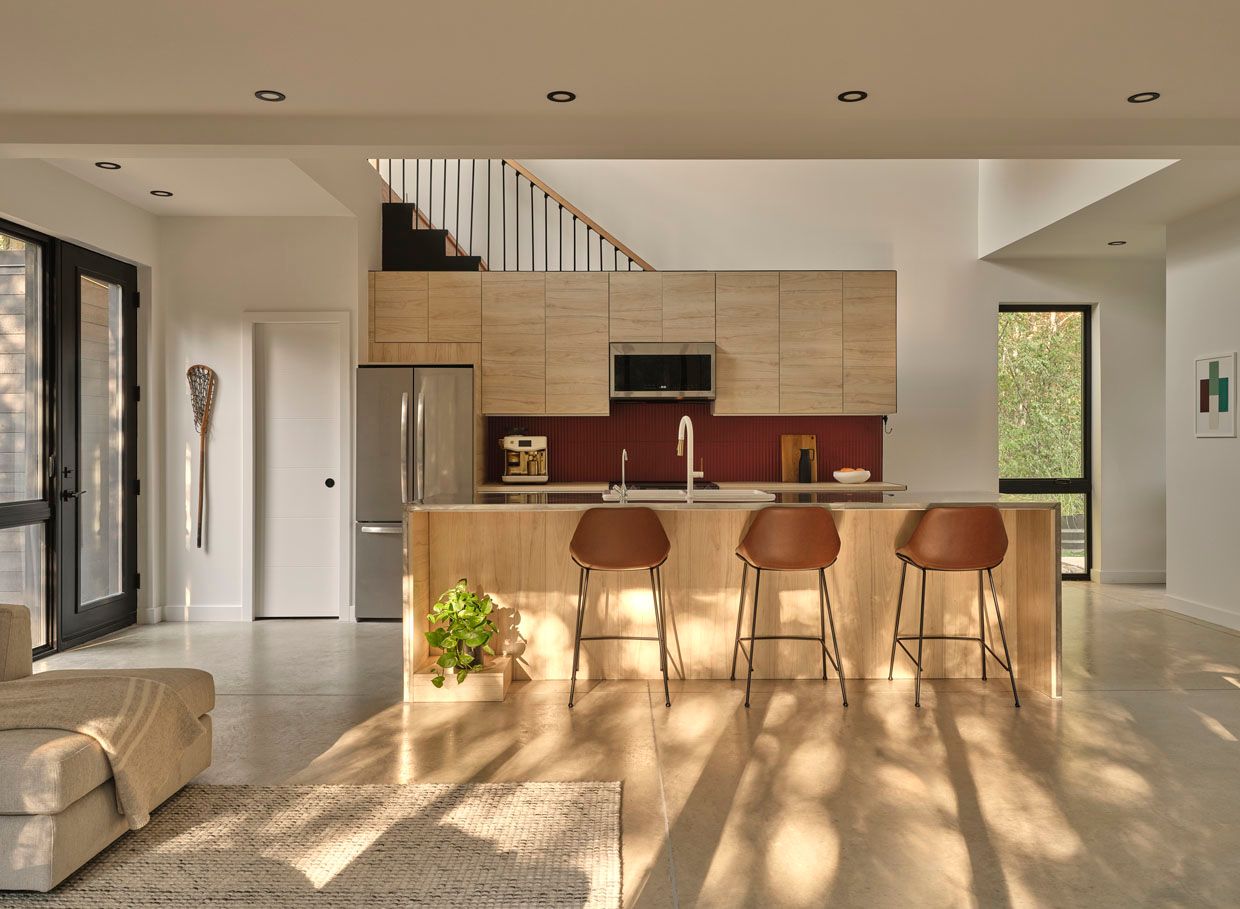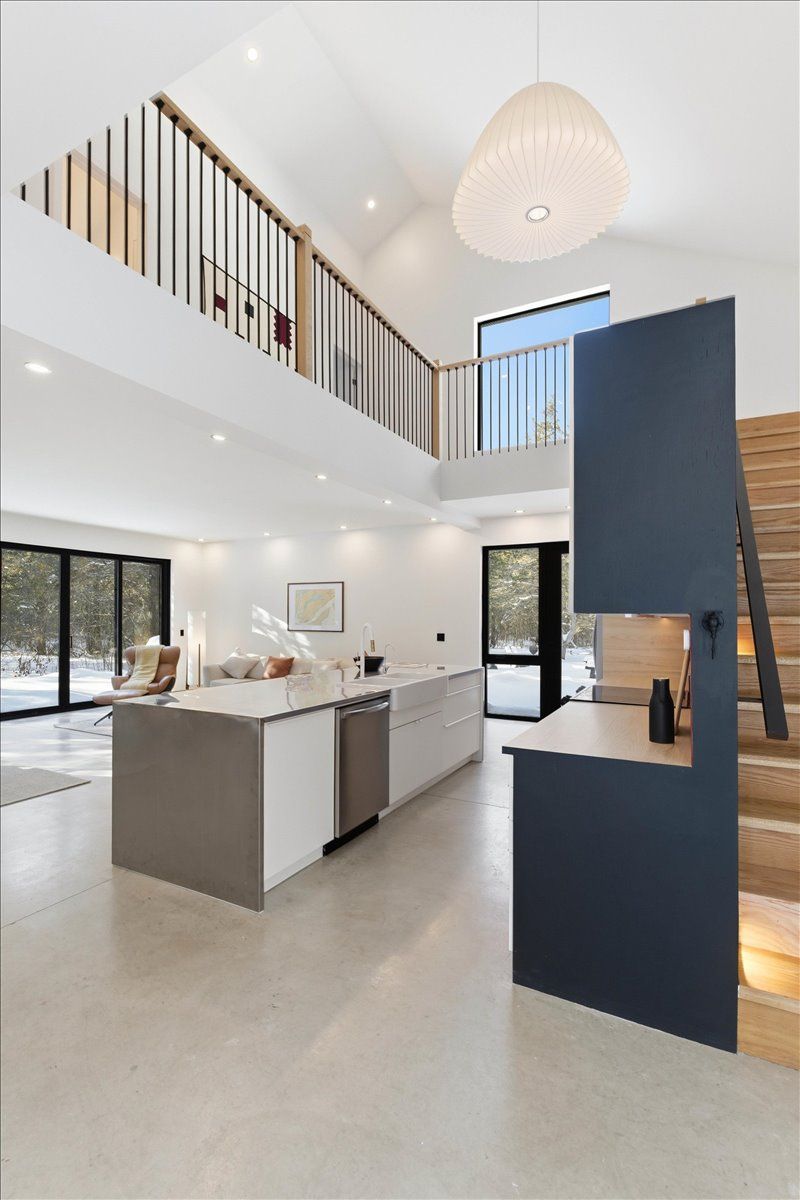 • Open-plan design with natural light from triple-glazed windows and soaring ceilings.