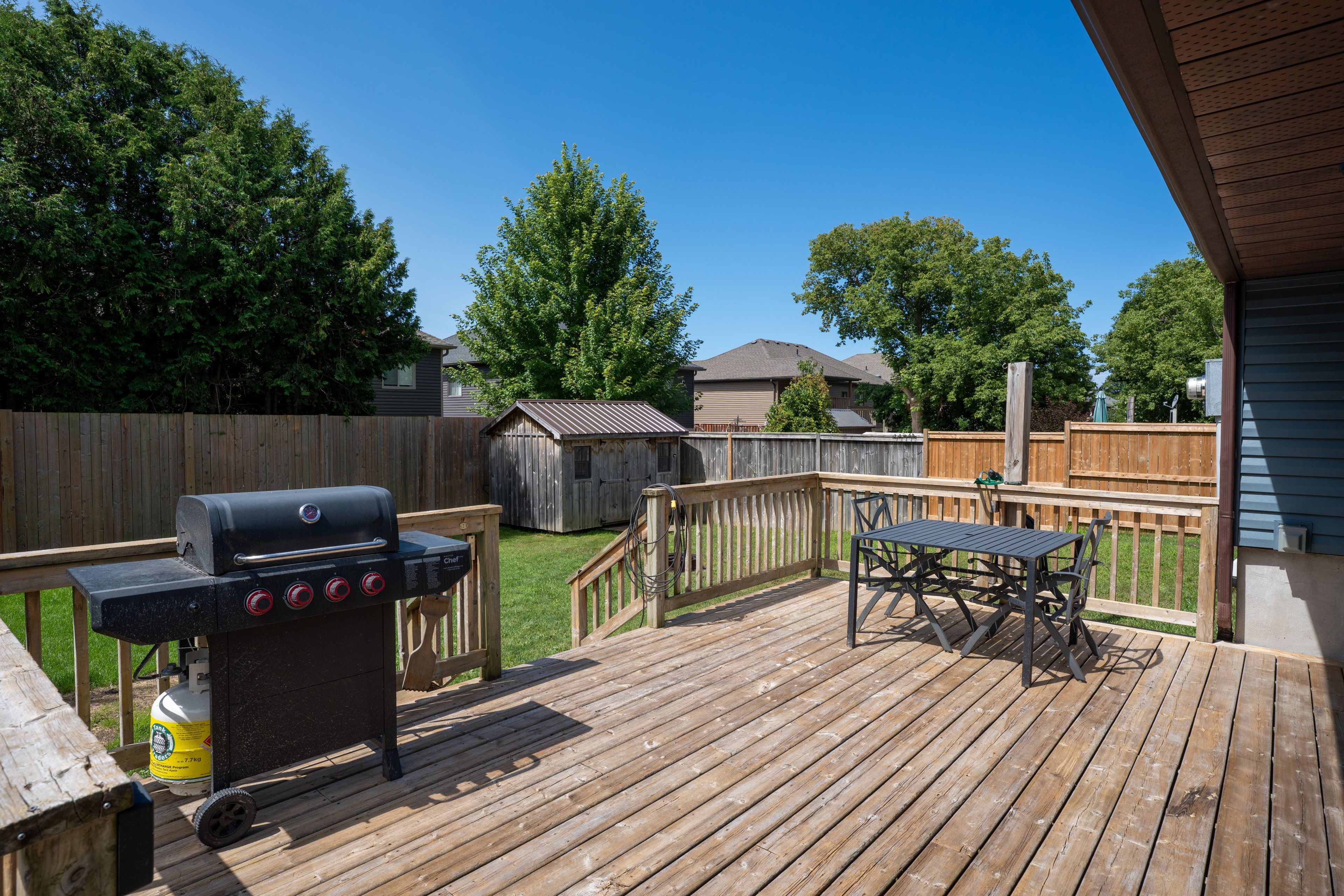 • Fully fenced yard with a spacious sundeck and storage shed.