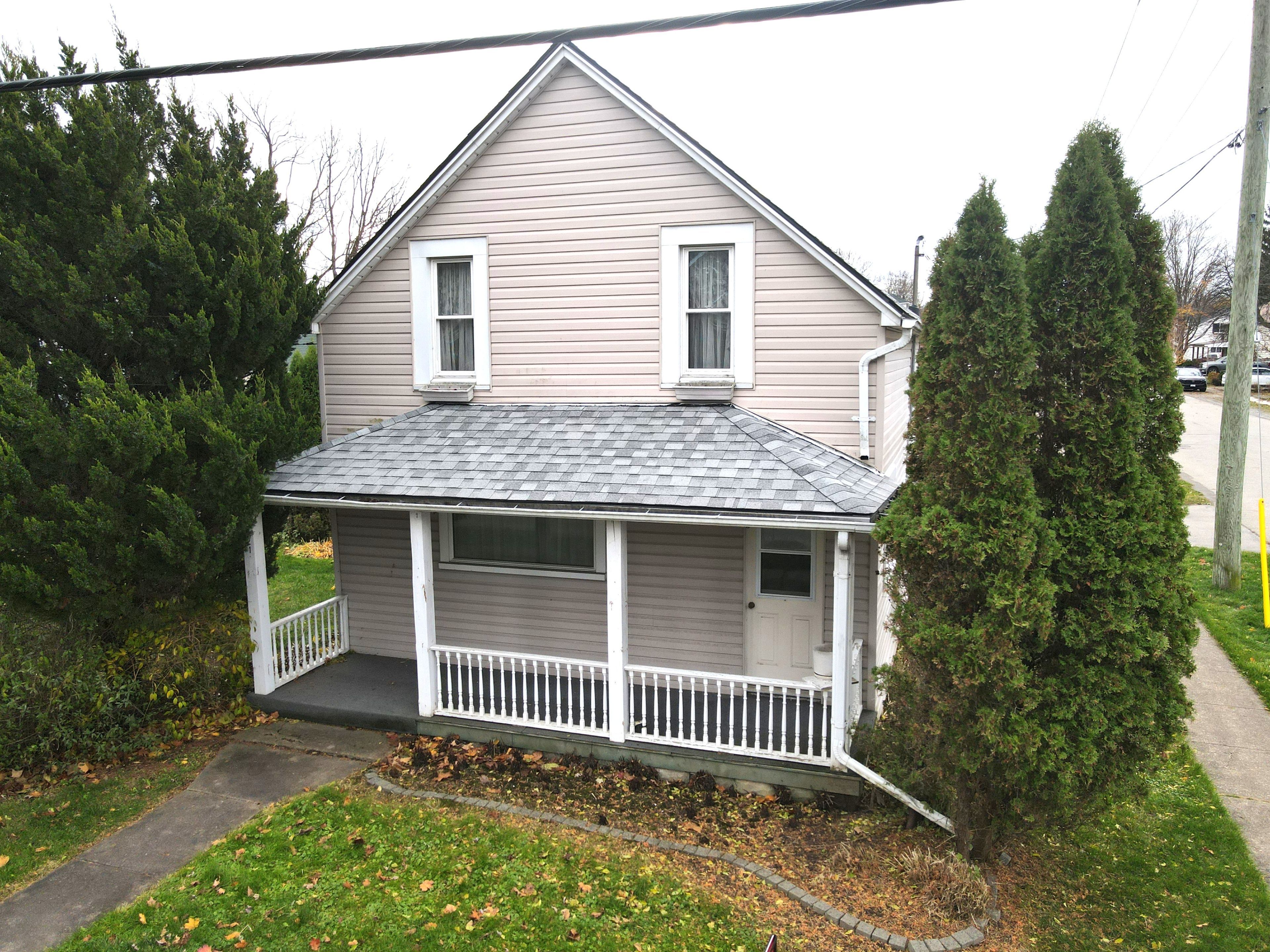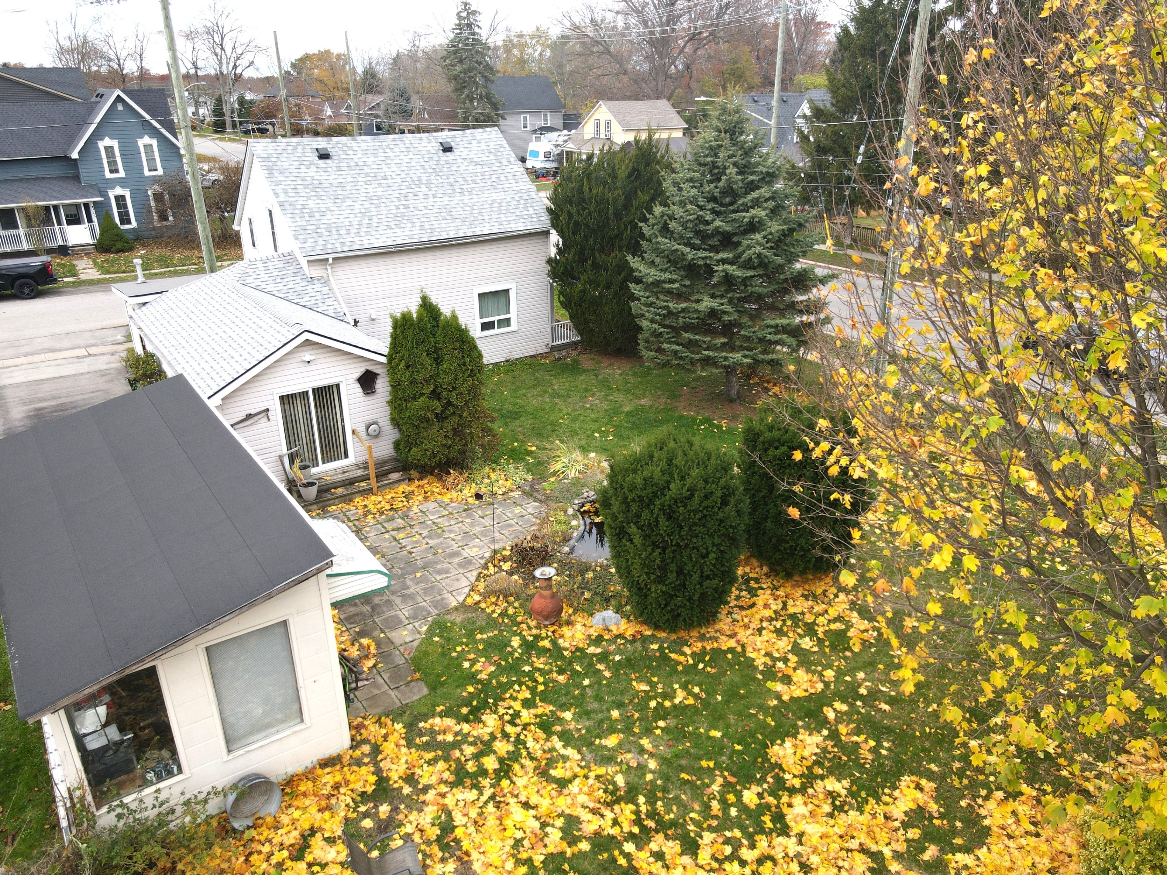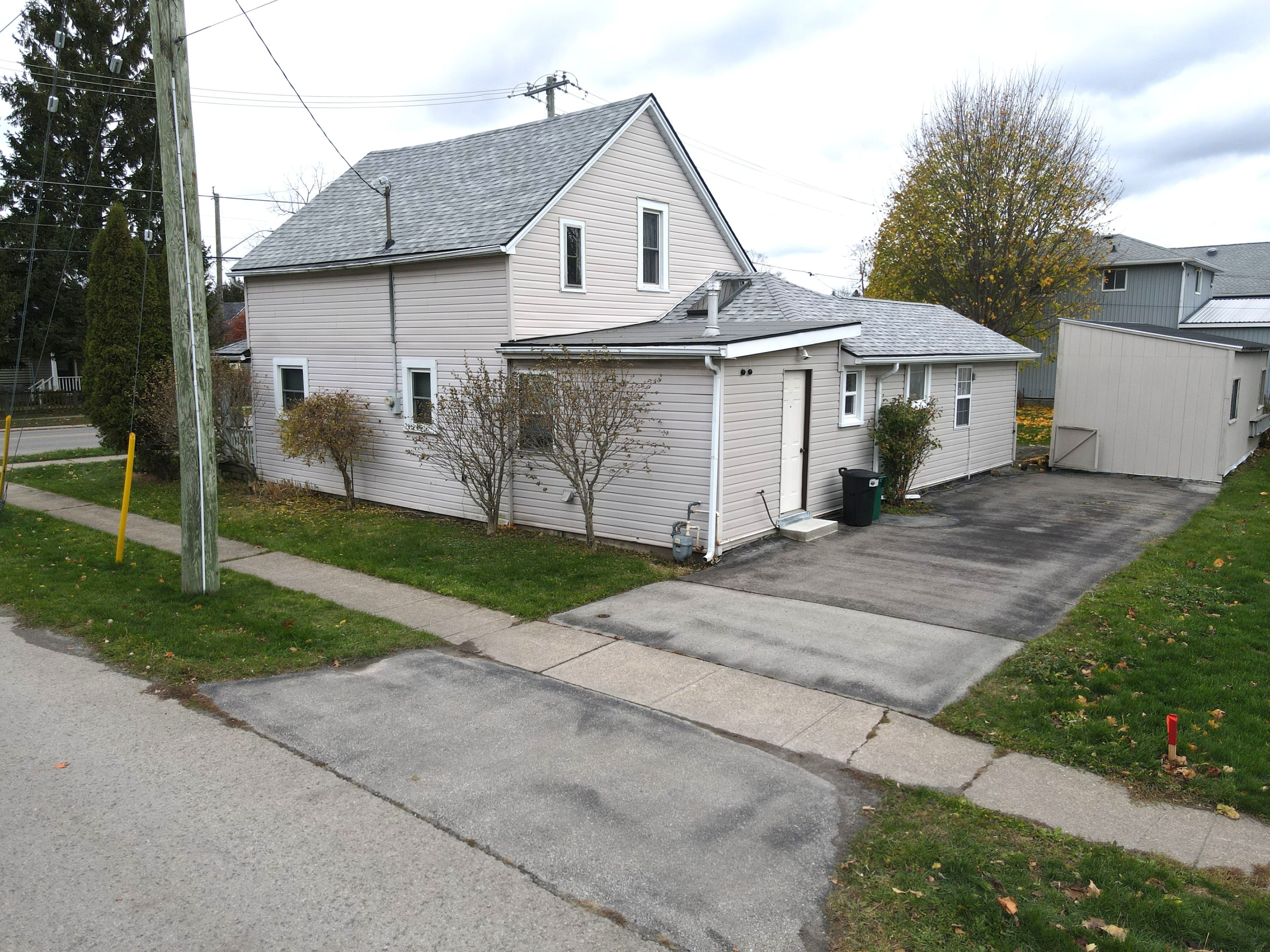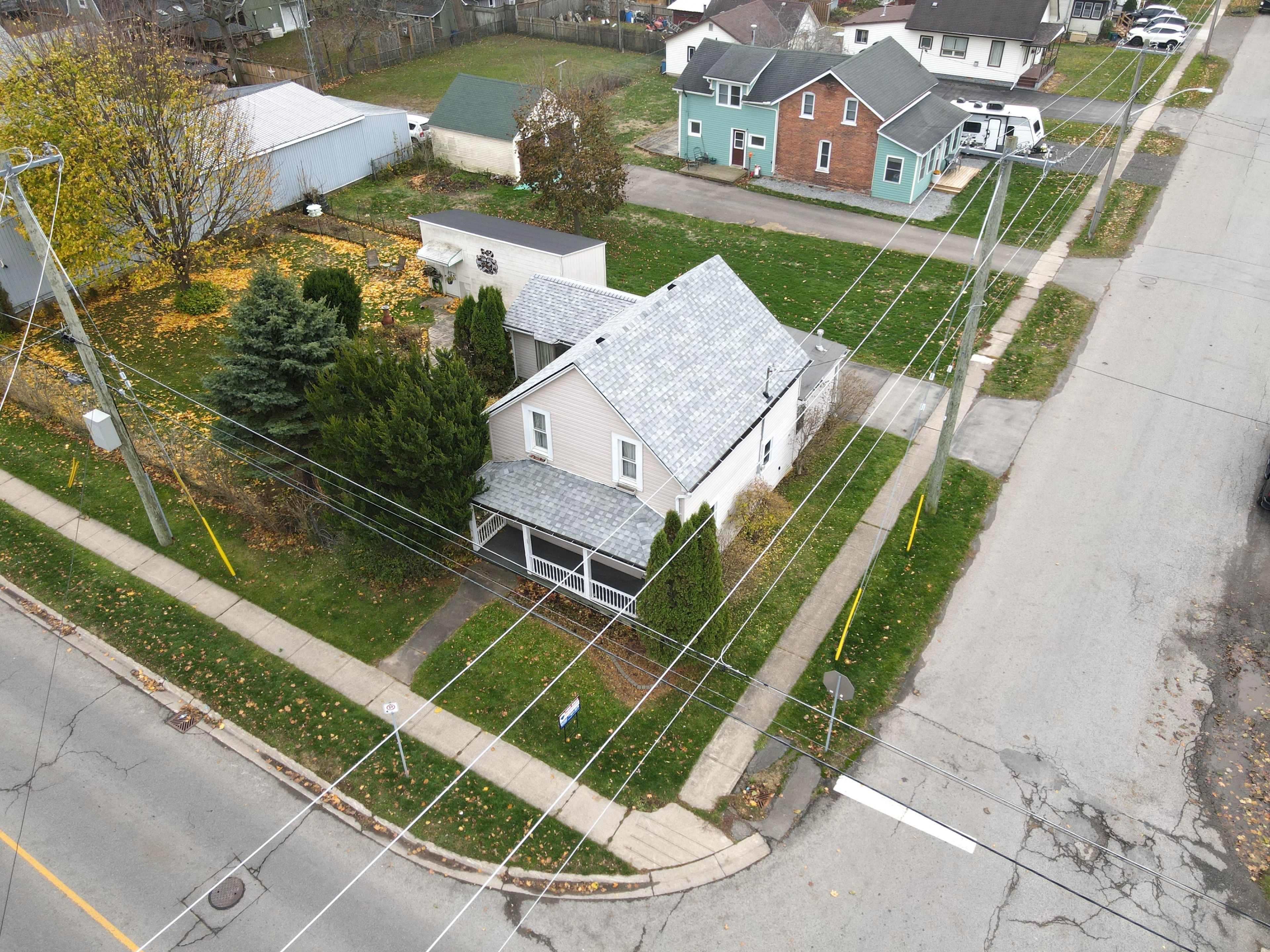 Welcome to 3721 dominion road in the heart of charming ridgeway. This 1. 5-storey home sits prominently on the corner of dominion and south mill, offering both character and potential. Inside, youll find two spacious bedrooms upstairs, along with a versatile main floor den that could easily serve as a third bedroom if desired. The bright eat-in kitchen flows into a separate dining room, which could also be reimagined as a cozy main floor family room with direct access to the backyard. Patio doors open to a private, fenced yard complete with gardens and a peaceful pond, creating an inviting outdoor retreat. The covered front porch adds curb appeal and a welcoming spot to relax, while the detached garage has been converted into a studio ideal for hobbies, a workshop, or even a home office. For those who prefer, it could be restored to its original use as a garage. With its prominent frontage on a well-travelled road and driveway access from south mill, this property is a great option for anyone looking to operate a home-based business. Whether you're searching for a charming family home, a creative live-work space, or a property with flexibility to grow, this ridgeway gem offers endless possibilities. Notable mentions is that the home was re-insulated and had upgraded electrical in 1999.