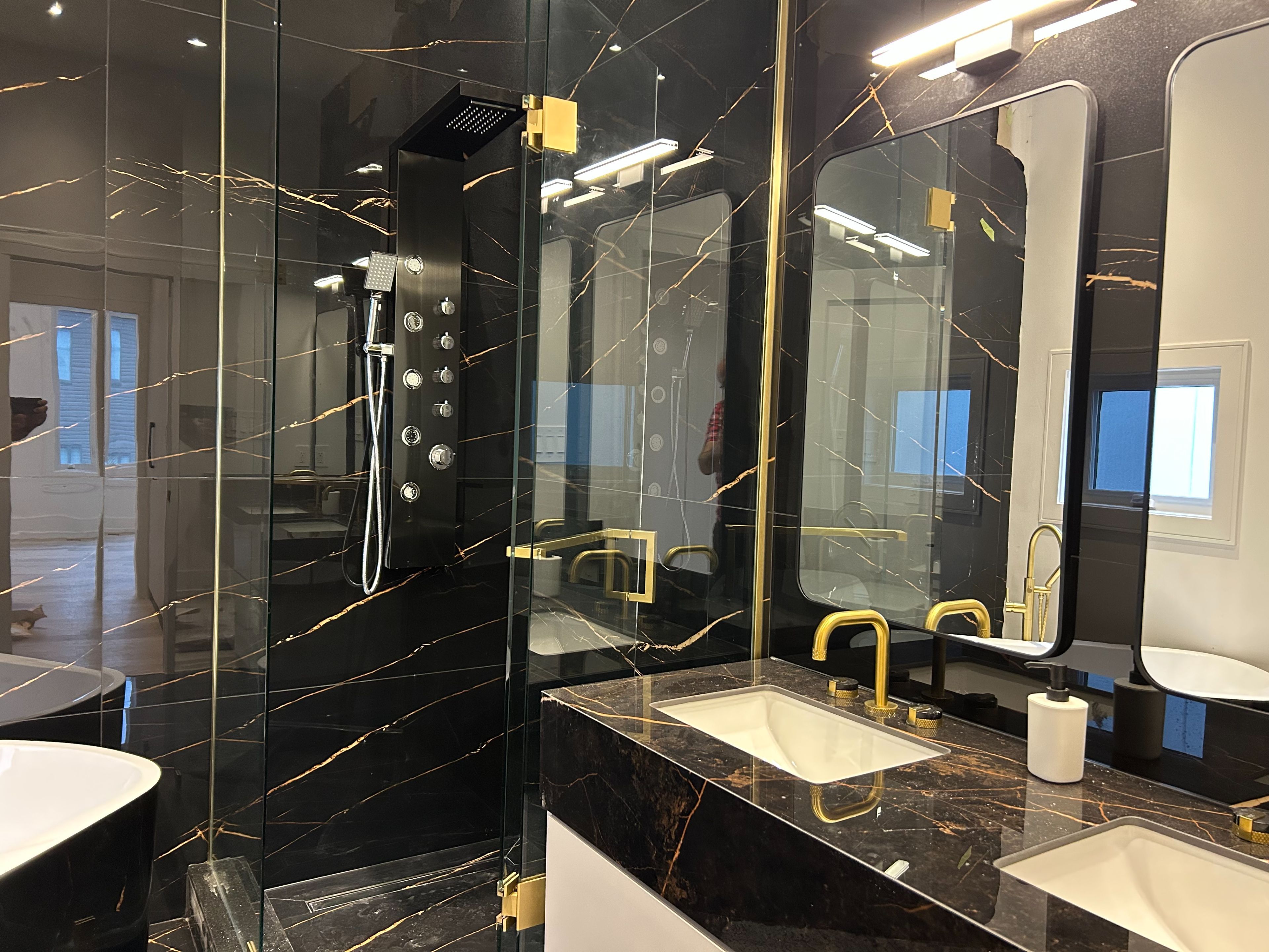 • Open living and dining area with floor-to-ceiling windows for natural light.