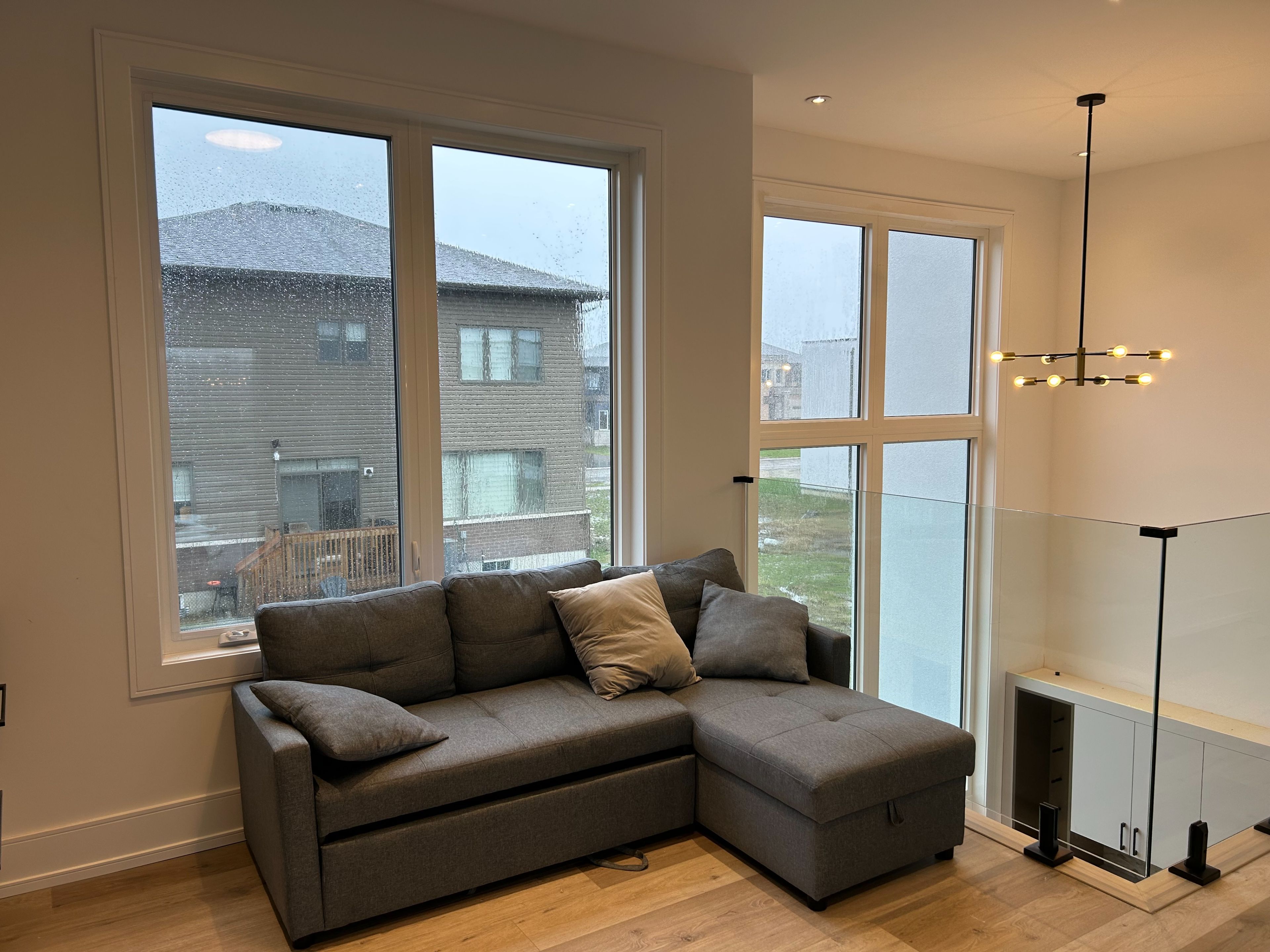 Stunning brand new 2-storey home featuring a modern design, just minutes from beautiful lake couchiching! This light-filled residence offers 3 spacious bedrooms and 3 bathrooms, with an impressive open-to-above living and dining area framed by full-height, floor-to-ceiling windows that flood the space with natural light. Heated floor on the main floor. Nestled in a quiet, family-friendly neighbourhood, this home combines contemporary elegance with comfort and tranquility perfect for year-round living or a stylish weekend retreat the adjacent bachelor unit in the main floor with a separate entrance is not included in the rent. Partially furnished option available for an additional monthly rent. Tenant pays 80% of the utilities. (gas, hydro, water & sewer)