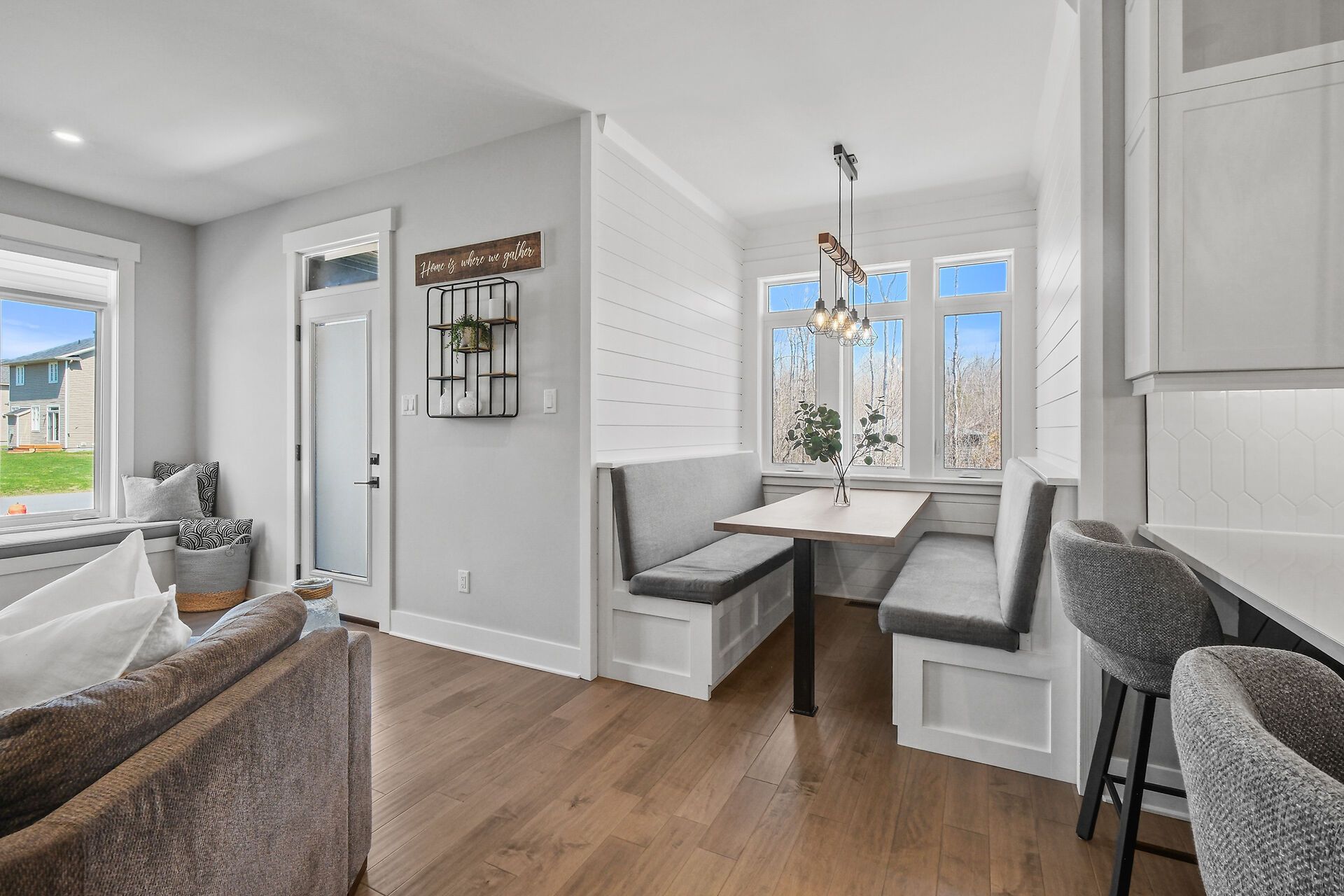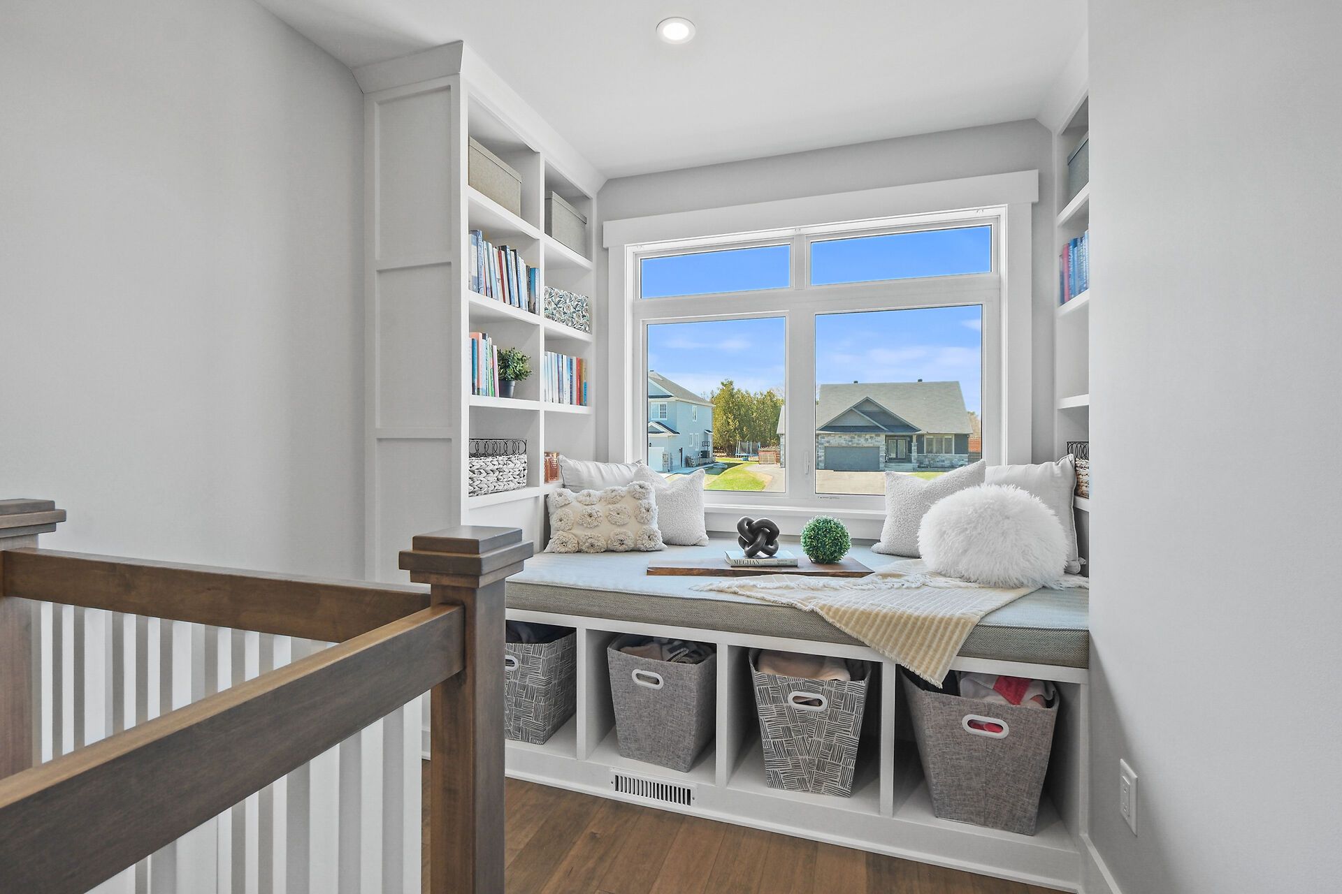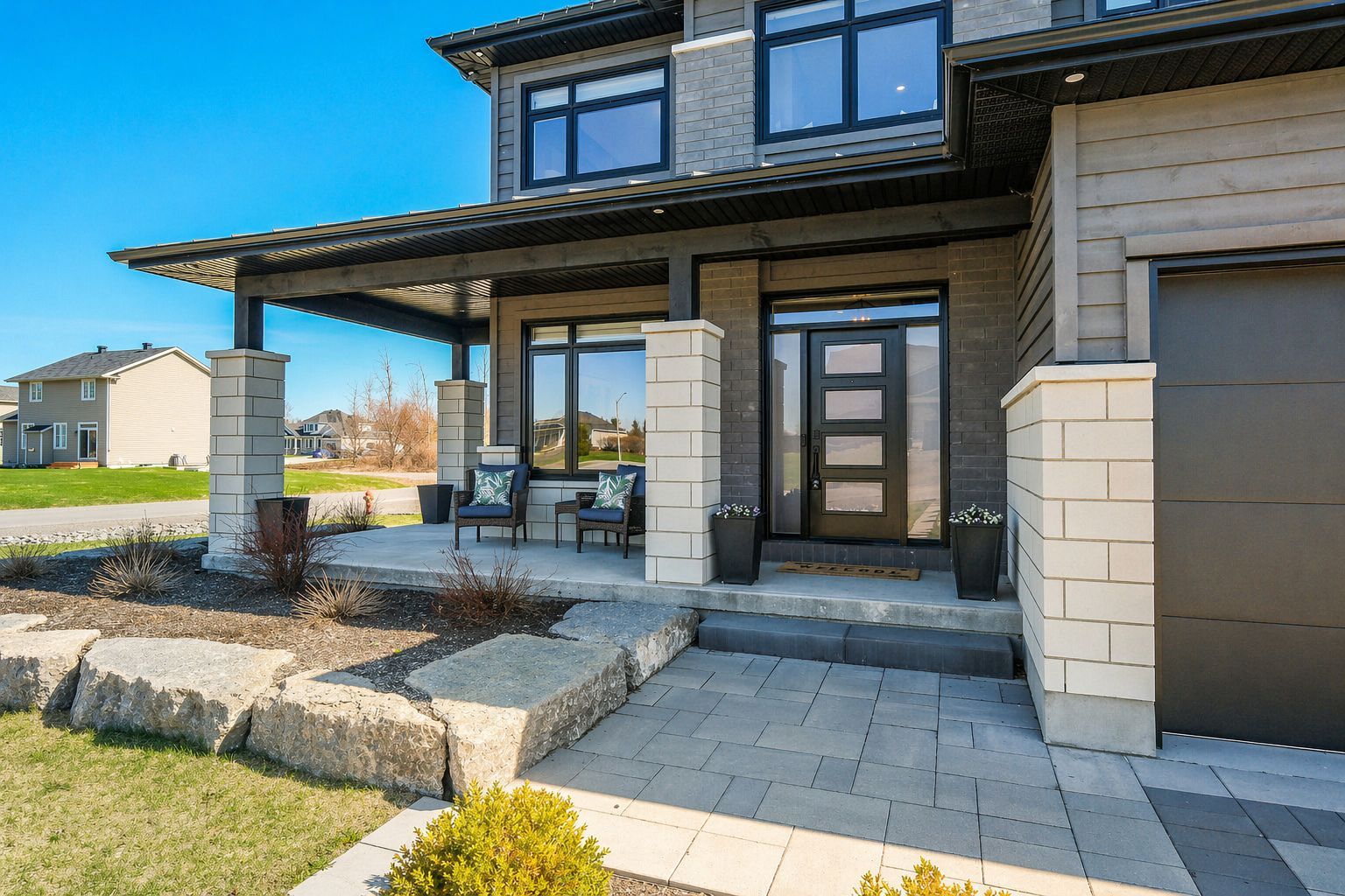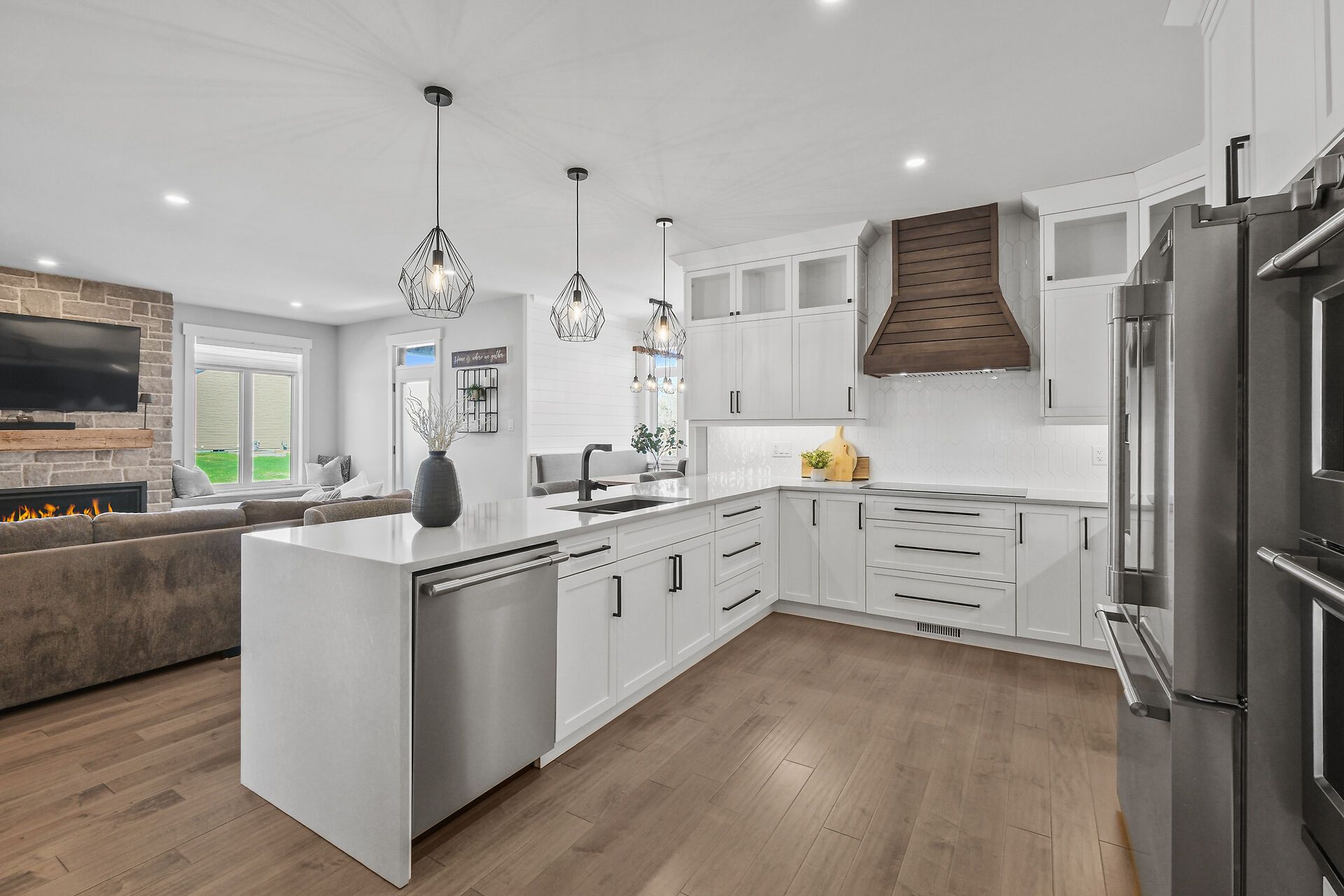 Some homes simply stay with you ~ 373 antler court is one of them. This exceptional custom build stands apart as one of the finest offerings in the neighbourhood. Perfectly positioned on a premium corner lot. A striking first impression begins with the beautifully hardscaped exterior, triple car attached garage, and a separate oversized detached garage - ideal for hobbies, vehicles, or recreational "toys." inside, the home exudes warmth and craftsmanship, with engineered hardwood flowing throughout and thoughtfully curated spaces designed for both everyday living and elegant entertaining. The living room is a true focal point, featuring a gas fireplace framed by charming window seats with built-in storage. A subtle privacy wall defines the dining space while maintaining an effortless flow. The kitchen is a showpiece - ceiling-height cabinetry, quartz countertops, built-in ovens, cooktop, coffee bar, walk-in pantry, and a bright breakfast nook. A well-designed mudroom with custom cubbies provides seamless access to the garage. Upstairs, a sunlit reading nook creates a cozy retreat. The primary suite is a sanctuary, complete with a tray ceiling, private fireplace, spacious walk-in closet, and a luxurious ensuite with an oversized glass shower, soaker tub, and quartz vanity. A generous second bedroom with its own ensuite, plus a third bedroom and full family bath, complete this level. The lower level offers versatility with a potential fourth bedroom, expansive recreation space, home gym area, and abundant storage - including a rare storage area beneath the garage. The triple garage is fully insulated, drywalled, and equipped with its own gas furnace. Outdoors, enjoy a private covered porch and a spacious yard perfect for family living. Set in a sought-after, family-friendly neighbourhood, this home delivers a rare blend of quality, comfort, and elevated design.