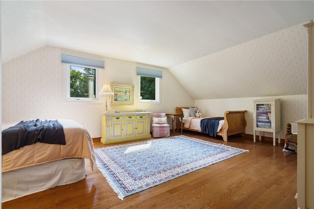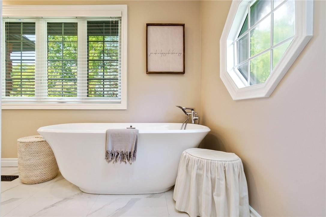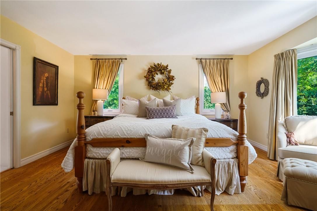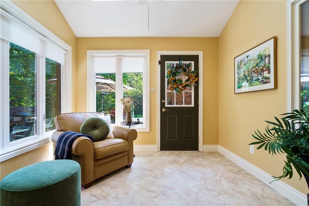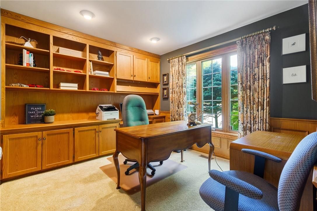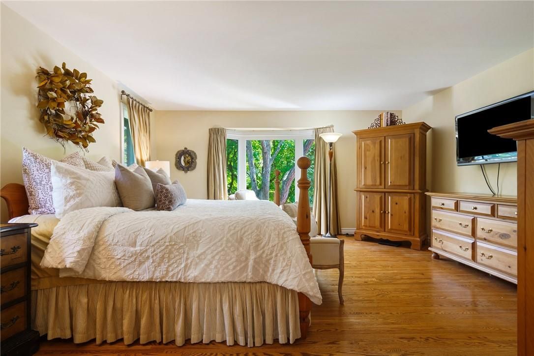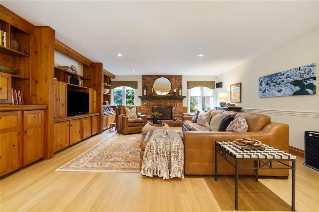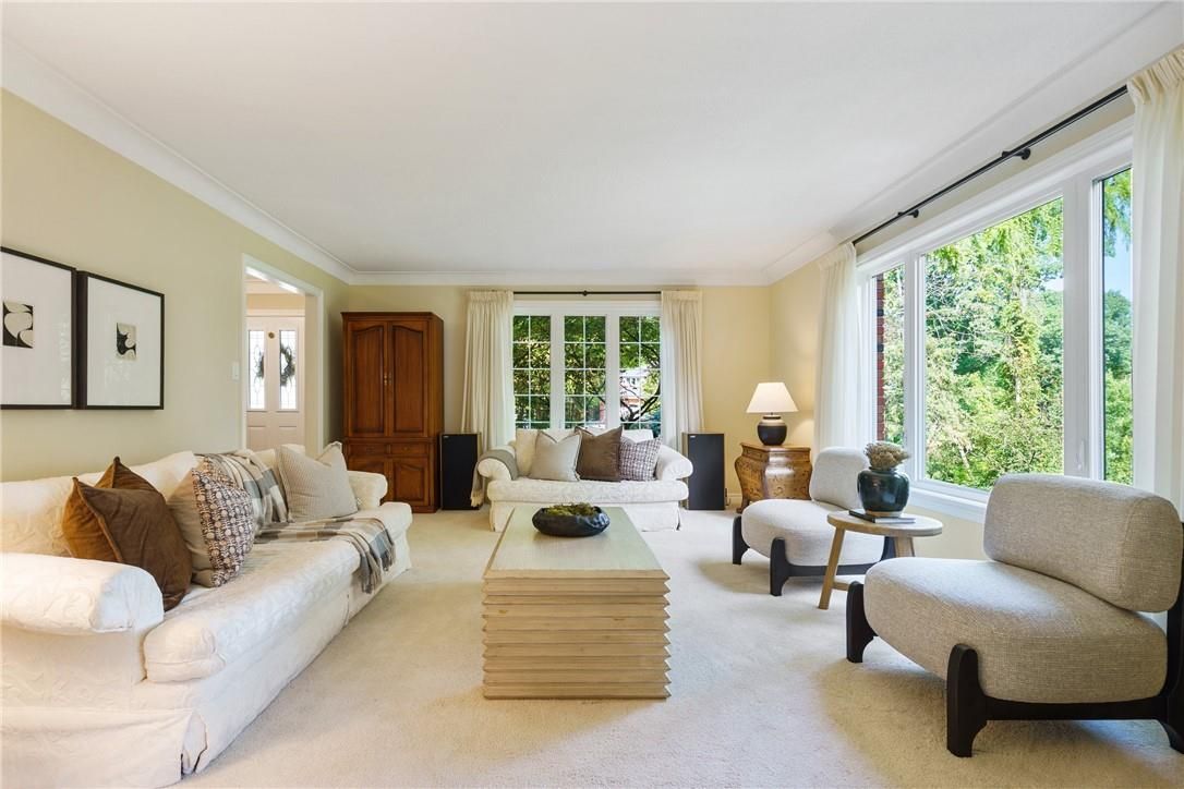 A rare blend of luxury, privacy, and pure lifestyle magic-this exceptional property delivers an experience unlike anything else. Set on a picturesque 0. 61-acre, tree-lined lot backing onto protected conservation lands, this pristine all-brick two-storey home offers refined living surrounded by serene, uninterrupted green space. Designed with family living and entertaining in mind, the home offers six spacious bedrooms and five well-appointed bathrooms. The main level features elegant principal rooms, including a formal living and dining area highlighted by a beautiful bay window. The chef-inspired kitchen is a standout, complete with a gas stove, stone countertops, stainless steel appliances, walk-in pantry, and a generous island with bar seating-seamlessly connecting to a bright dinette and an inviting family room anchored by a wood-burning fireplace with a classic brick mantle. Thoughtful touches continue with a sun-filled reading nook, powder room, main floor laundry, and convenient inside access to the garage. Upstairs, a sweeping oak staircase leads to a luxurious primary retreat featuring a walk-in closet and a recently updated spa-like five-piece ensuite with soaker tub and separate glass shower. Additional bedrooms are generously sized, with well-designed jack-and-jill bath layouts, ideal for family or guests. The fully finished walk-out basement expands the living space even further, offering a large recreation area, dedicated exercise room with three-piece bath and sauna, and the show-stopping squash court. Outdoors, the property transforms into a private oasis with tiered decking, a stone patio, and beautifully landscaped grounds-all perfectly oriented to capture the tranquility of the protected green space beyond. Plus, a charming log cabin retreat and a separate viewing deck perfectly positioned to take in the sweeping natural backdrop. An extraordinary offering where sophistication, comfort, and a sense of adventure come together effortlessly.