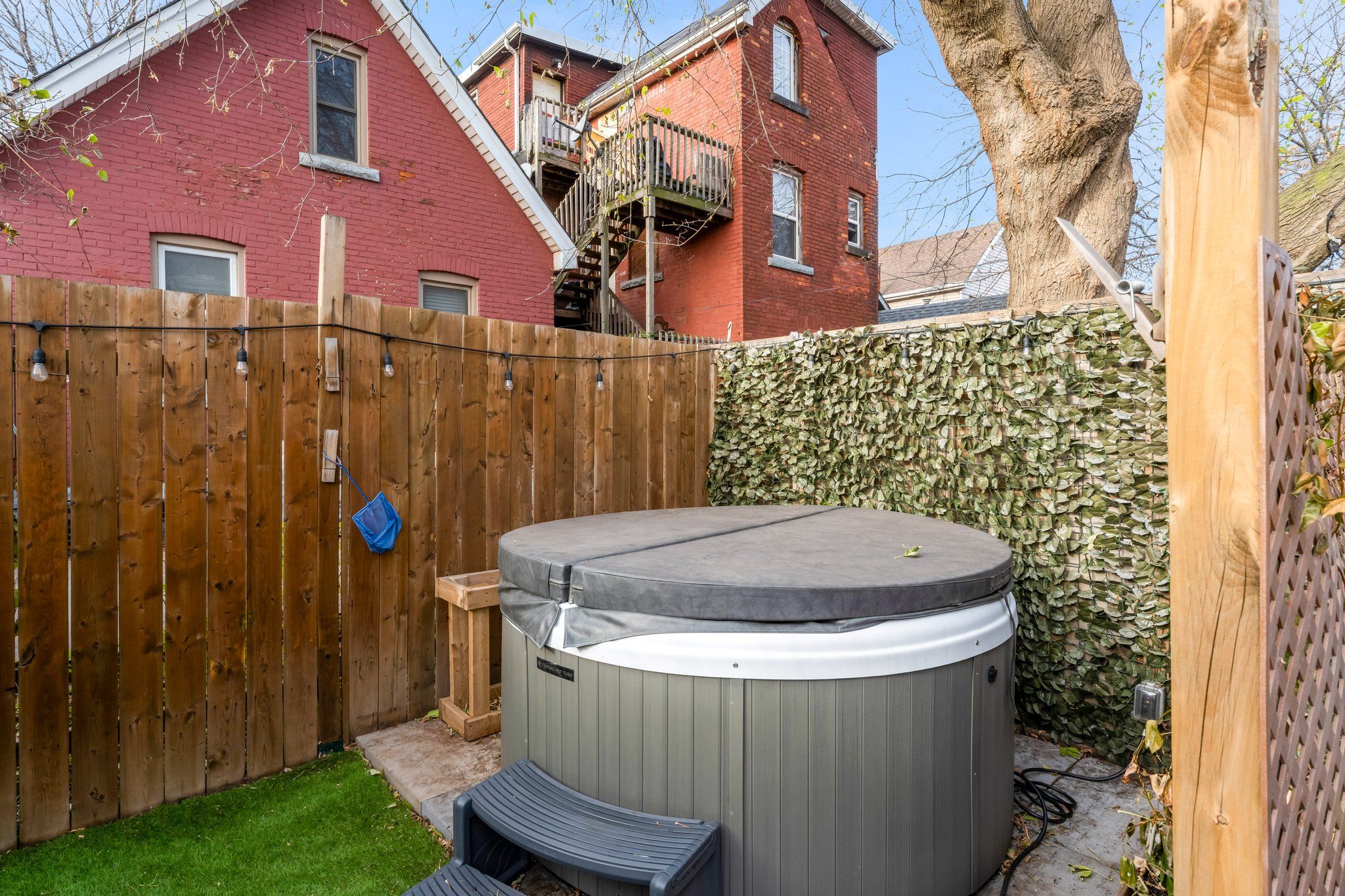 Welcome to the kind of home that makes you say "yes!" the moment you step inside! This beautifully updated 2. 5-storey, solid-brick end-unit townhome is packed with charm, character & modern upgrades which is an irresistible opportunity for first-time buyers, investors or anyone craving a fresh start in a home that simply feels good the second you walk through the door! Fall in love with the bright, clean, fully renovated interior! A newer kitchen, updated bathroom & fresh hardwood flooring throughout creates a light, modern feel, while the tall ceilings & century-brick character add warmth & soul! No stress, no projects, just unpack & enjoy! With two bedrooms plus a spacious loft used as the primary suite, you have room to grow, create & make the home uniquely yours! Don't need all three sleeping spaces? The extra bedroom offers amazing flexibility by turning it into a dreamy office, a bright playroom, a cozy reading hideaway, or a creative studio! The choice is yours! The backyard is your own private retreat! Step outside to a fully fenced oasis! It is secluded, quiet & beautifully set up for relaxation, entertaining, morning coffee, weekend bbqs or quiet moments alone! And yes, there's a hot tub! Imagine unwinding here at the end of a long day, enjoying a peaceful soak under the stars! This yard gives you the space to breathe. With front driveway parking, convenience becomes part of your everyday routine. Whether you're entering the market, expanding your portfolio, or looking for a smart investment with strong rental potential, this home checks every box: updated, affordable, spacious, stylish &move-in ready! In a competitive price range, this one stands out and homes like this don't wait around! Located steps to hamilton general hospital, schools, parks, transit & daily amenities, you're set up for easy living in a neighbourhood that's growing fast & offering fantastic value. Come see why this home feels like "the one!" this is where your next chapter begins!