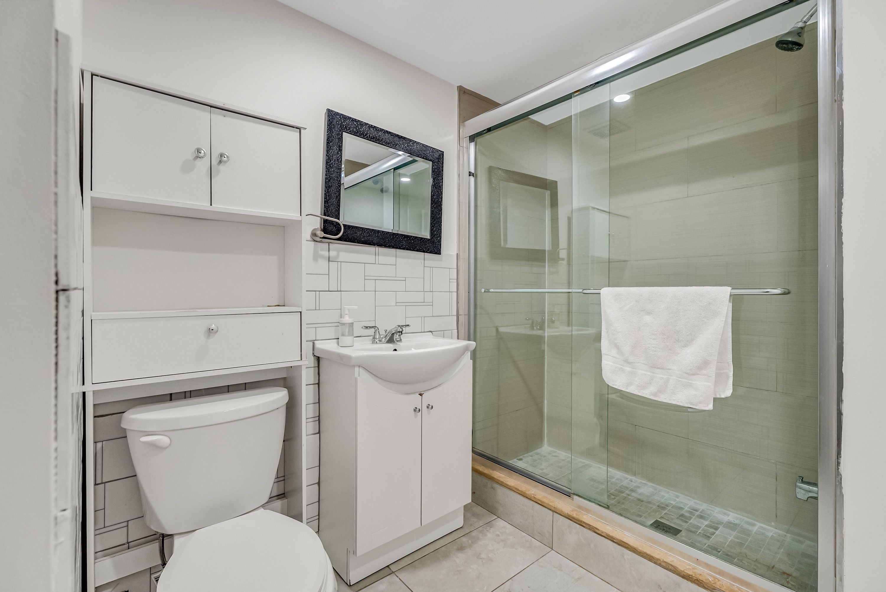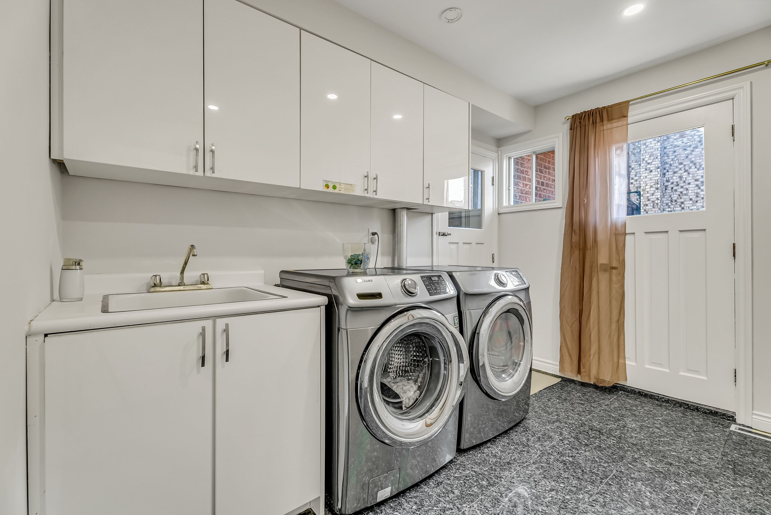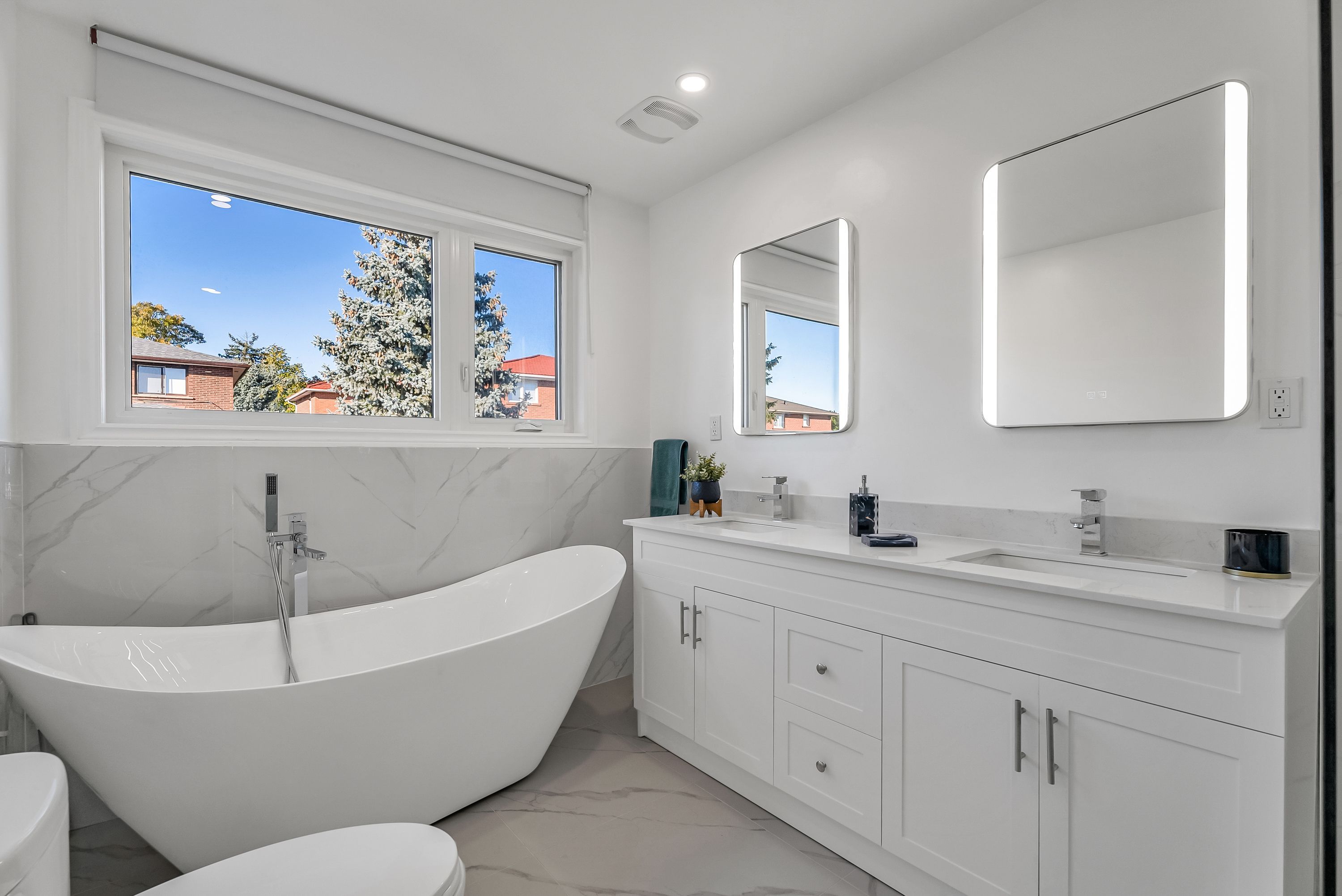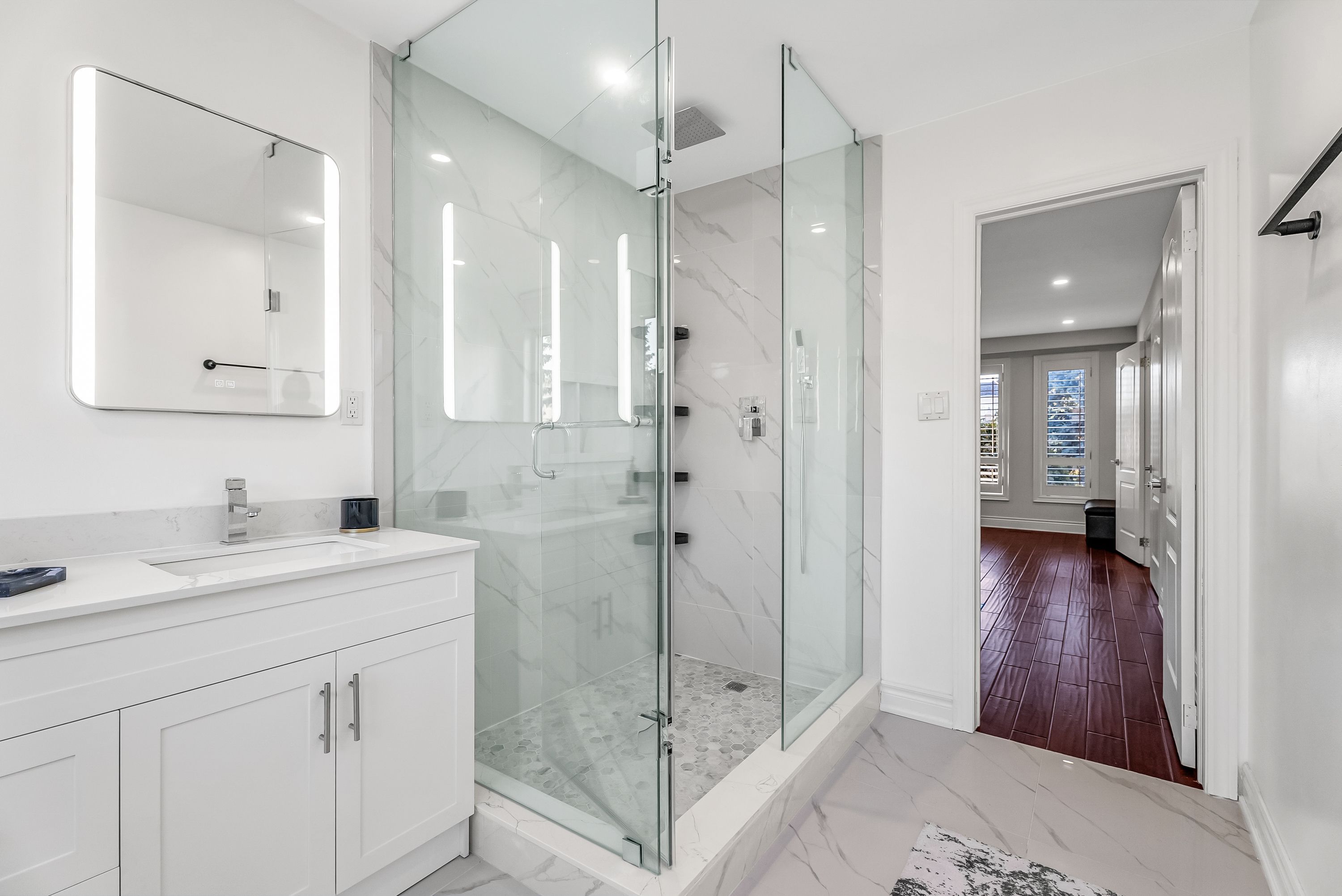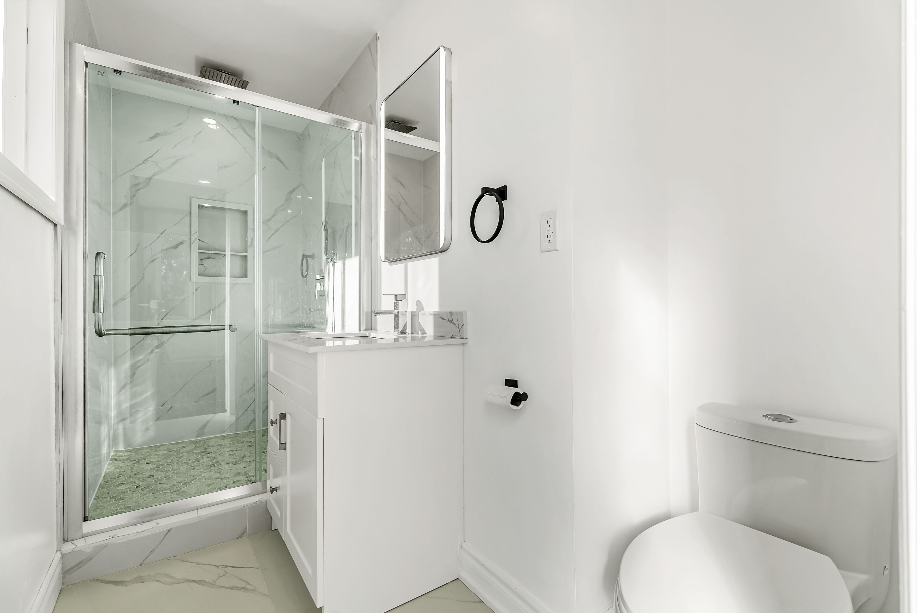 • Bright entrance foyer with large windows and modern marble flooring.