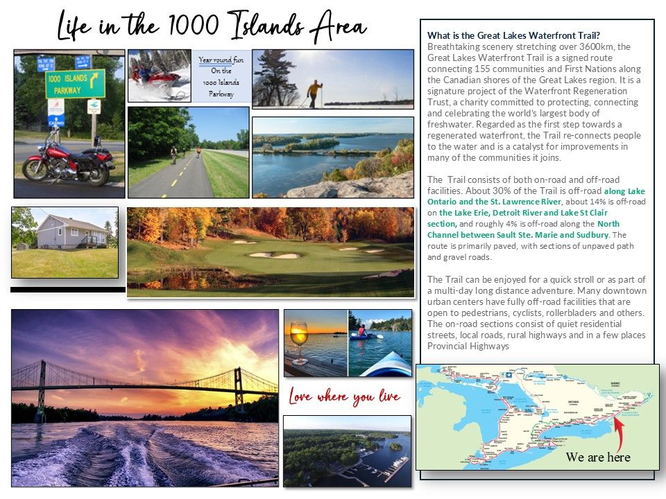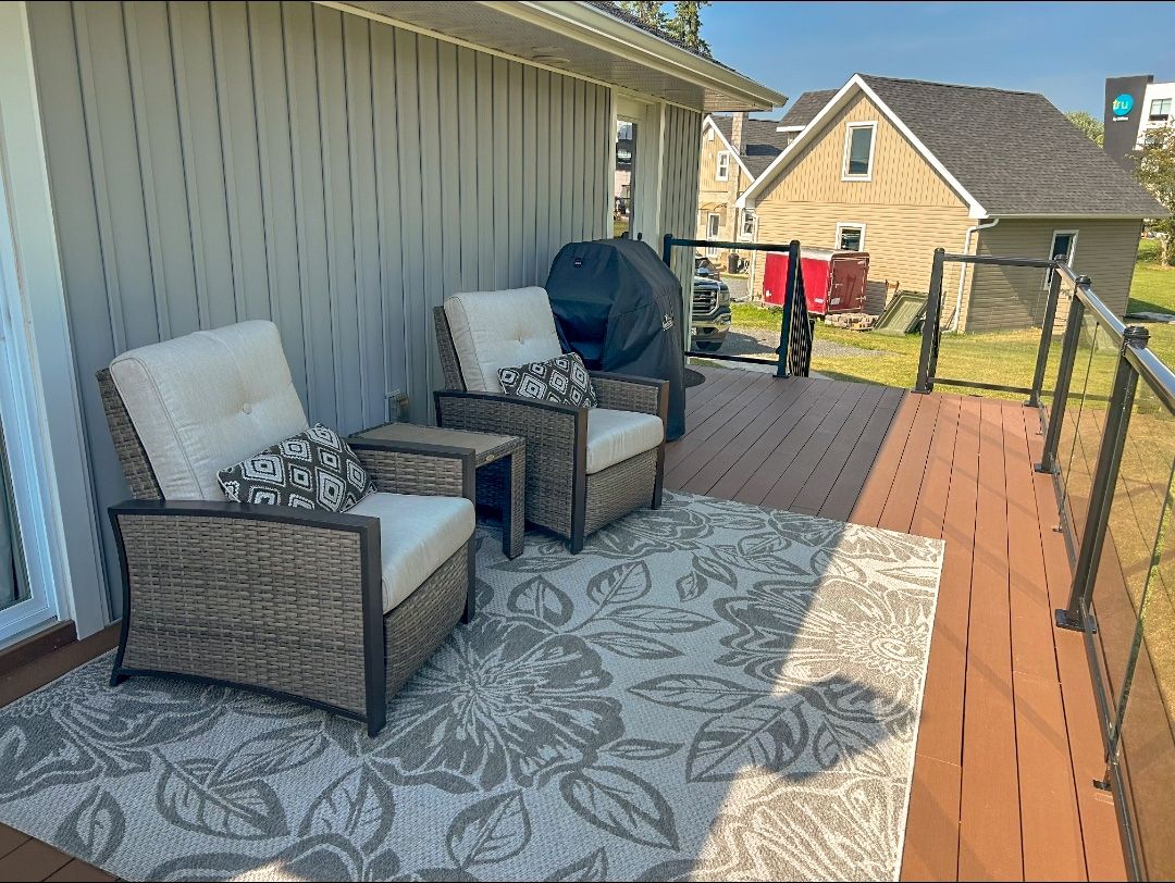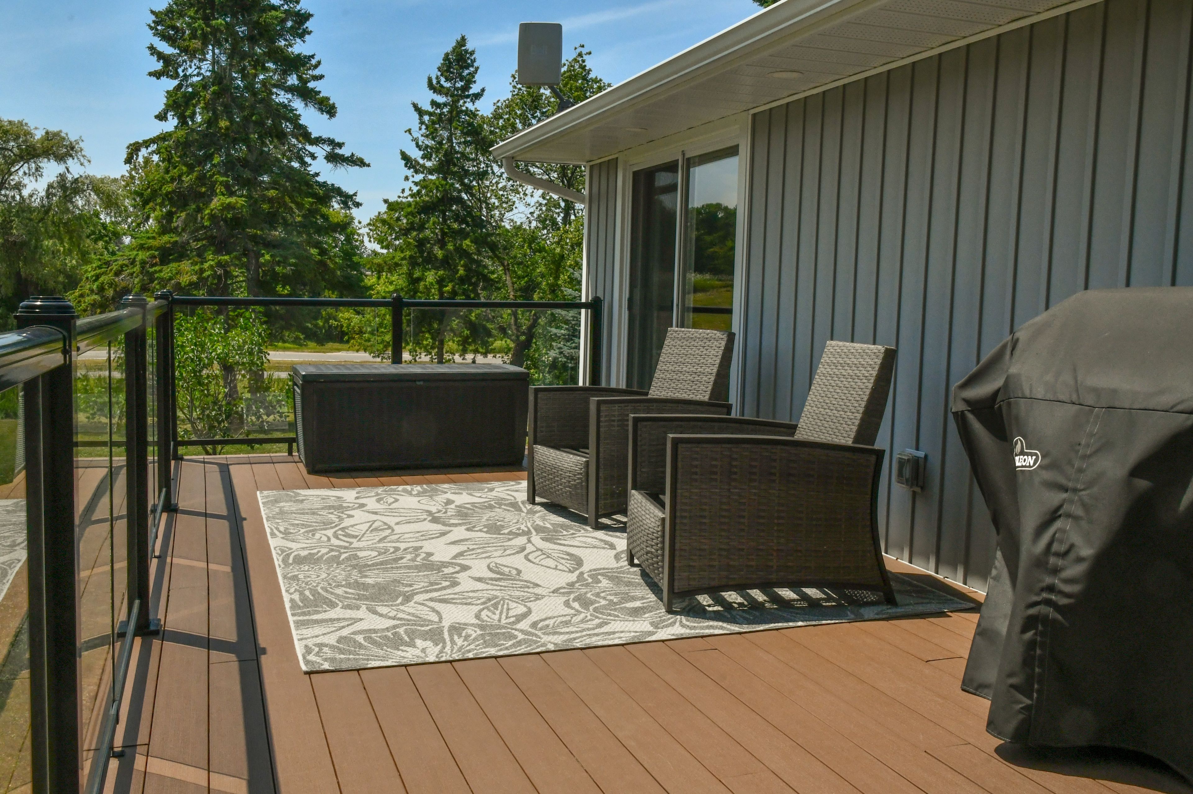 • Relax on the rear deck overlooking the scenic 1000 Islands Parkway trail.