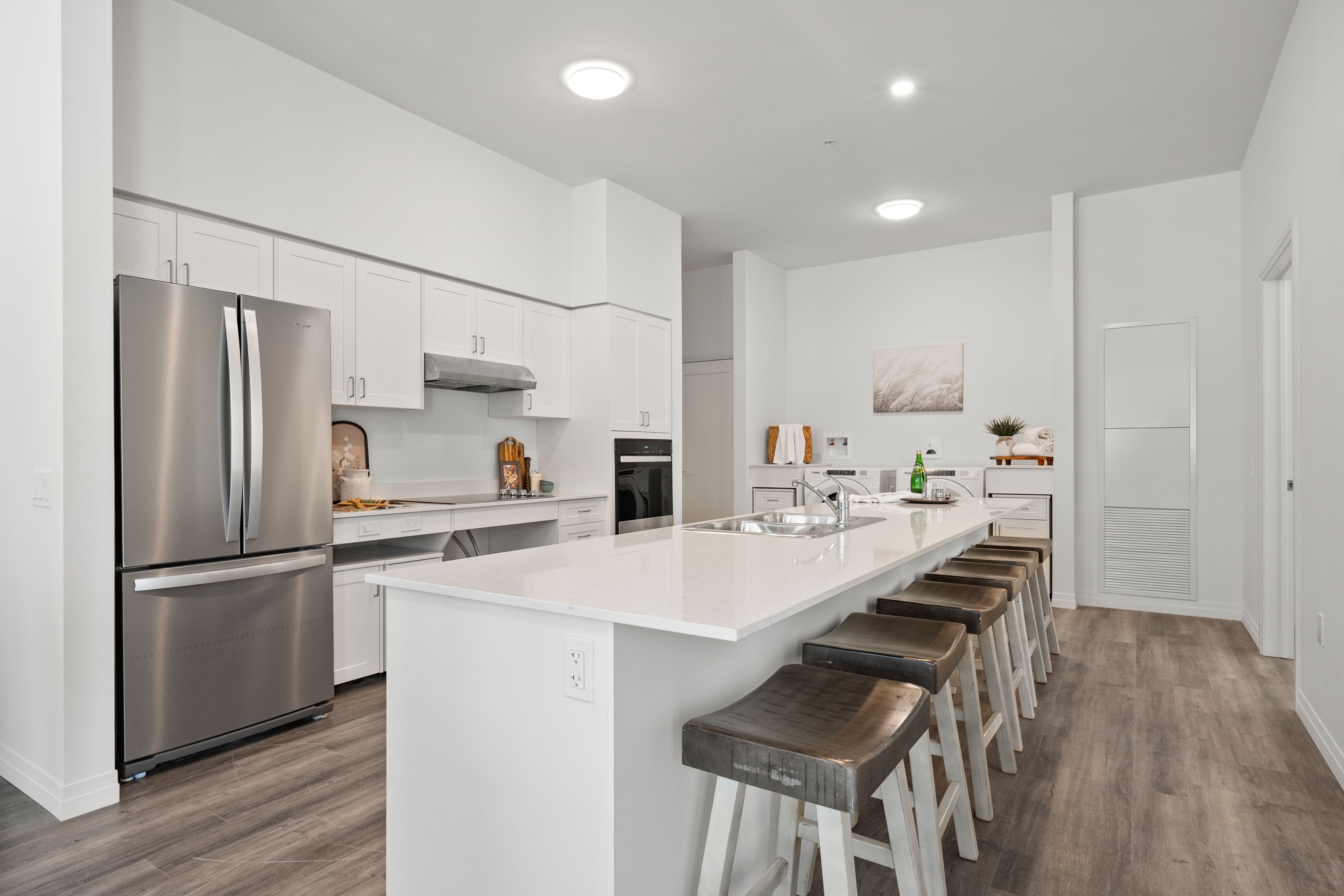 • Convenient in-suite laundry and efficient central heating and cooling.