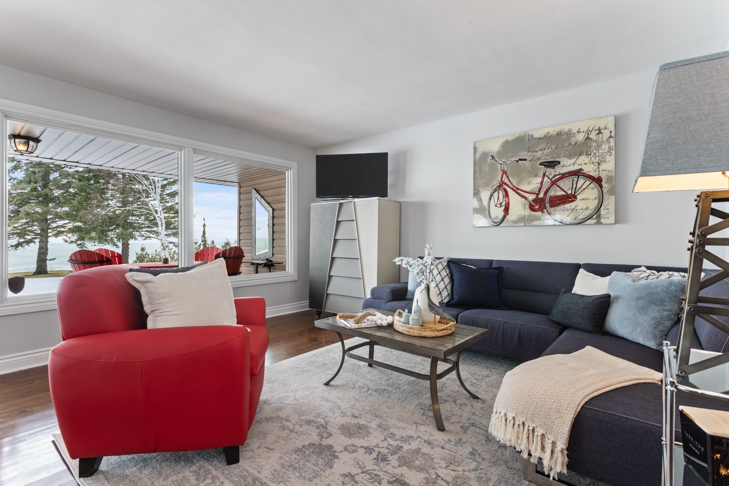 • Spectacular lakefront views with direct beach access for year-round enjoyment.
