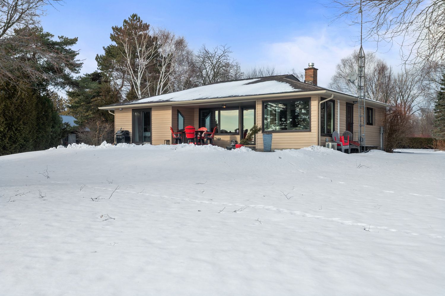 Magnificent lakefront views from this incredible and unique waterfront property, a rare find along the lake ontario shoreline with direct beach access and a view that brings a smile to your face all year round. Plenty of thoughtful details, a well designed interior main floor layout with space to take in the view from every window, watch the skyline all day, evening and into the night surrounded by privacy. A beautiful exterior space for entertaining, large stamped concrete patio overlooking the exterior lights illuminating the landscaped grounds, custom fire pit and decking along the shore, leading directly down to the lake with views through to presqu'ile provincial park. A beautiful interior with tasteful updates, eat in kitchen with beautiful cabinetry and storage, overlooking the main floor den with oversized windows, large living room adjacent with plenty of space for you to personalize and orientate furniture to spend time entertaining or just enjoying the peace and tranquility. Expansive lower level with additional room for finished living space and guest accomodation, laundry etc.... The primary bedroom provides a second walk out to the southern part of the property and a diverse landscaped yard with mature trees and clear views. A very special place to call your own, an asset cottage for those who like to travel or a full time residence, a multitude of options for those looking to really take in "lake life" and appreciate the little details. Relax, swim, sunsets, stargazing and breathe in the lake breeze!