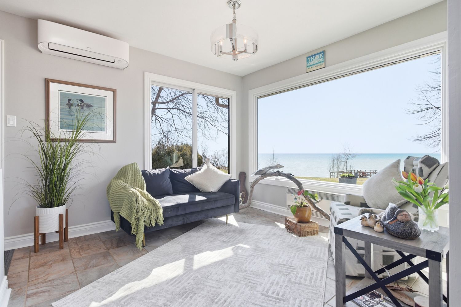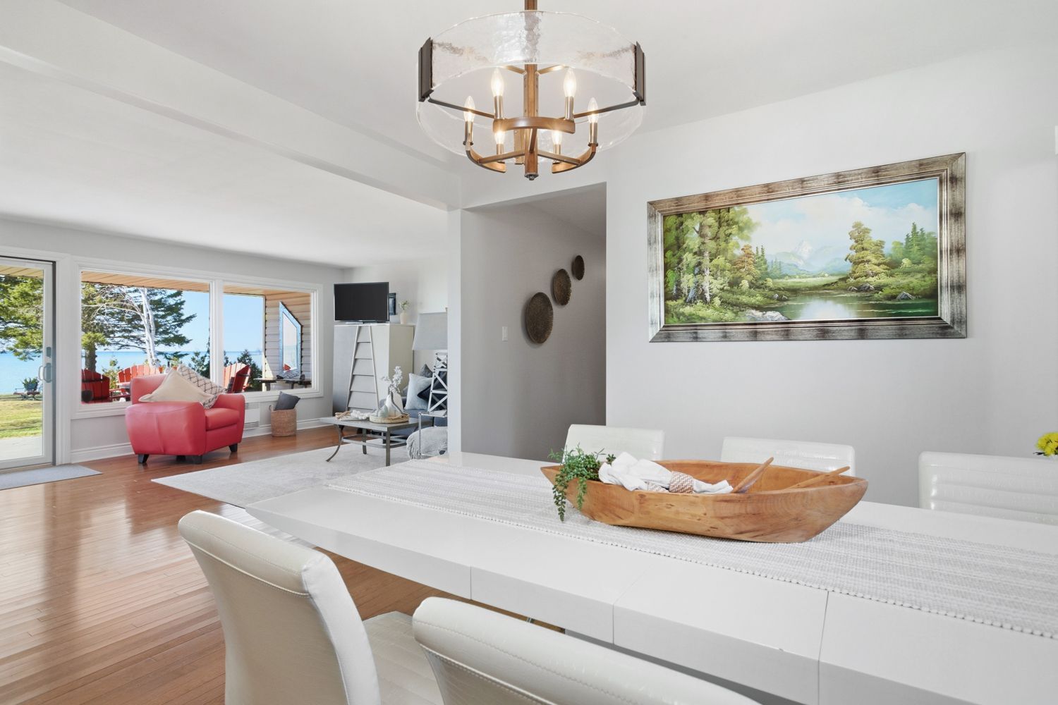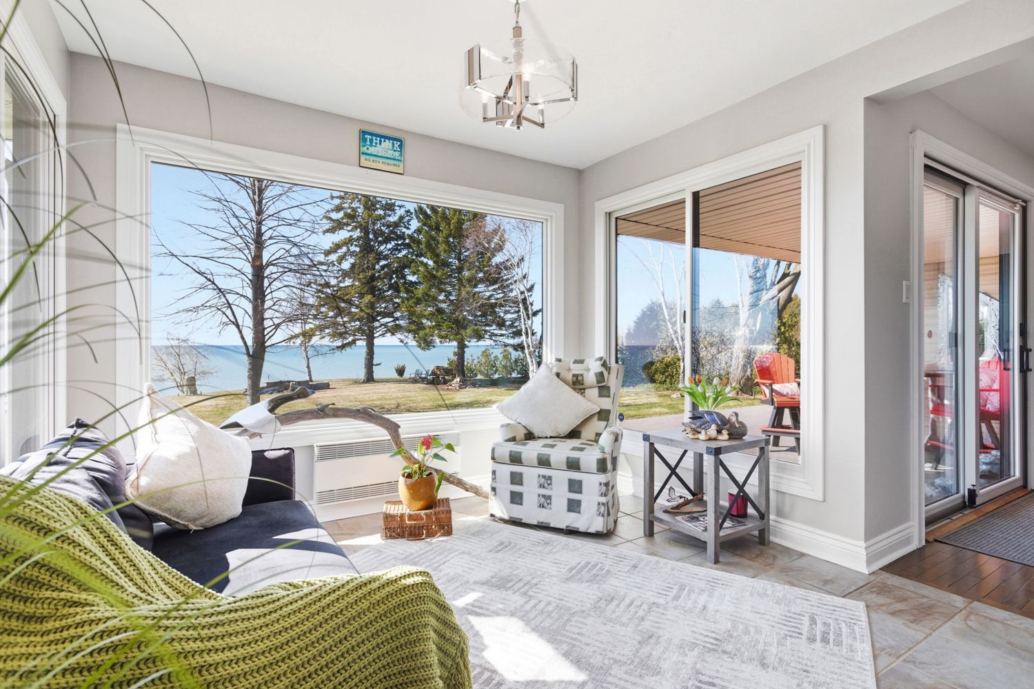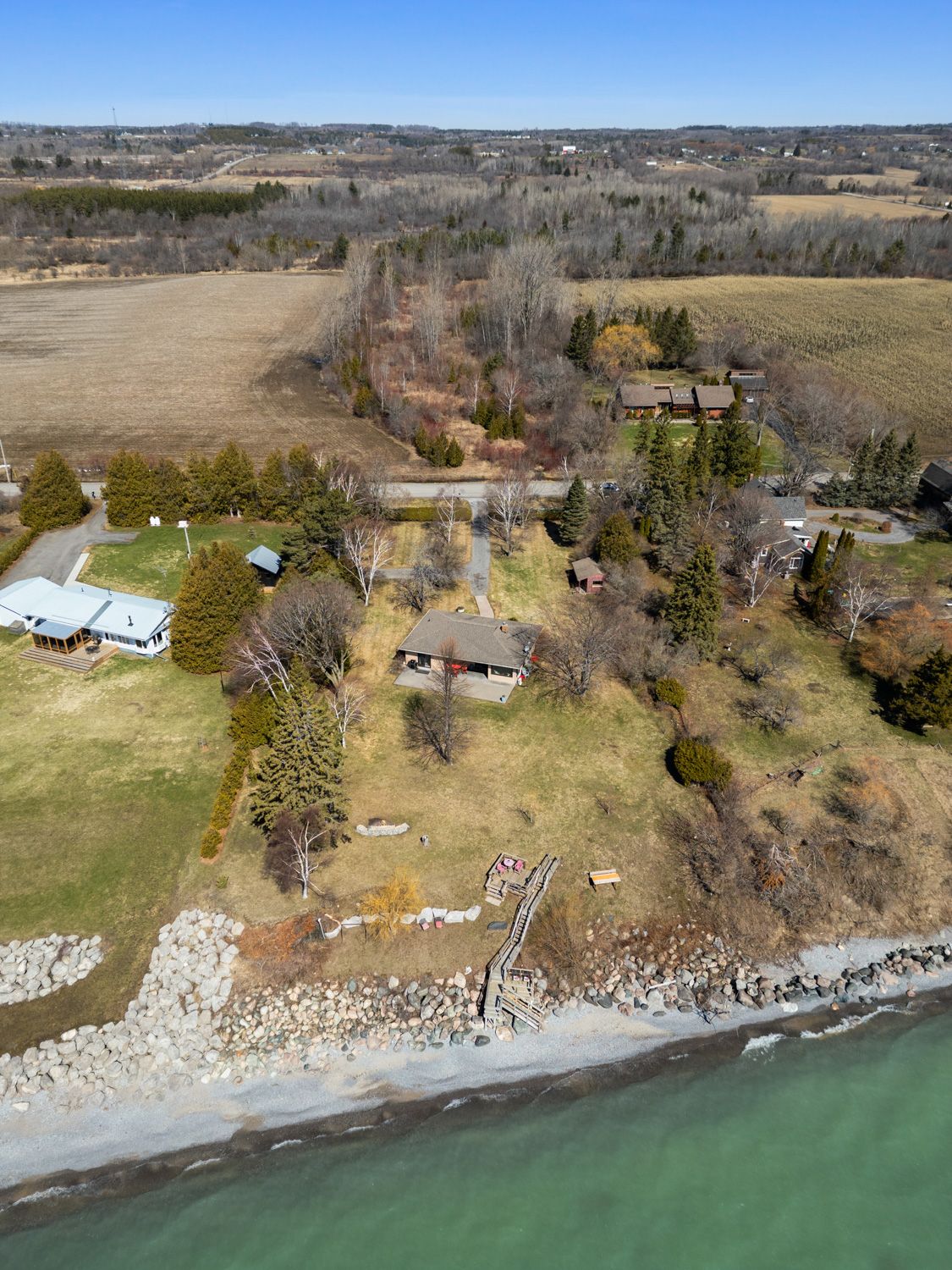 Direct private "lake ontario" waterfront, this incredible and unique waterfront property, a rare find along the shoreline with direct beach access and a view that brings a smile to your face all year round. Bring the term "long walks on the beach" to life here, a special an uniquely private beach. Whether you are looking for a full time residence or 4 season cottage to enjoy at your please all year, this is a must see sensational property. Plenty of thoughtful details, a well designed interior main floor layout with space to take in the view from every window, watch the skyline all day, evening and into the night surrounded by privacy. A beautiful exterior space for entertaining, large stamped concrete patio overlooking the exterior lights illuminating the landscaped grounds, custom fire pit and decking along the shore, leading directly down to the lake with views through to presqu'ile provincial park. A beautiful interior with tasteful updates, eat in kitchen with beautiful cabinetry and storage, overlooking the main floor den with oversized windows, large living room adjacent with plenty of space for you to personalize and orientate furniture to spend time entertaining or just enjoying the peace and tranquility. Expansive lower level with additional room for finished living space and guest accomodation, laundry etc.... The primary bedroom provides a second walk out to the southern part of the property and a diverse landscaped yard with mature trees and clear views. A very special place to call your own, an asset cottage for those who like to travel or a full time residence, a multitude of options for those looking to really take in "lake life" and appreciate the little details. Relax, swim, sunrise, stargazing and breathe in the lake breeze!