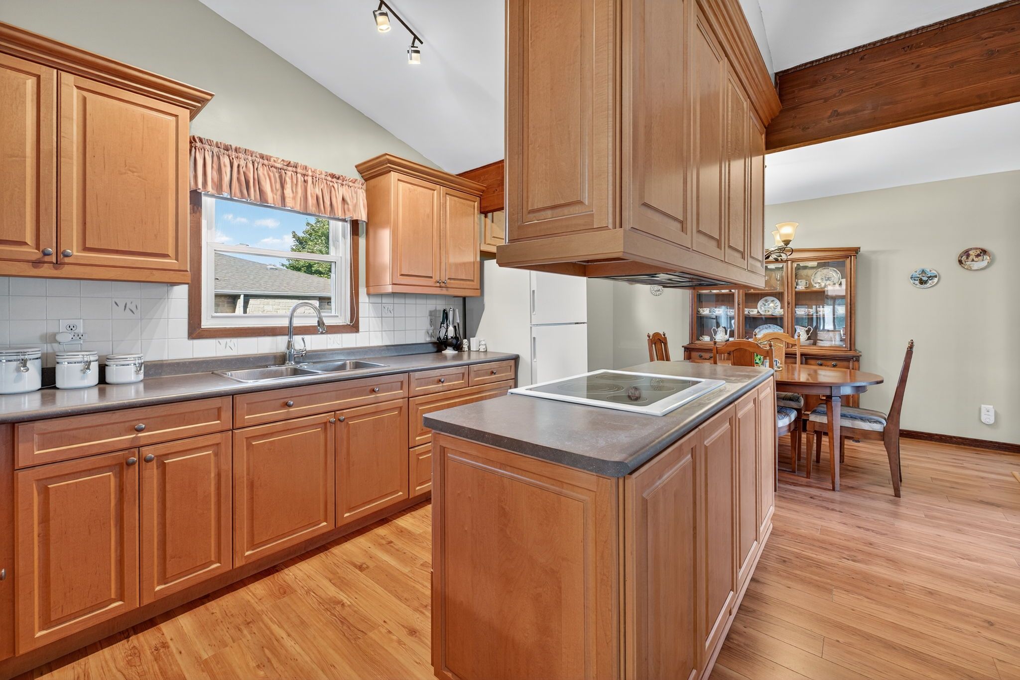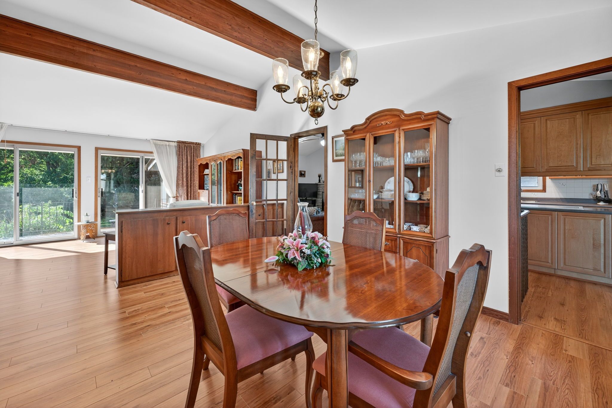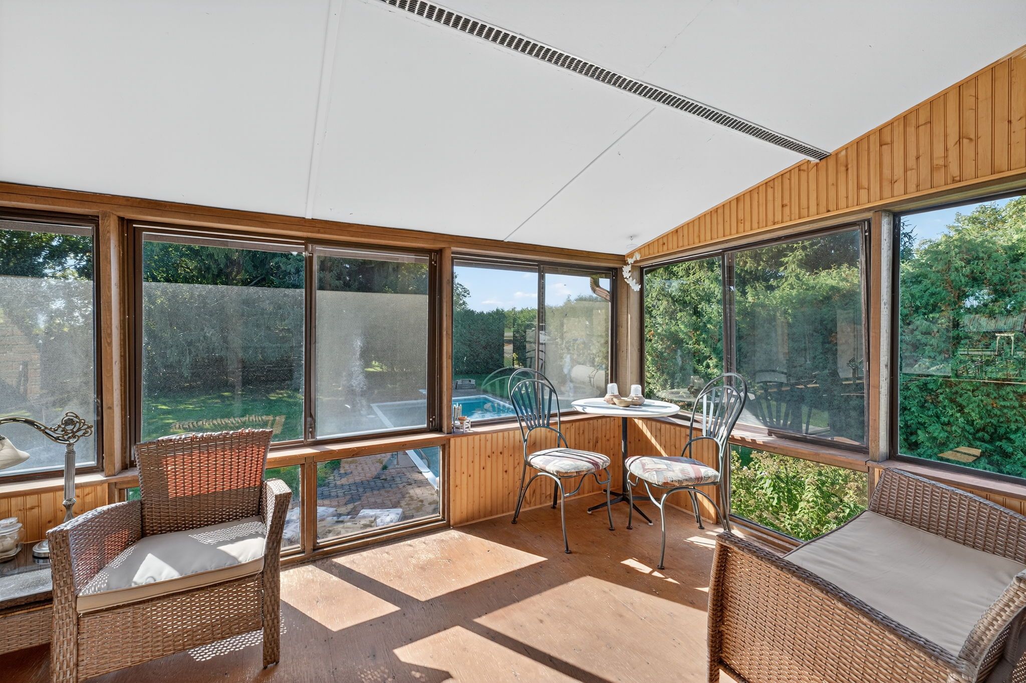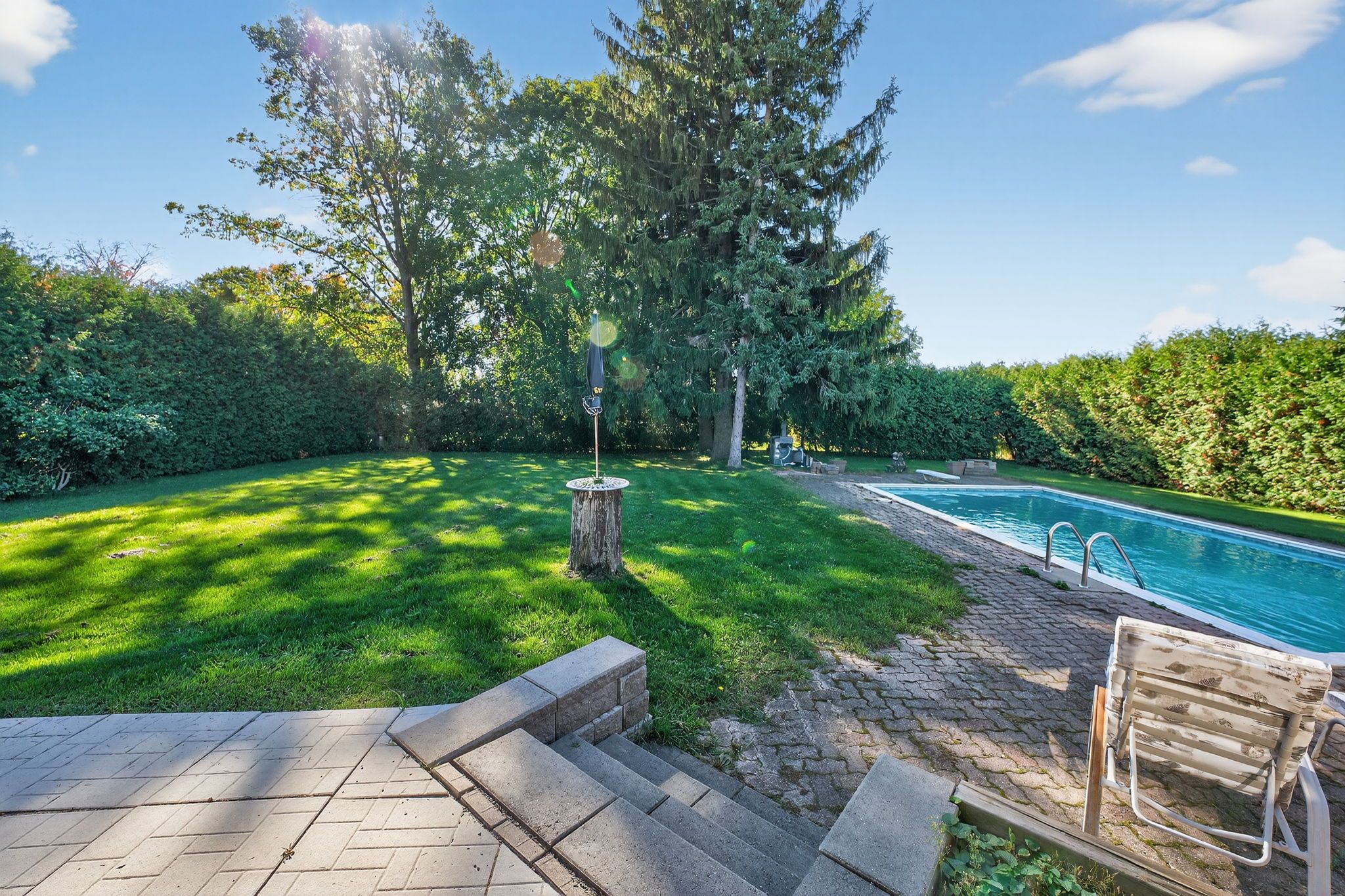 • Sun-filled backyard features a heated inground pool for family gatherings.