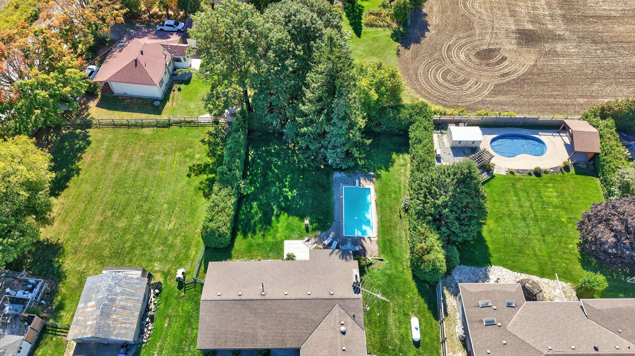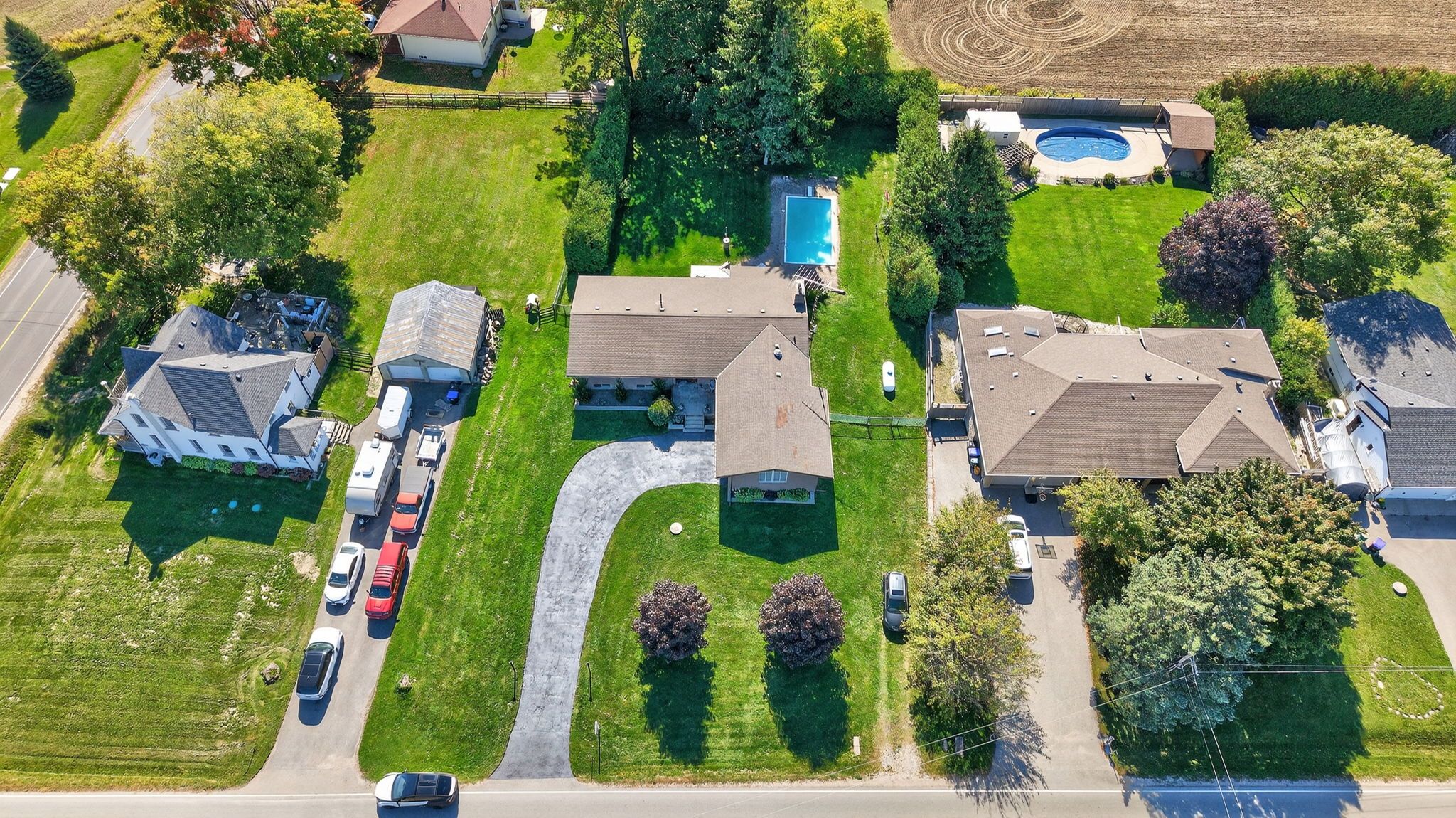 1,840 sqft above grade all brick bungalow resting on an over half acre lot of complete tranquility surrounded by mature trees, & farm fields! Sun-filled backyard with inground heated pool perfect for your family gatherings! Open concept main level features hardwood & laminate flooring, high ceilings with beautiful wooden beams throughout, & oversized windows allowing tons of natural lighting to pour in. Living room with 2 walk-outs to backyard deck & formal dining room is perfect to gather & host family & friends on any occasion. Spacious kitchen with plenty of cabinet space, plus a breakfast area! Complete with a family room including beautiful vaulted ceilings, & fireplace to cozy up after a long day. 3 spacious bedrooms, primary with upgraded bathroom & walk-in closet, plus 2 additional bedrooms & 4 piece bathroom. Massive basement (2,027 sqft) is complete with a rec room, games room, den/office, & laundry room. Perfect space with tons of possibilities for either additional bed rooms or in-law suite! Attached 2 car garage & two driveways with ample parking. Above grade = 1,840 sqft, below grade = 2,027 sqft, total available living space = 3,867 sqft! Tons of room for the whole family. Prime location nestled in the country while still being minutes to bradford & all major amenities, & highway 400! The perfect home to create memories for a lifetime!