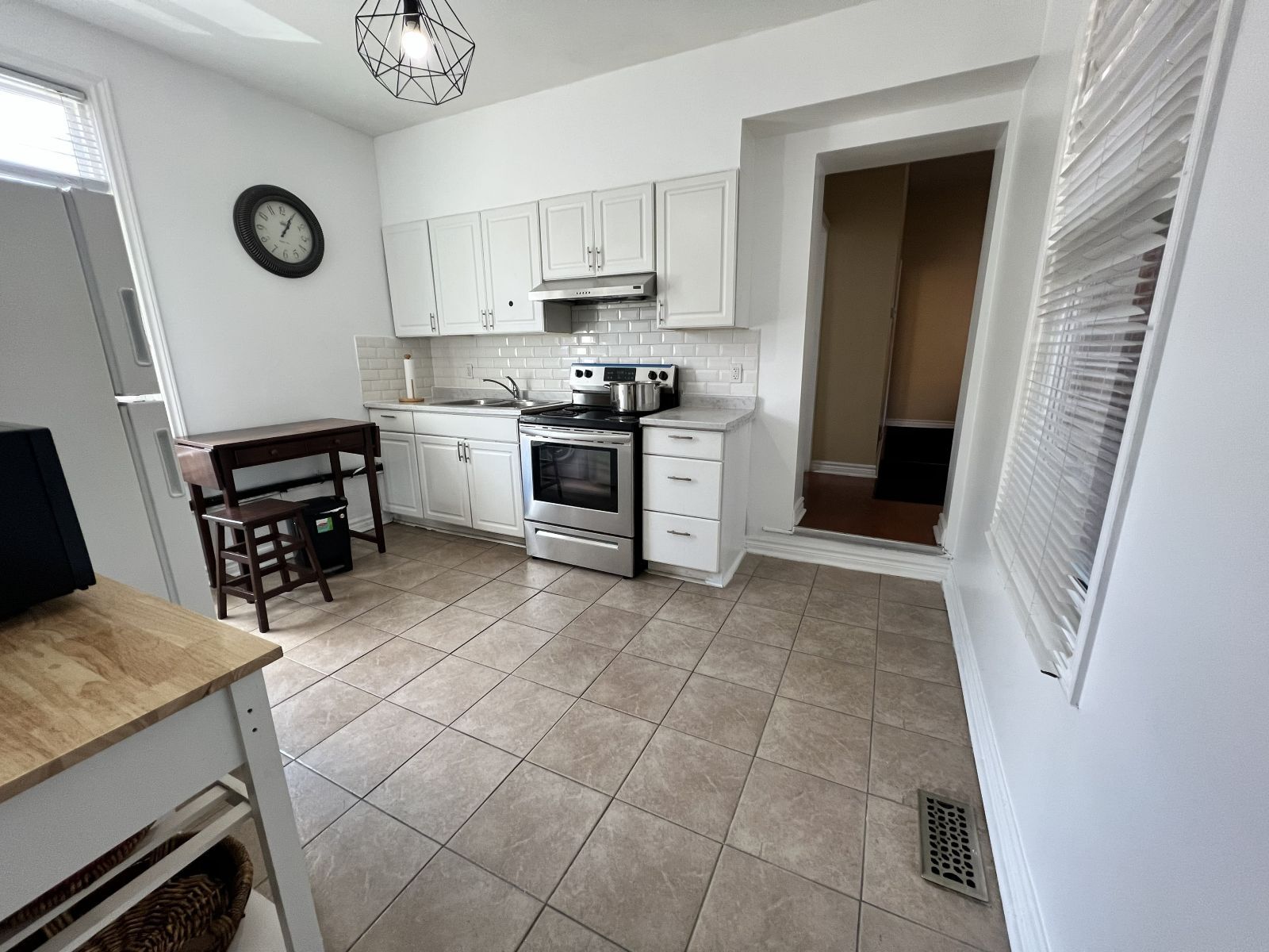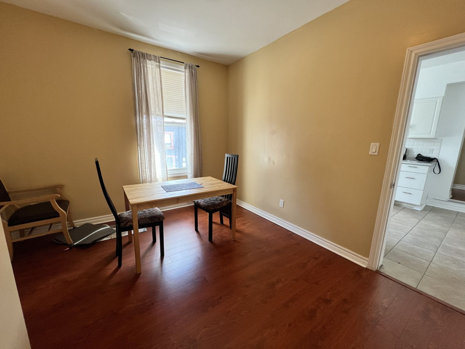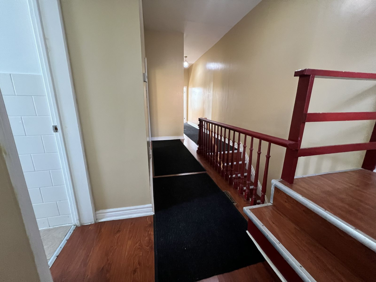 Bright and spacious 3-bedroom, 1-bath second-storey apartment in a convenient toronto location. Featuring a large entrance, this well laid-out unit offers generous principal rooms and an abundance of natural light throughout. The kitchen includes a stylish ceramic tile backsplash and space for an eat-in table. The rest of the rooms feature durable laminate flooring that runs throughout for easy maintenance. The oversized primary bedroom provides excellent comfort, and the additional rooms offer flexibility for a dining area, home office, or guest space to suit your lifestyle. Perfect for a family seeking space and functionality, with schools, parks, and an arena all nearby. Unbeatable transit access with streetcar service just steps away, a short ride to the subway, and quick access to major highways, making commuting across the city seamless. Walk score is 99, bike score is 99, and transit score is 96, highlighting the exceptional convenience of this location.