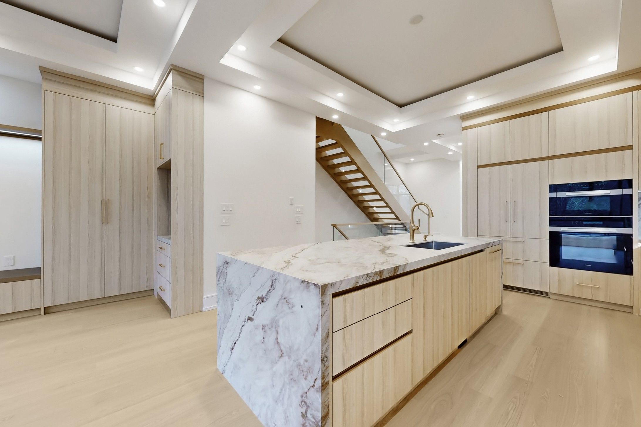 • Chef-inspired kitchen featuring premium Miele appliances for cooking enthusiasts.