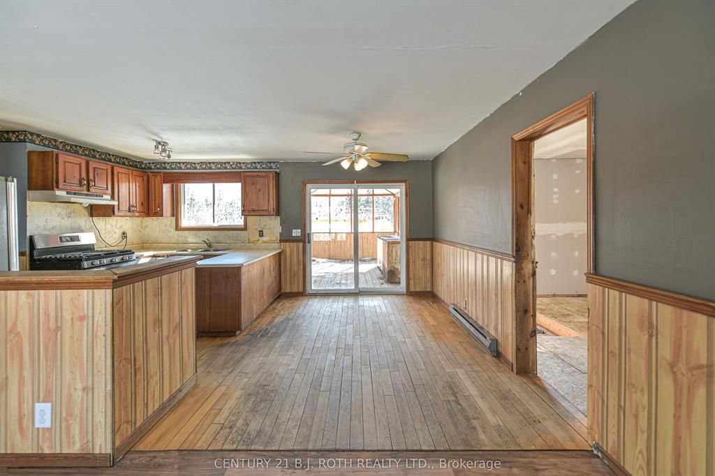 Situated on approximately 5 private acres near sebright, this country property offers space, privacy, and plenty of potential. This side-split home provides over 2,000 sqft of living space with 4 bedrooms (3 upstairs, 1 downstairs) and 2 bathrooms. The home requires updating but offers great bones and a functional layout, including an open concept kitchen, dining, and living area. A sliding door walkout leads to a covered back deck overlooking a mix of mature trees and cleared areas of the property. The attached garage has been converted into additional living space but could be returned to garage-use if desired. Additional features include a partial basement with large crawl space (great for storage), drilled well and septic, and multiple heating options including electric baseboard, wood-burning fireplace, and/or propane fireplace. With loads of parking and plenty of room to expand, garden, or create trails, this property presents a great opportunity for buyers looking to bring their vision and build equity in a peaceful country setting. Book your private showing today, it's time to turn your dreams into reality!