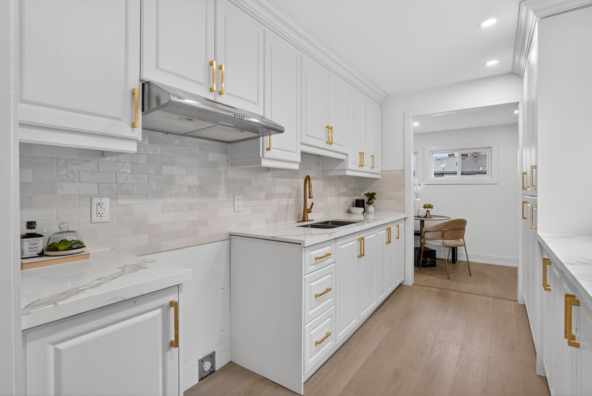 Welcome to 374 navy street, located in the heart of welland. This beautifully renovated bungalow has been updated from front to back, offering a perfect blend of modern finishes and comfortable living. Featuring 2 bedrooms and a bright, inviting living room with large new windows, the home is filled with natural light throughout. The brand-new kitchen is a true highlight, complete with quartz countertops, stunning brass hardware, and ample storage space. Just off the kitchen, the dining area provides a comfortable space for everyday meals and entertaining. The spa like bathroom showcases a stylish quartz vanity, elegant brass fixtures, and a beautifully tiled shower with a built-in niche. Luxury vinyl flooring runs seamlessly throughout, adding both durability and a contemporary touch. For added convenience, the laundry room is thoughtfully designed with additional cabinetry matching the kitchen, complete with brass hardware and a butcher block countertop, offering both function and style. Step outside to a generously sized backyard and parking for up to three vehicles. Ideally located close to schools, parks, grocery stores, and all essential amenities, this home is perfect for first-time buyers, downsizers, or investors. Call to book your showing today.