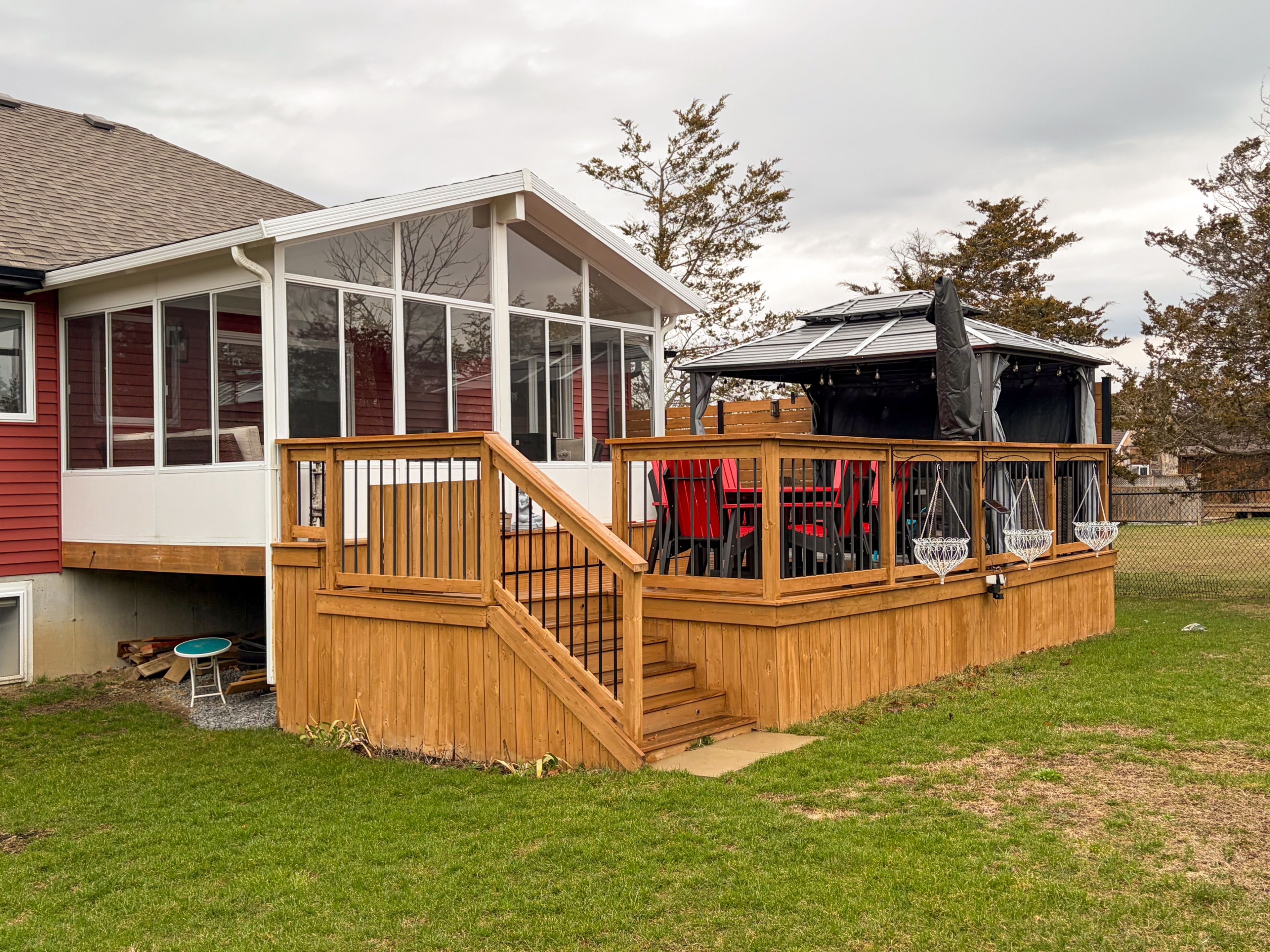 • Spacious backyard with an oversized deck, perfect for relaxing outdoors.