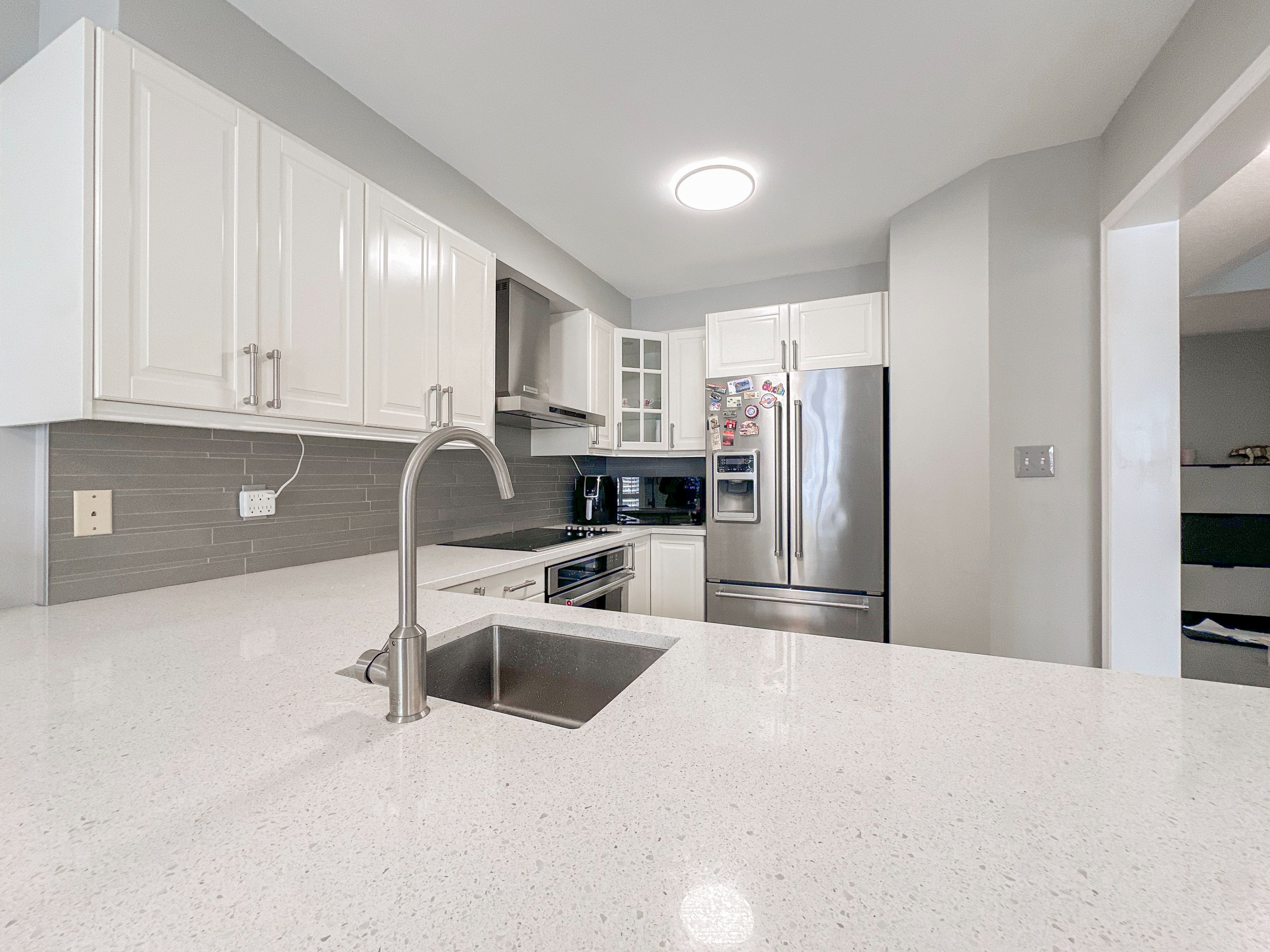 • Spacious kitchen featuring quartz countertops and high-end KitchenAid appliances.