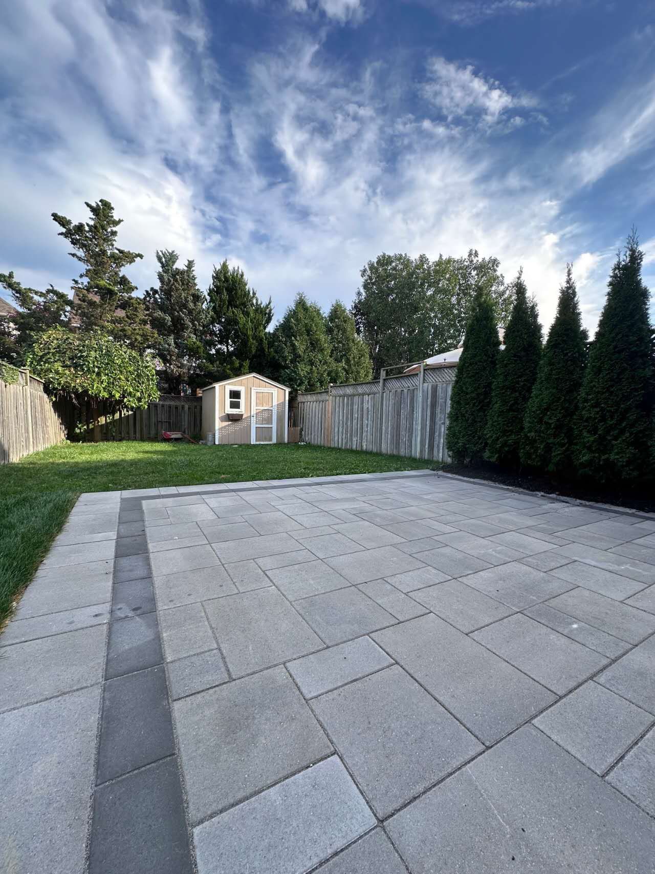 • Private backyard with a cedar wood deck and toolshed, perfect for outdoor enjoyment.