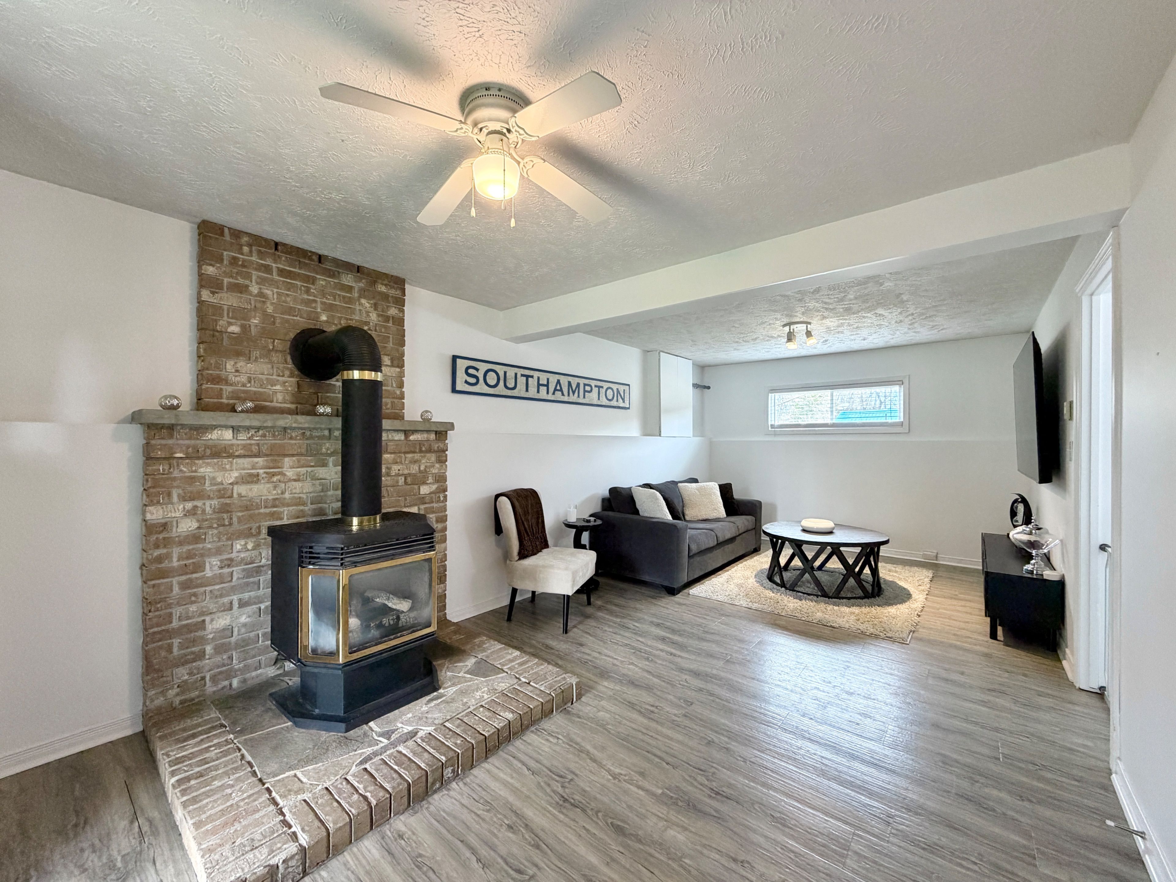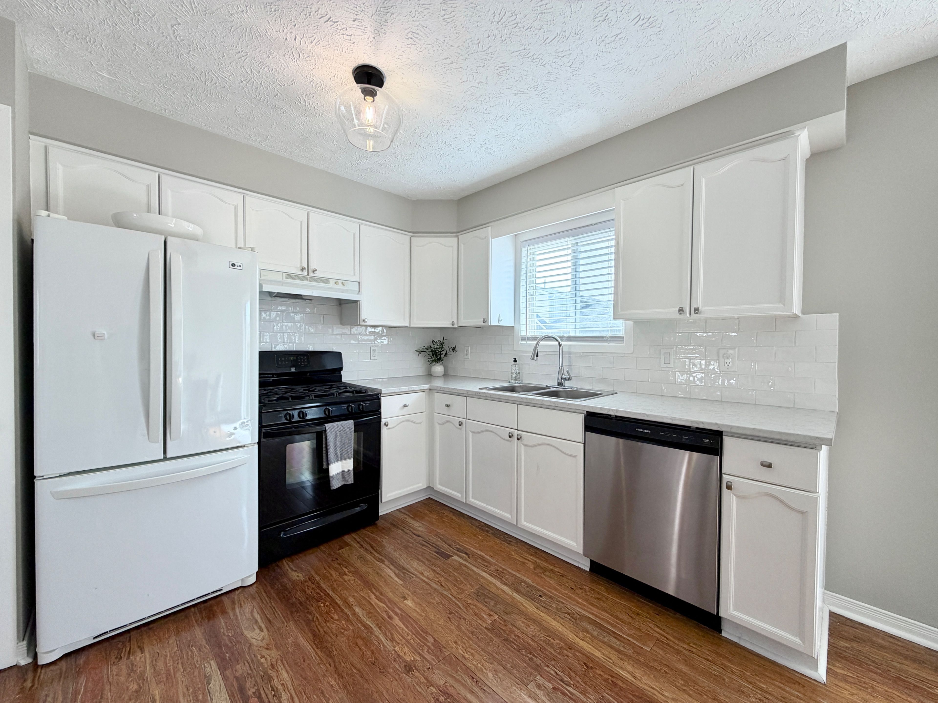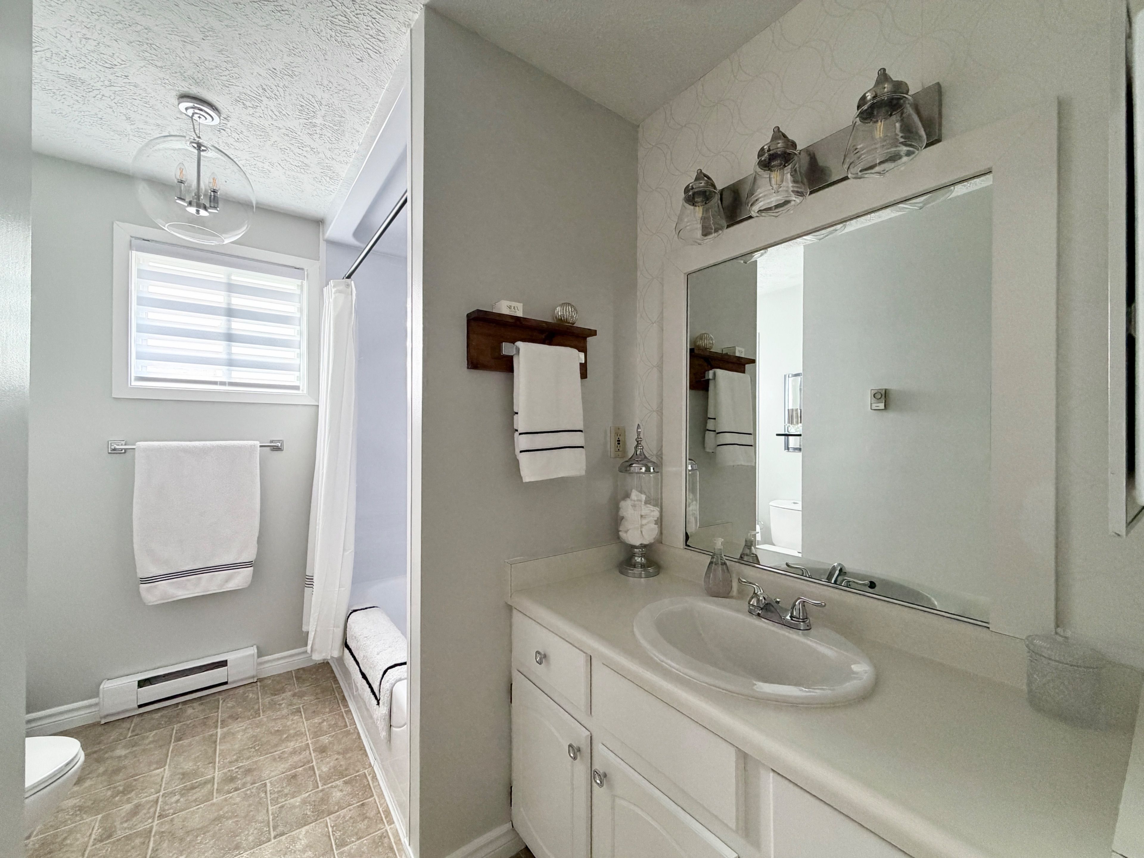 • Bright interior features a modern kitchen with new countertops and gas stove.