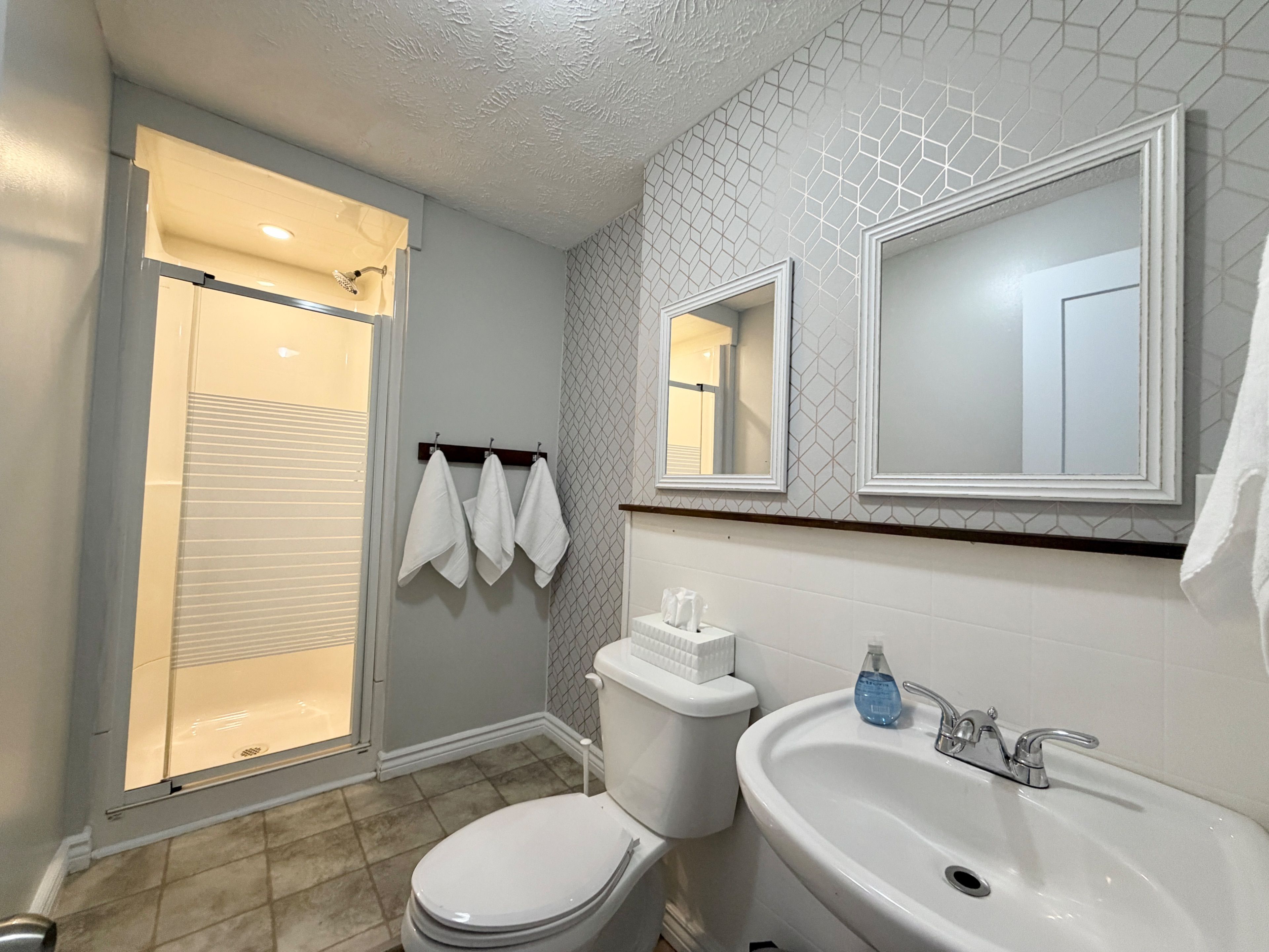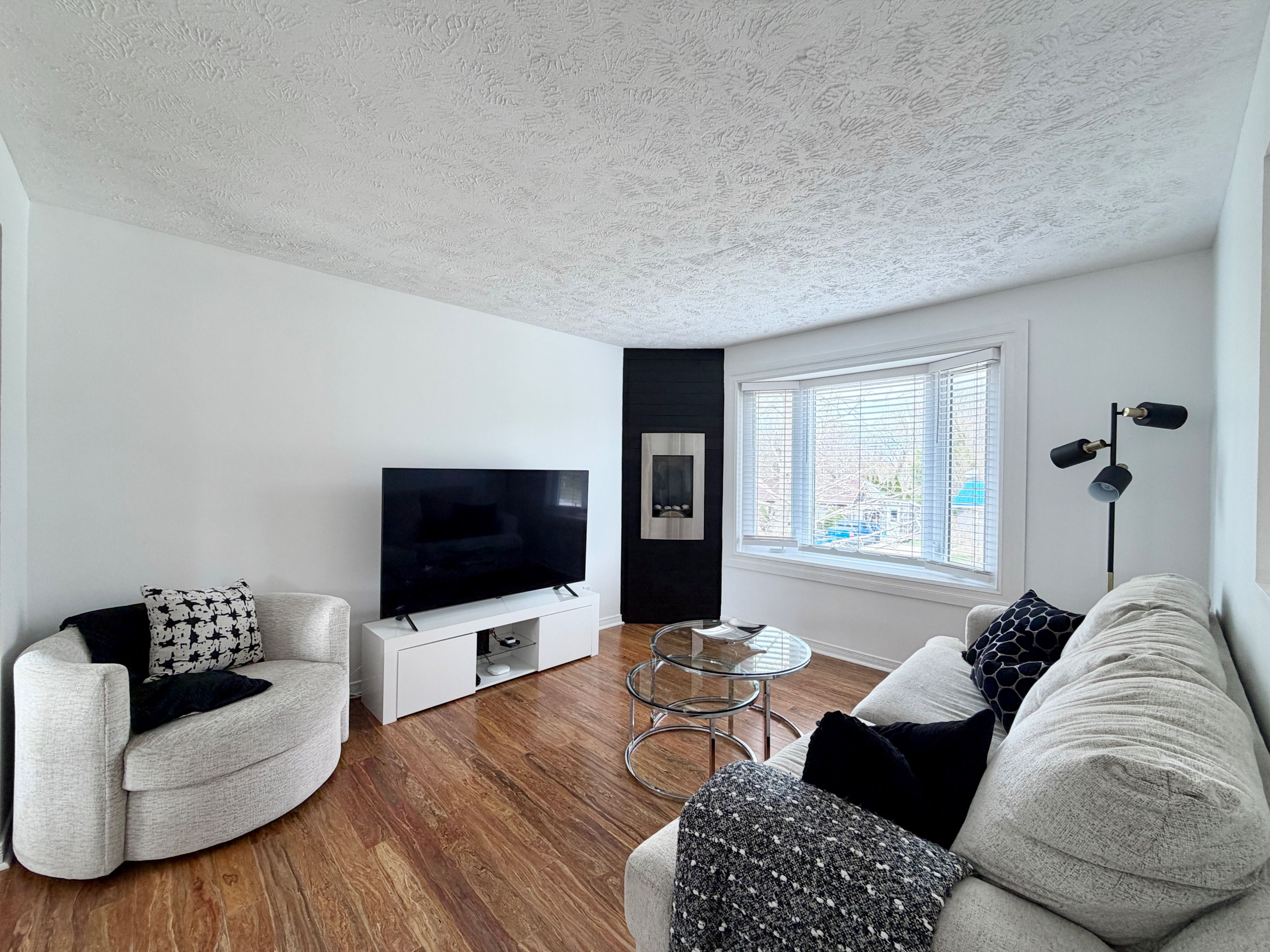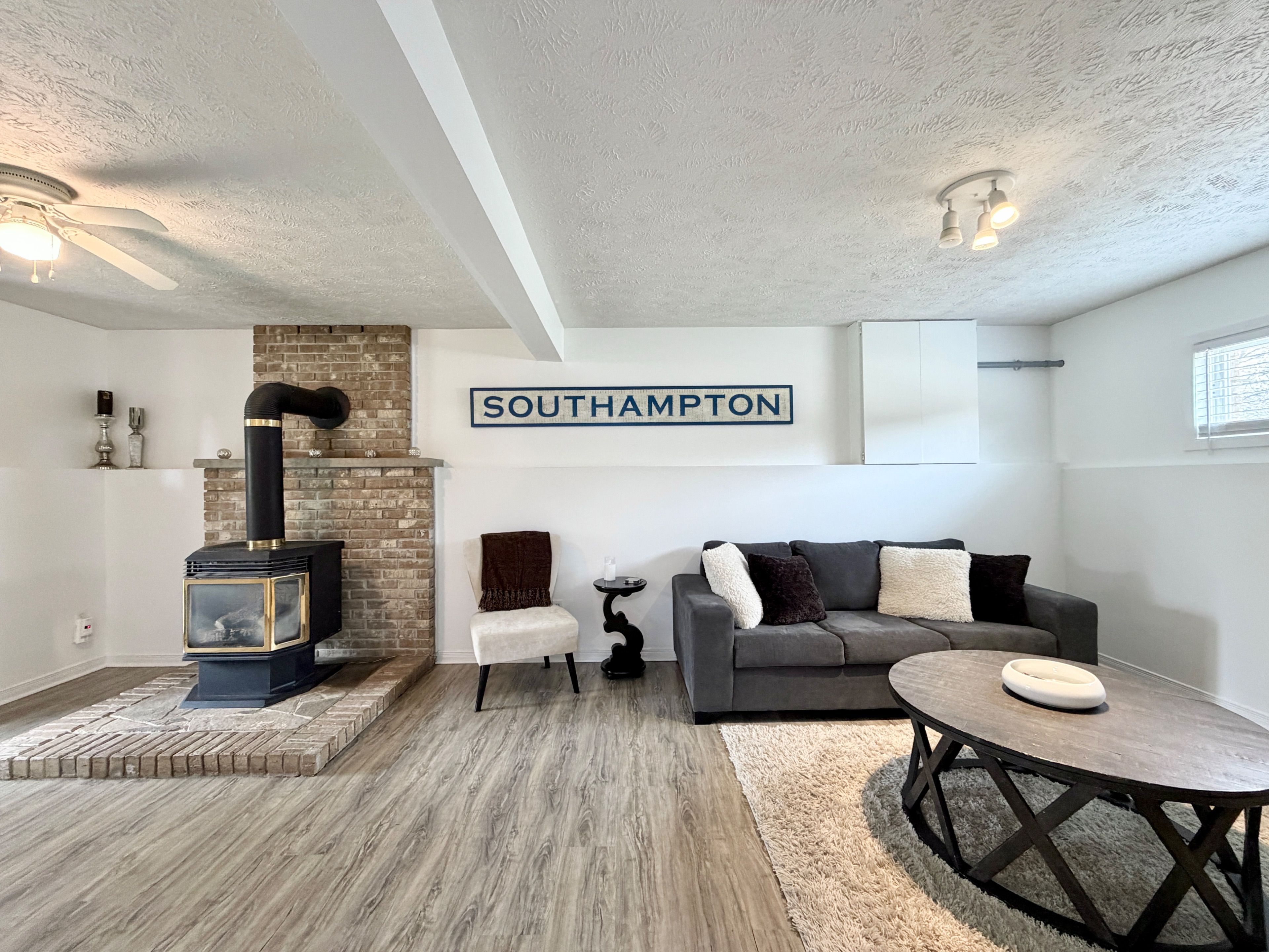 • Bright interior features a modern kitchen with new countertops and gas stove.