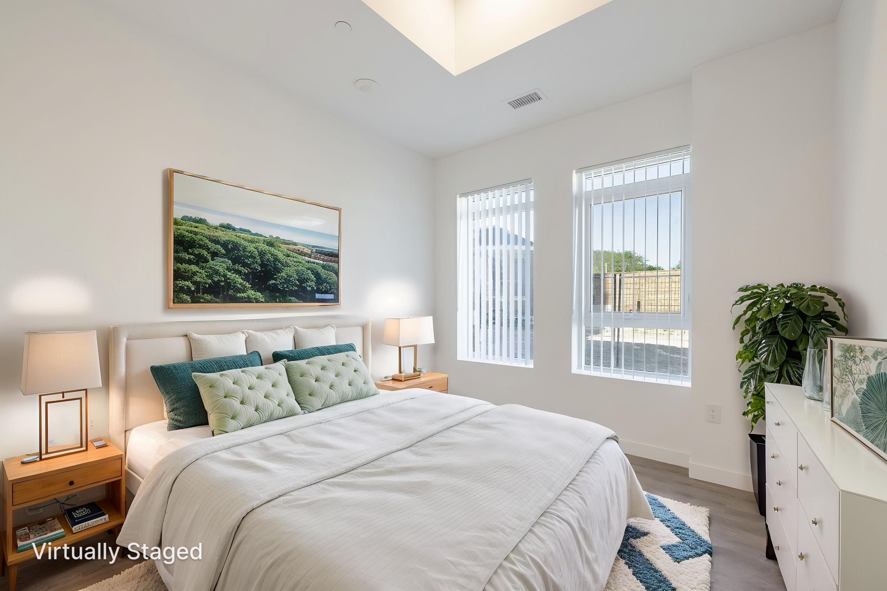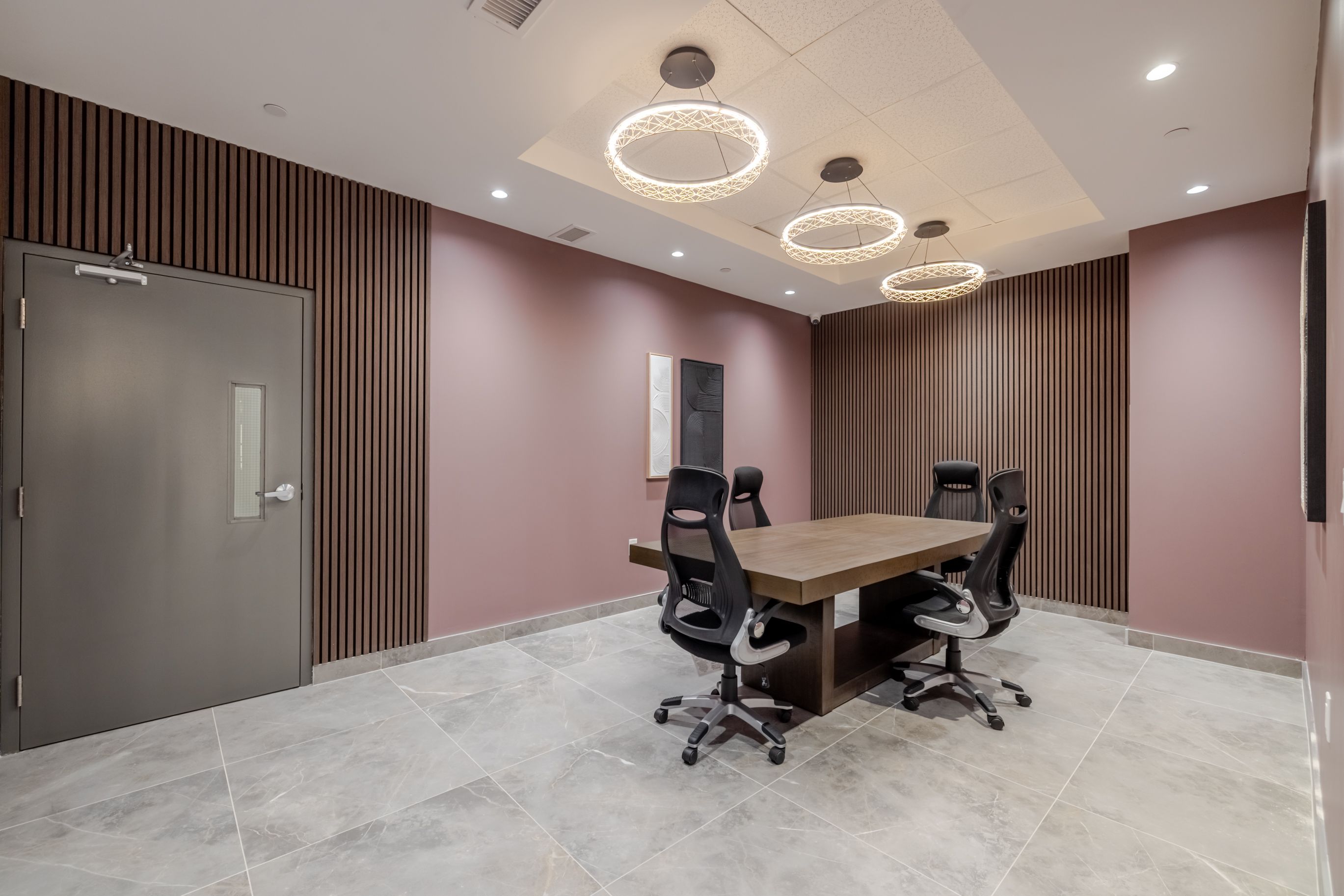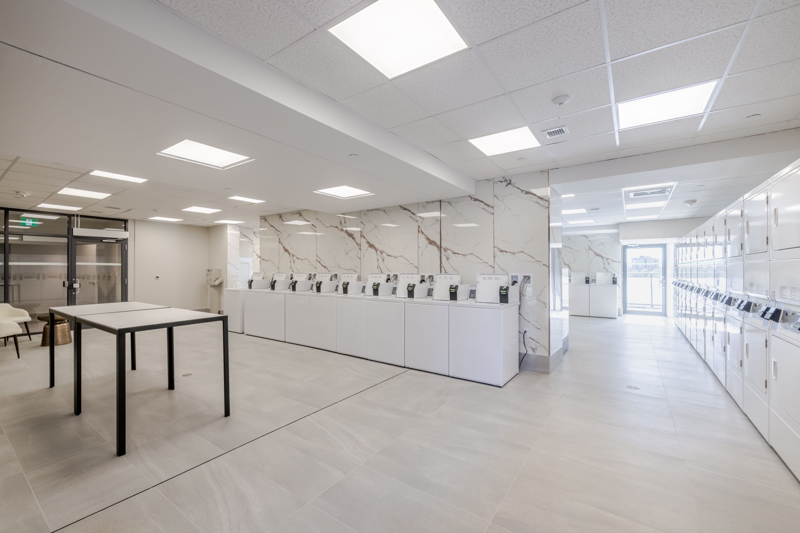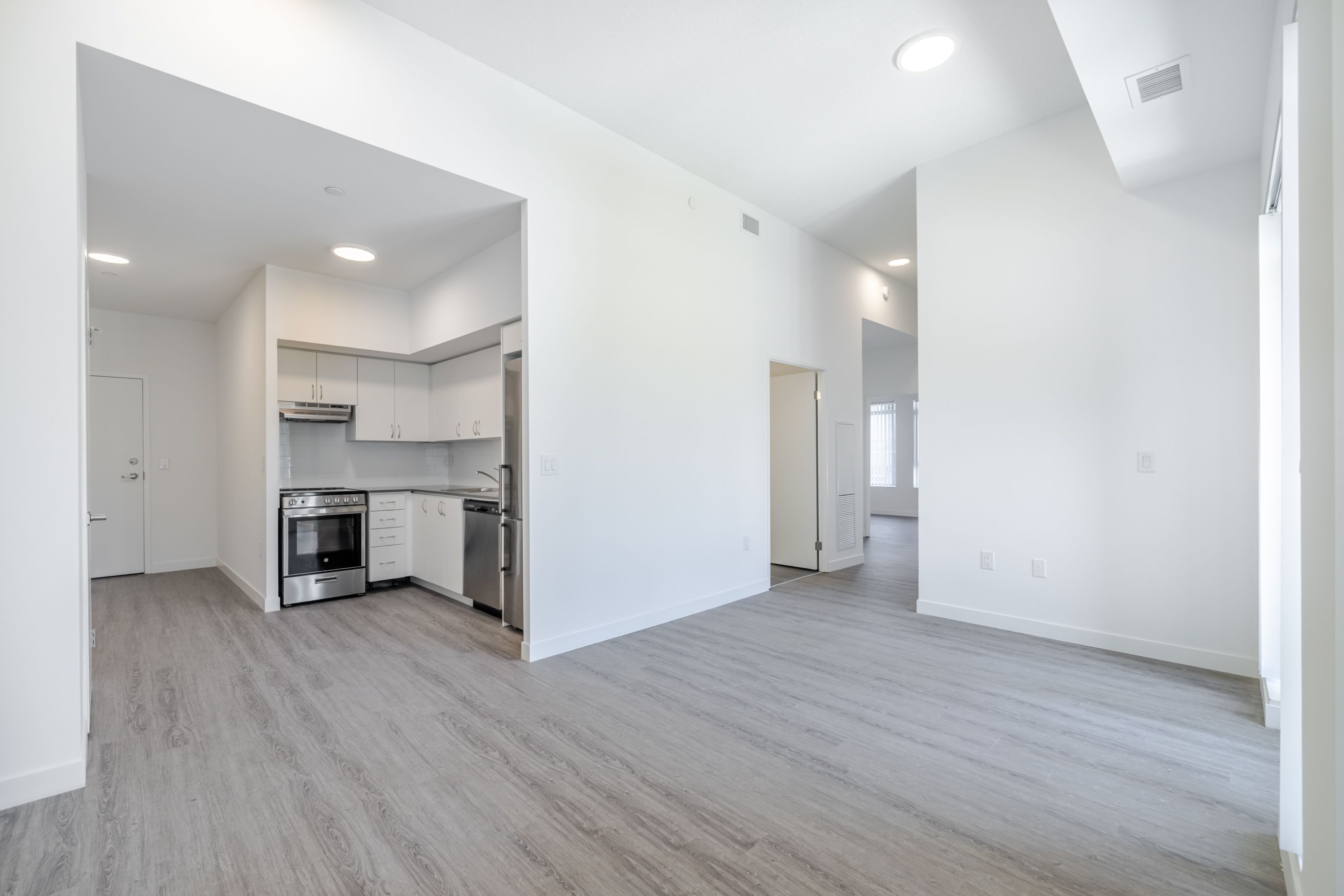• Amenities include a gym, outdoor terrace, party room, and co-working space.