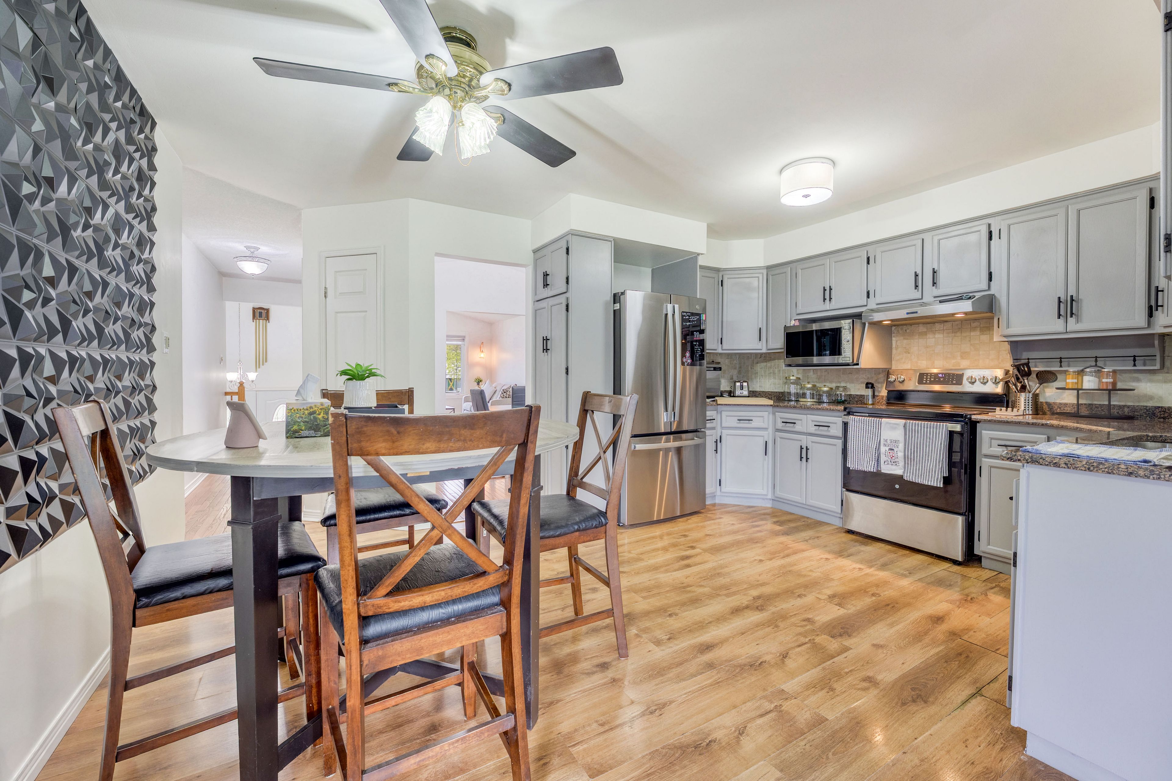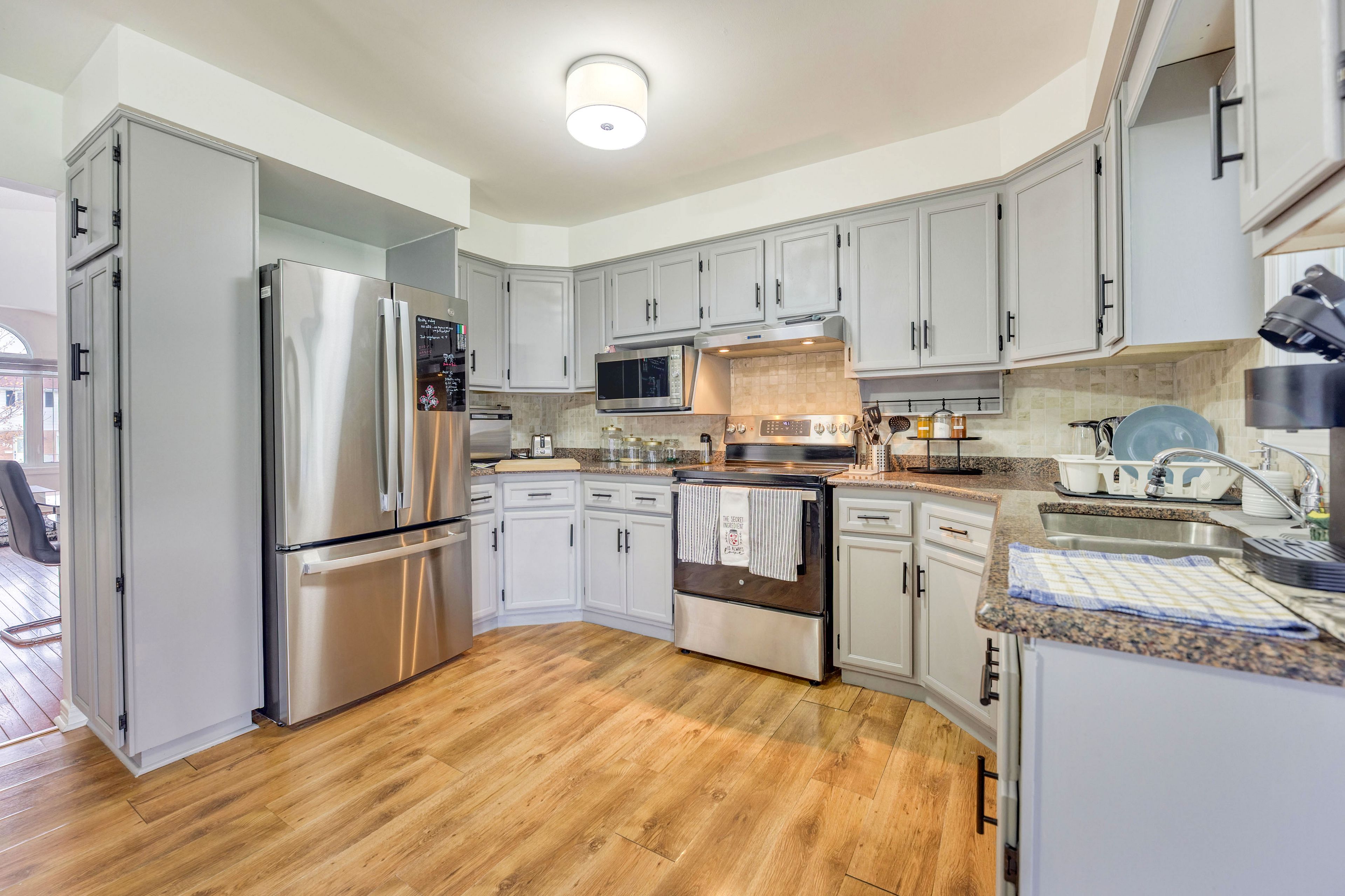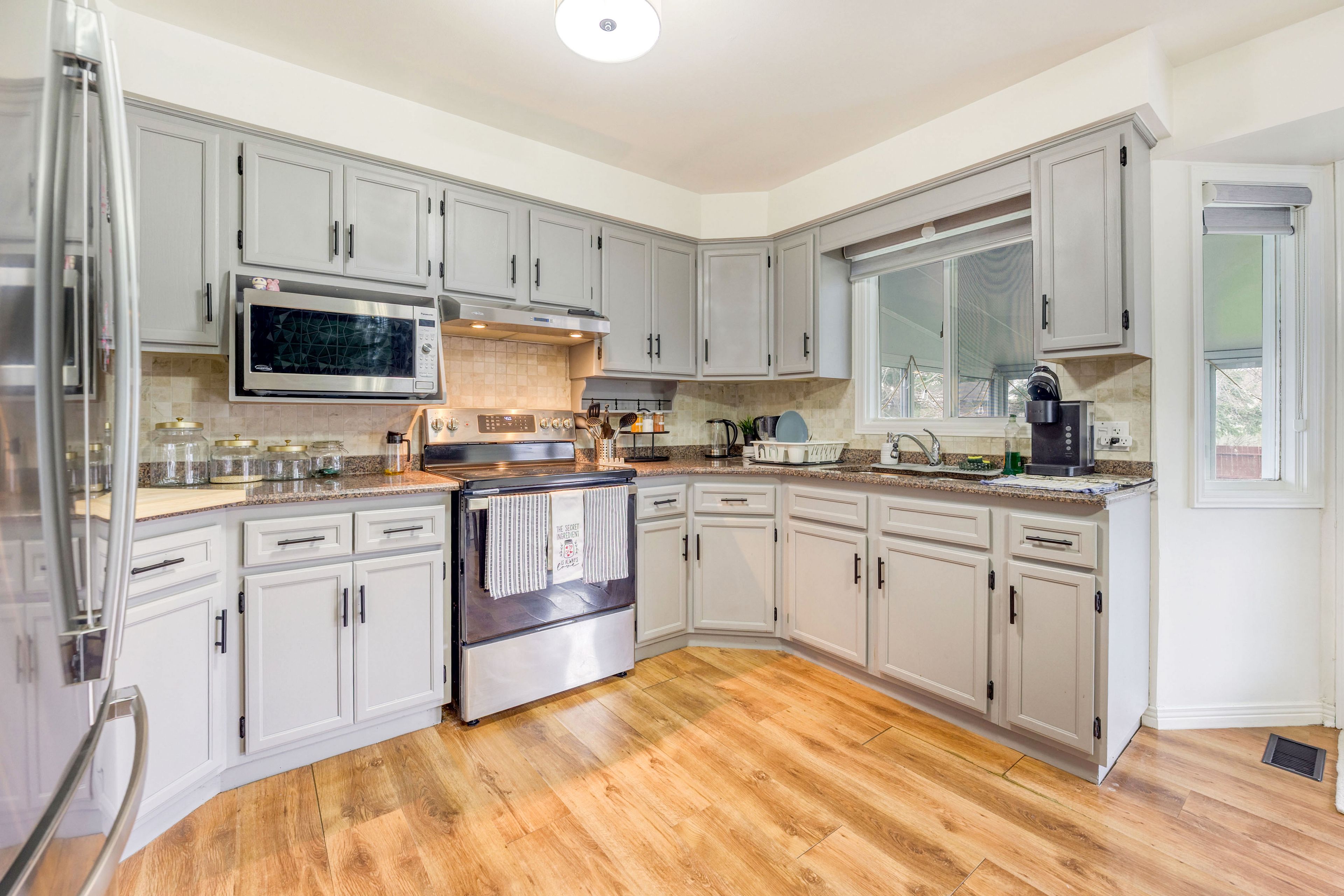• Lower level includes three additional bedrooms and a kitchenette for flexibility.