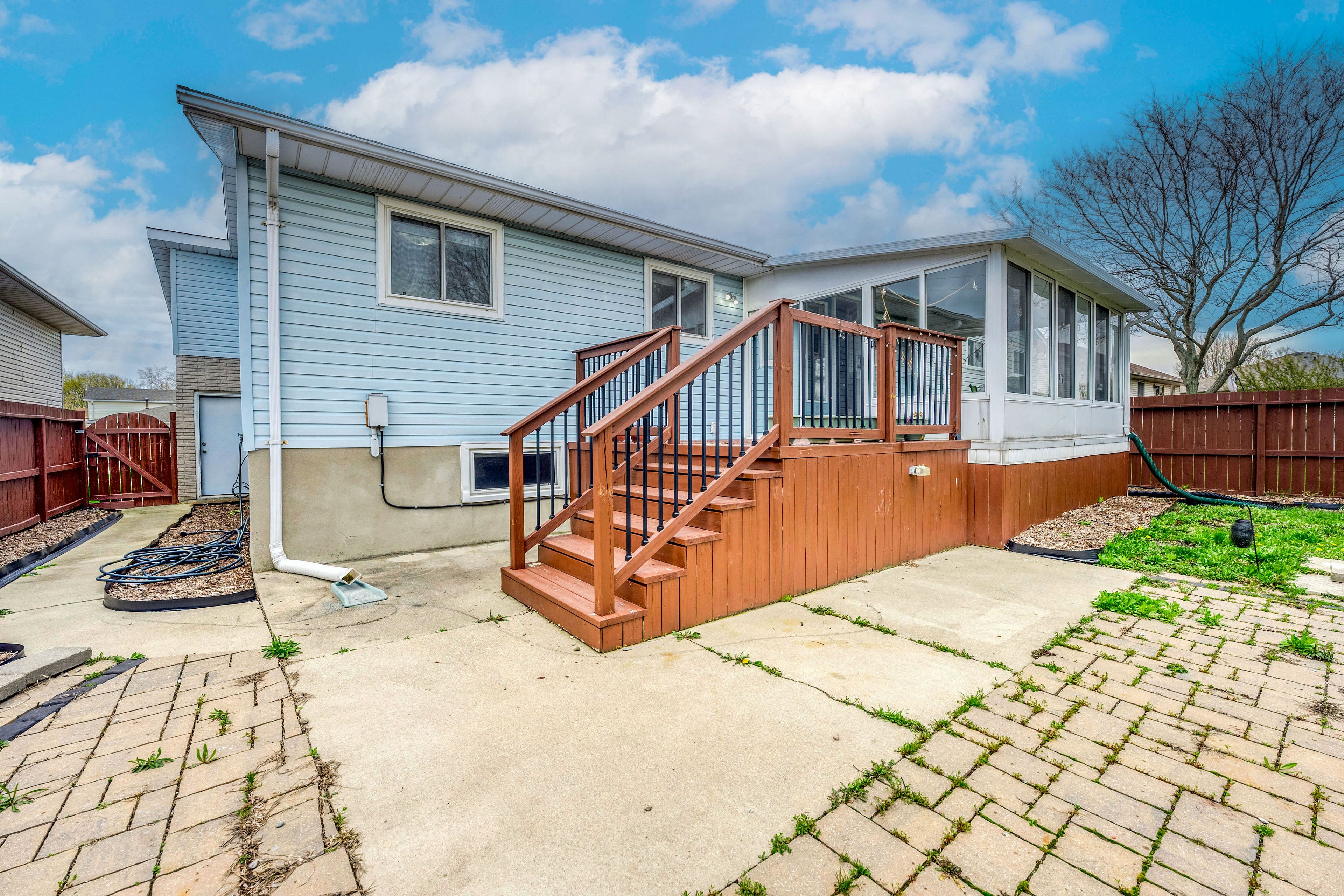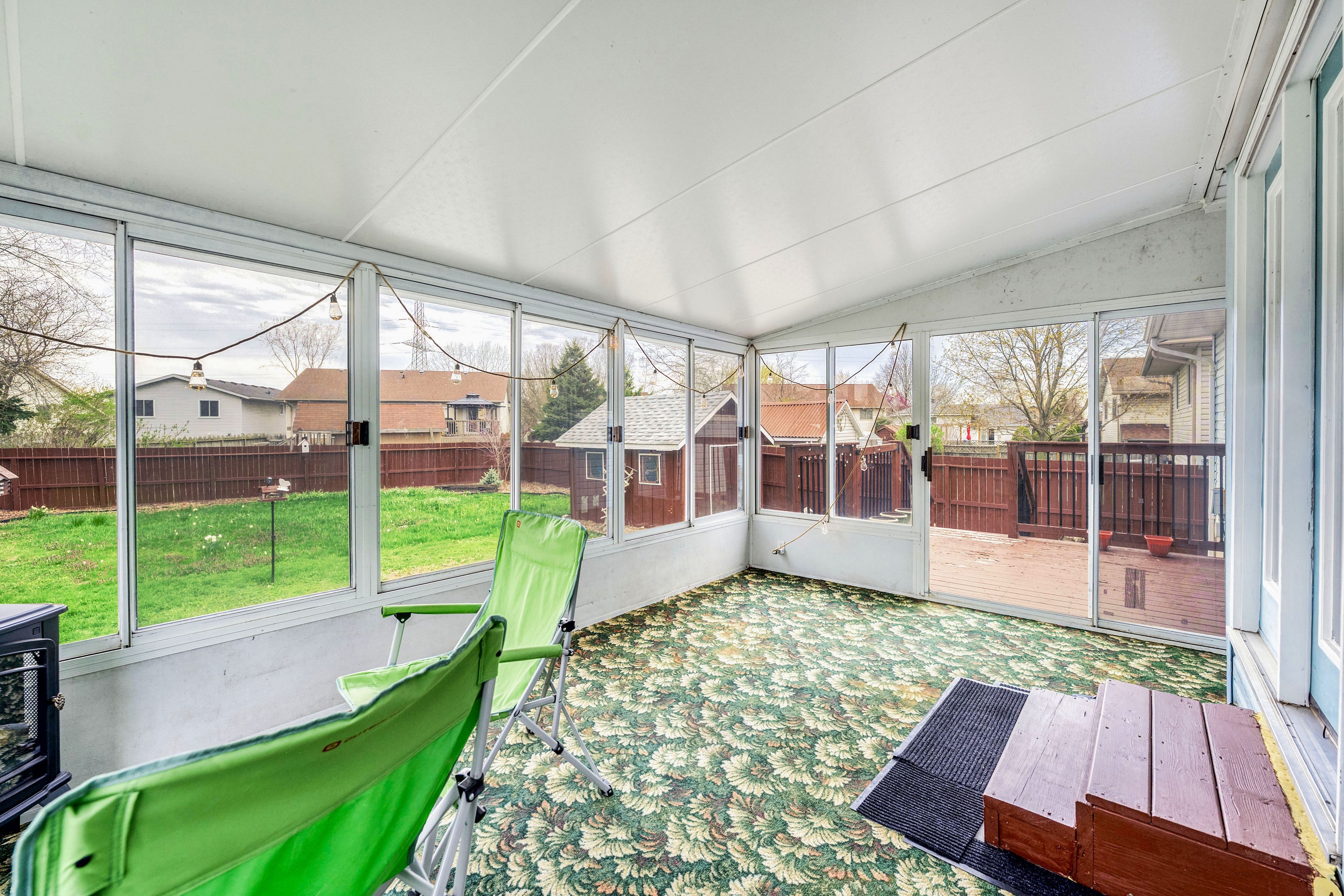 • Cozy three-season sunroom with a fully fenced backyard for outdoor fun.