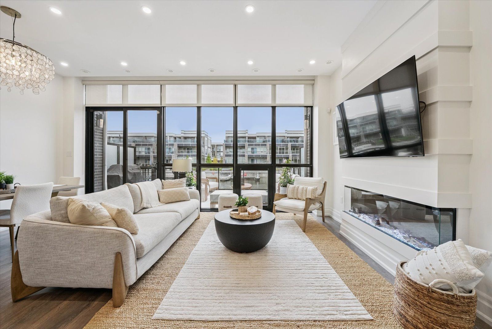 An exceptional marina townhome in the heart of the prestigious friday harbour resort, offering a refined blend of elegance, comfort, and resort-inspired living. This stunning 2-storey residence showcases premium upgrades throughout and is designed for those who appreciate quality and lifestyle. Featuring floor-to-ceiling windows that fill the home with natural light, radiant in floor heat throughout the main floor, a beautifully updated white kitchen with stainless steel appliances, elegant glass railings, & coffee station with sink, and additional storage. The primary bedroom offers a custom-built closet, while the convenience of second-floor laundry adds to the thoughtful layout. The professionally finished garage includes an epoxy floor custom slat wall by garage living- a $13,000 upgrade. Buyer to pay 2% + hst friday harbour association fee. This property also includes a private boat slip and pedestal, providing direct access to lake simcoe. Enjoy resort-style living with access to friday harbour's world-class amenities including the lake club, resort pools, cabanas, splash pads, championship golf course, beach club, marina, canoes & kayaks, scenic nature walking trails, boutique shops, cafés, restaurants, and year-round activities. A rare opportunity to own in one of ontario's most sought-after four-season resort communities.