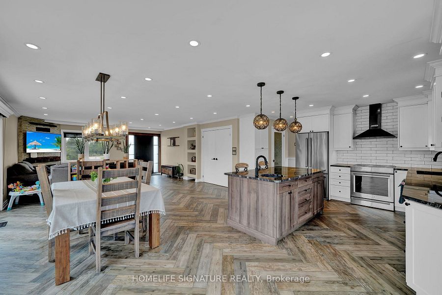 Escape to serenity your dream retreat (8. 56 acres) on the edge of amaranth, just minutes from shelburne. This unique 3 bedroom bungalow offers peace, privacy, and plenty of room to entertain. The open-concept layout offers a seamless flow into the living area, highlighted by a cozy electric fireplace and elegant herringbone-patterned porcelain tiles. Main floor features a custom kitchen with granite countertops, soft-close cabinetry, and premium appliances. The generous dining area showcases panoramic views eastern exposure overlooking a peaceful pond and southern views of your private woodlot. From here, walk out onto the spacious wraparound deck, ideal for morning coffee or hosting evening gatherings. Make the most of summer with a heated above-ground pool and its own expansive, enclosed deck perfect for outdoor entertaining. The fully finished walkout basement is a true retreat, boasting rustic barn board features, a wet bar, pellet stove, 3-piece bath, and a flexible family room that could easily be converted into an extra bedroom or home office. Unwind in the 3-season sunroom with a built-in hot tuba perfect space to relax, enjoy games,and soak in the peaceful setting. With stunning views of your own pond and shoreline, this property offers the best of both worlds: an entertainers haven and a quiet countryside escape. You can canoe, kayak, or fish at your leisure right from your backyard. The property comes with a 1-acre tree farm where the owner has planted over 500 young seedlings, offering both beauty and future growth potential.