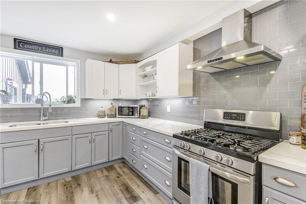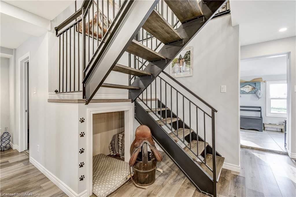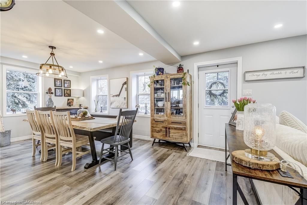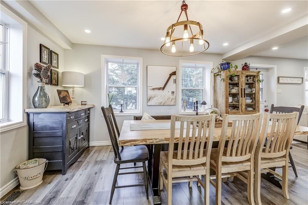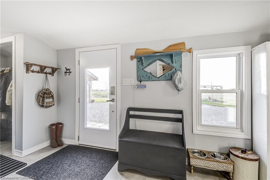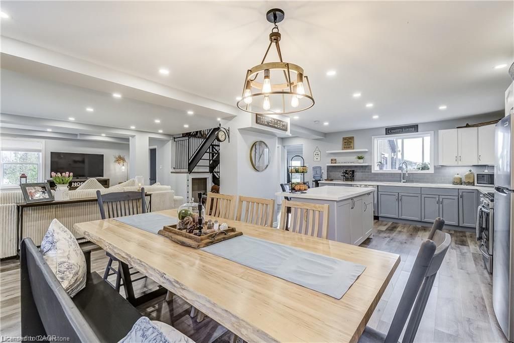 Welcome home! Renovated century farmhouse, where character and charm meets modern living! Nestled in a quiet and desirable area on 0. 92ac in rural outskirts of hagersville surrounded by farmland and mature treed setting. Step inside and be greeted by the warmth of the abundance of natural light and desirable open concept floor plan. With approx. 1800sqft of living space there's ample room for everyone to unwind, entertain, and spend time together. The heart of the home lies in the spacious kitchen complete with stone counter tops, a large island, and stainless-steel appliances. Main floor also features a renovated 3pc bathroom, spacious living room, dining space and convenient laundry/mud room. Second levels offers 3 bedrooms and a renovated 4pc bathroom once you walk out to the expansive yard, you'll not only enjoy the peace and tranquility but great entertainment amenities such as fire pit, lovely large gazebo perfect to relax and sip your morning coffee or gather in the evening to watch some outdoor movies. This property also features a detached garage, parking for up to 10 vehicles, unfinished partial basement with dirt floor that could be used for storage, hydro one updated from road to house, custom blinds in bedrooms/bathrooms and living room, laminate flooring throughout water pump and updated 200amp. Don't miss this amazing opportunity to live in this beautiful community approx. 30mins to hamilton/dunnville/simcoe, 15mins to lake erie/grand river. Basement is for storage purposes only.