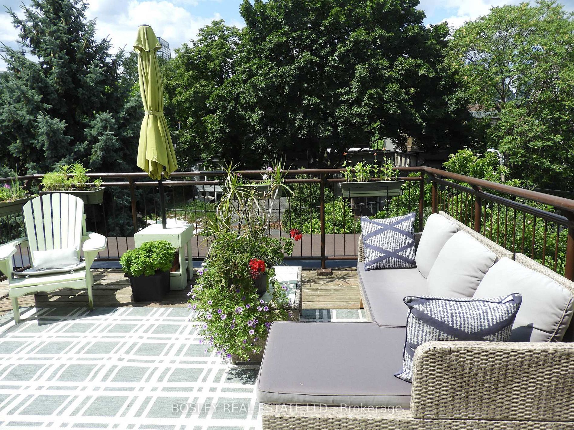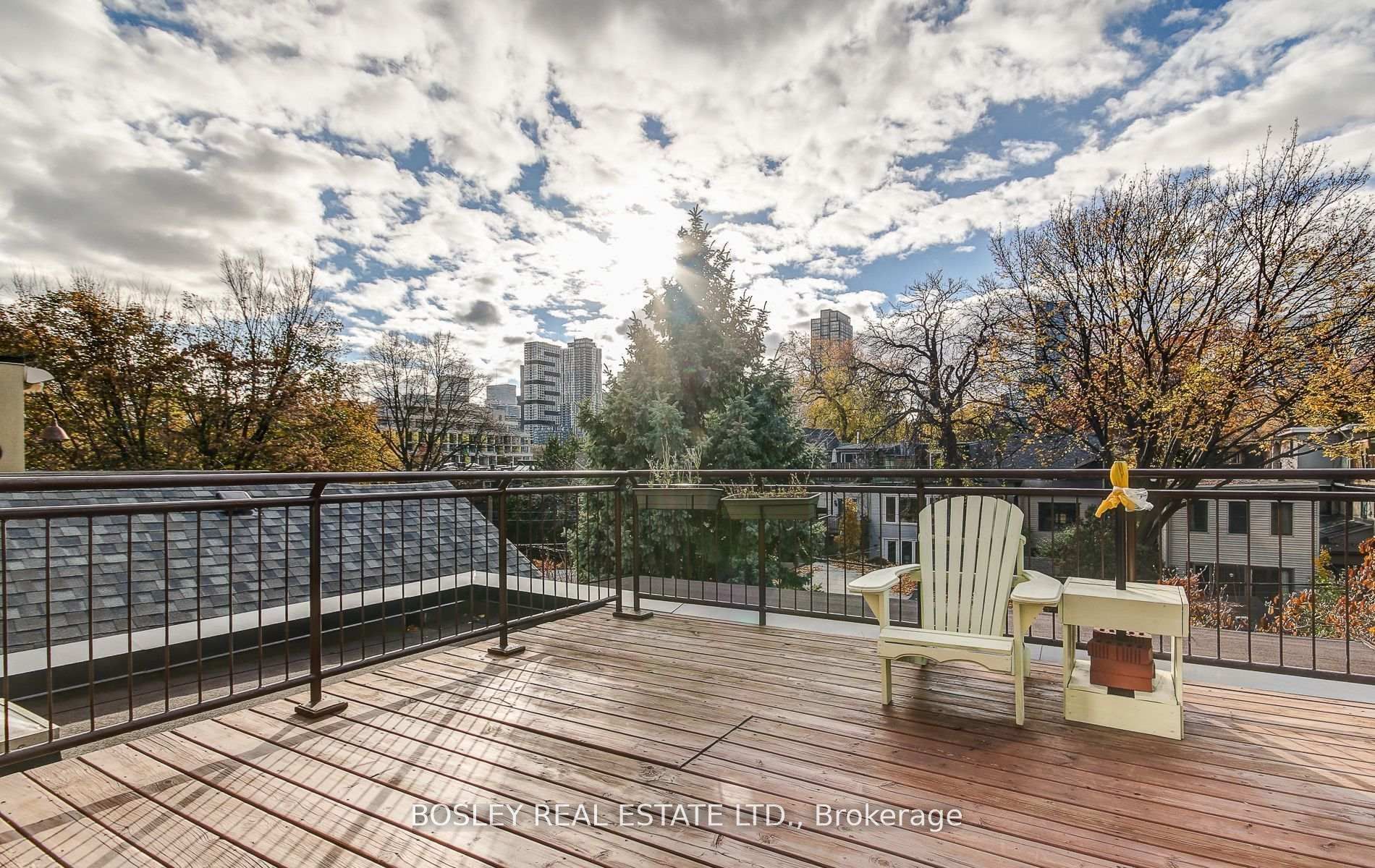 A cabbagetown rare gem, detached historical home featuring an upper duplex with 2nd & 3rd floors over 1800 sq. Ft , high ceilings, oak hardware floors, original banisters & railings. The 2nd floor offers a 27 ft living room with a victorian carrera marble fireplace & wrought iron insert, a sunken dining room with an elaborate chandelier & den with skylight, a large open concept kitchen & dining area with treetop views from juliet balcony, a powder room, storage & furnace rooms & a foyer nook, the 3rd floor includes 2 large bedrooms, each with a skylight. A 27 ft primary bedroom, a second bedroom overlook tree views & a large private patio approx. 15 ft x 13 ft , laundry room. Located on a quiet tree lined street in one of the prime most sought after toronto neighborhoods, steps from cafes, shops, banks, parks & transit. Quick highway access, only a 20 minute walk to 5 downtown large hospitals & the eaton center.
