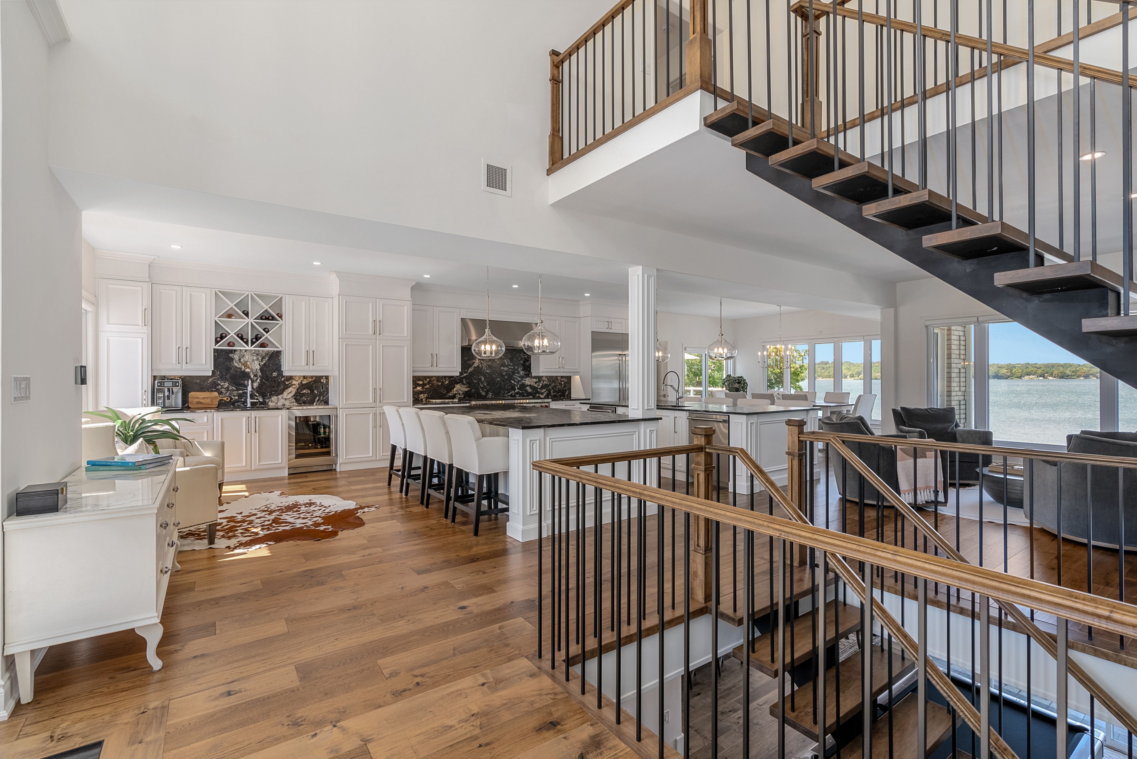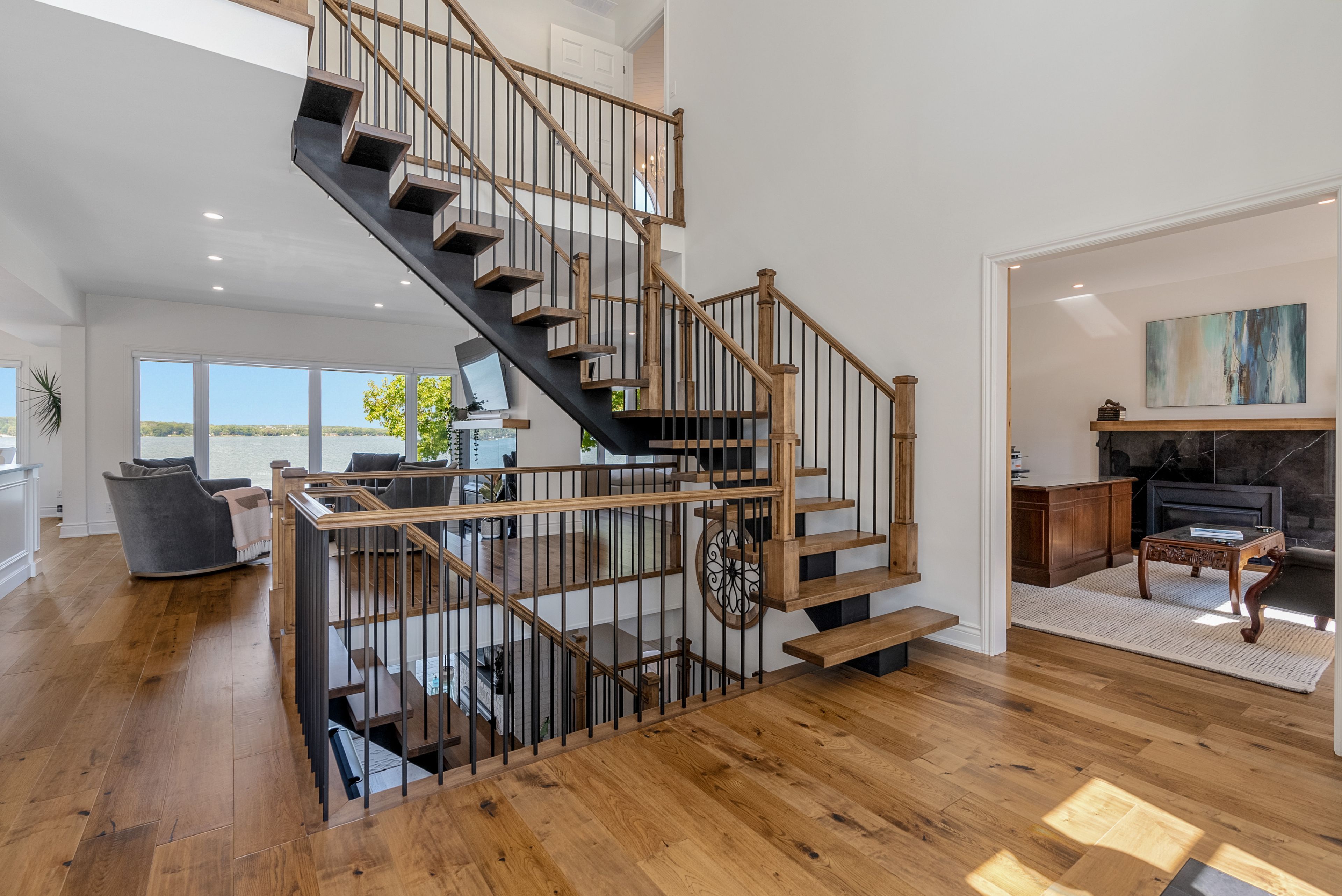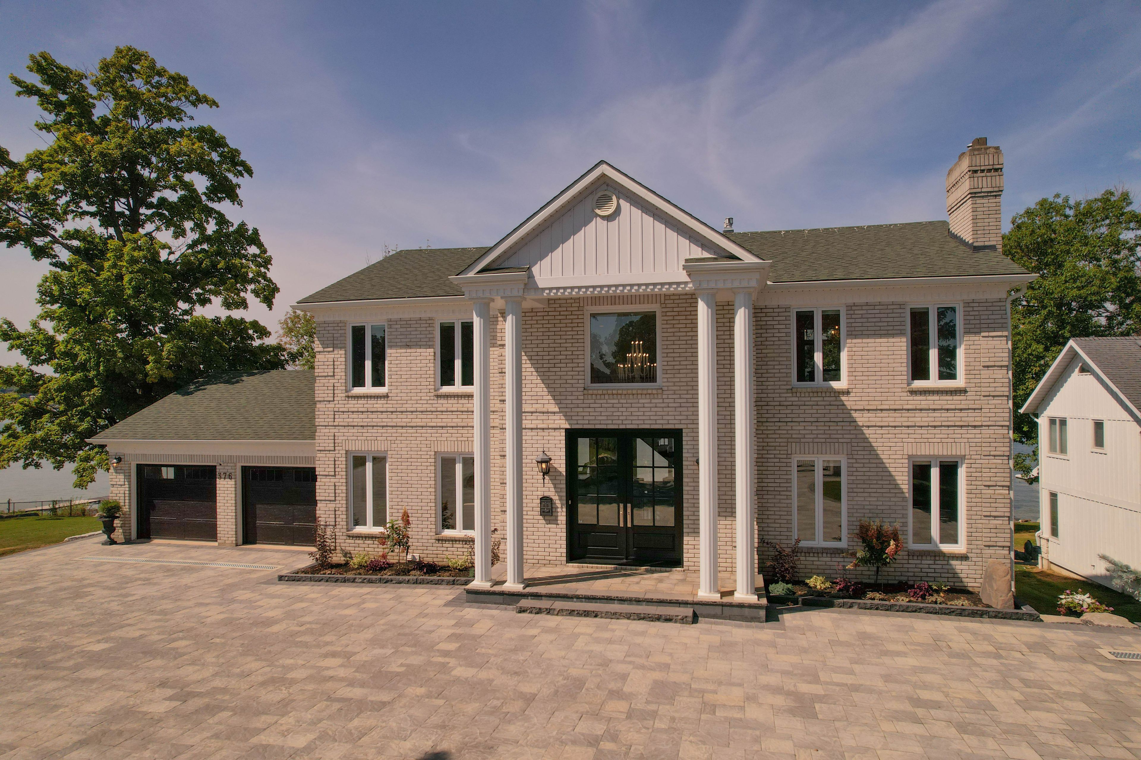 Welcome to 376 brewery lane, a stunning luxury waterfront home situated on one of orillias finest streets. This exceptional property offers 104 feet of prime lake couchiching frontage on a beautifully landscaped half-acre lot with western exposureperfect for soaking in spectacular sunsets and views of downtown orillia. Completely renovated from top to bottom, this home offers nearly 5400 square feet of high-end living space, featuring 5 bedrooms and 4. 5 bathrooms. The gourmet kitchen is a showstopper with two impressive 10-foot islands, granite countertops, and premium appliances from wolf, subzero, and thermador. The open-concept main floor boasts large windows that frame lake views, a cozy gas fireplace in the living room, and a walkout to an expansive deckideal for both relaxation and entertaining. The upper level features 3 spacious bedrooms, each with its own ensuite, and a laundry room for added convenience. The primary suite is a true retreat with vaulted ceilings, a grand walk-in closet complete with built-ins and an island, and a spa-like ensuite featuring a walk-in shower, soaking tub, heated floors, and double vanity. The finished walkout basement offers 9-foot ceilings, a second full kitchen, separate laundry, and a private entrance, making it perfect for extended family or guests. Outside, the property truly shines with a heated saltwater pool surrounded by interlock patios, multiple seating areas, and a large dock complete with sea doo lifts. The private stone path leads to a hard-packed lakefront, perfect for enjoying summer days by the water. Double gated entries and a heated interlock driveway provide both privacy and convenience. This rare waterfront gem is located at the end of a quiet court, offering tranquility and luxury living.