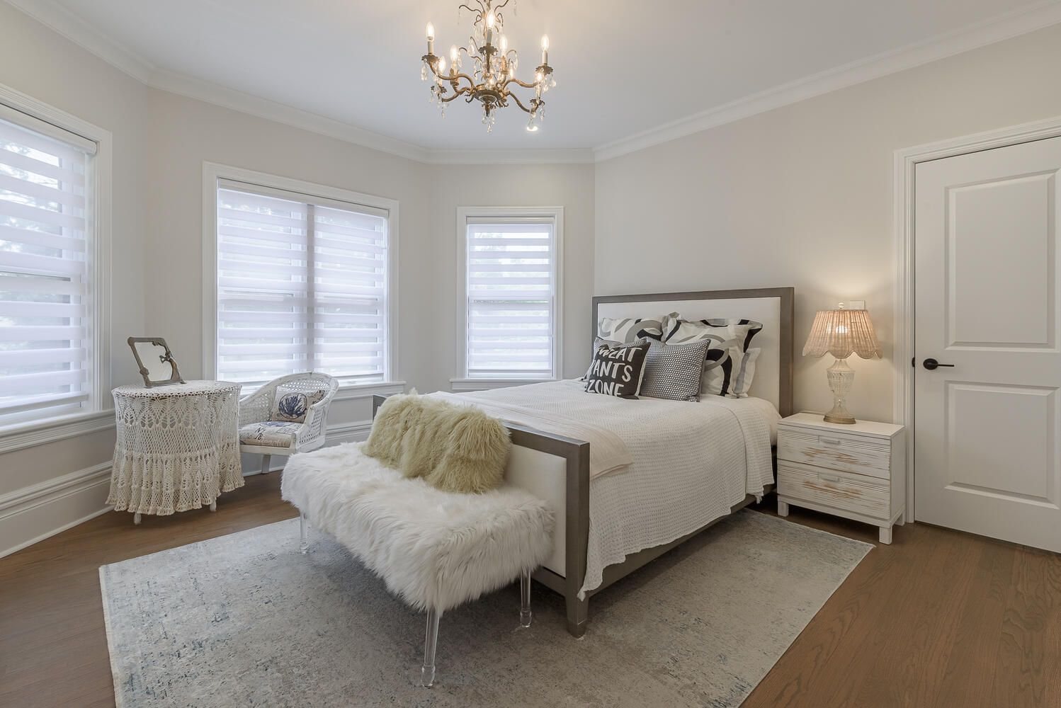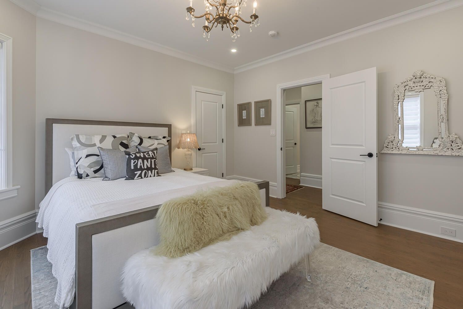 • Tall 10-ft ceilings and elegant original glass-paneled doors throughout.