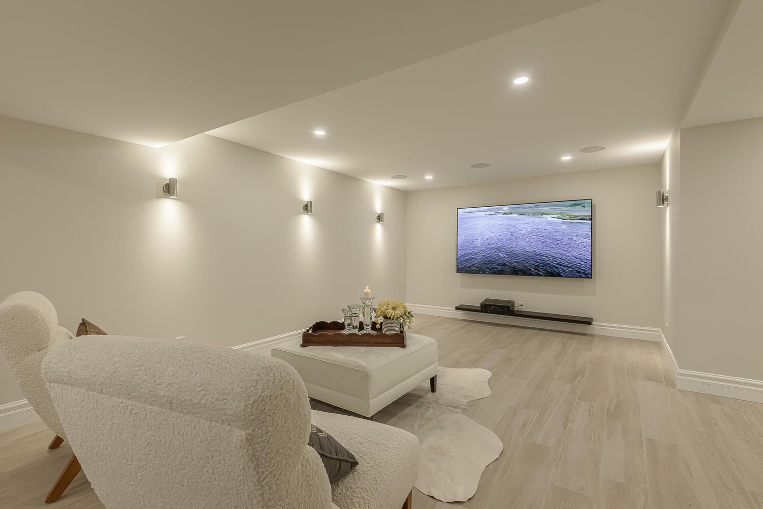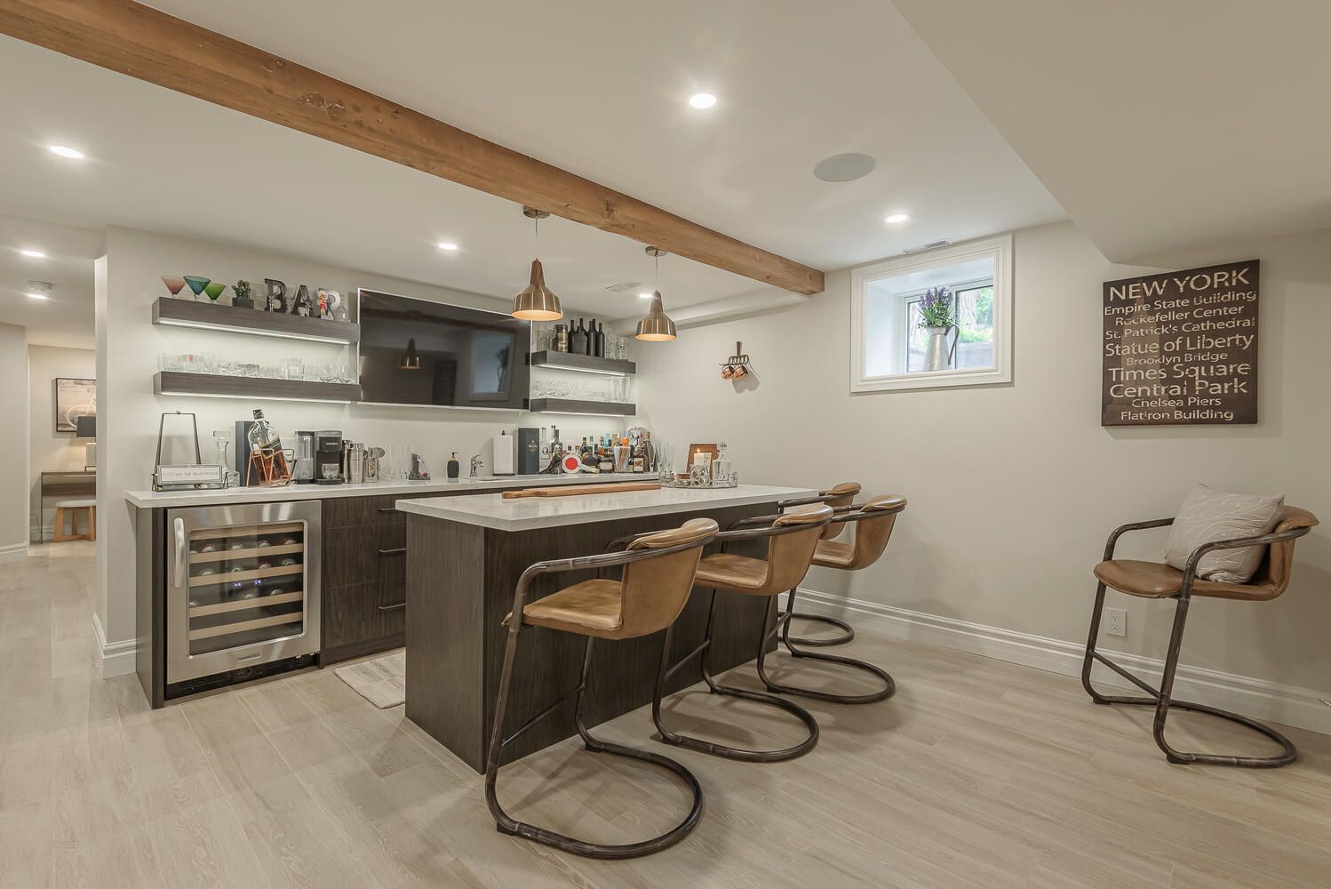 • Comfortable heated floors in bathrooms and cozy basement entertainment space.