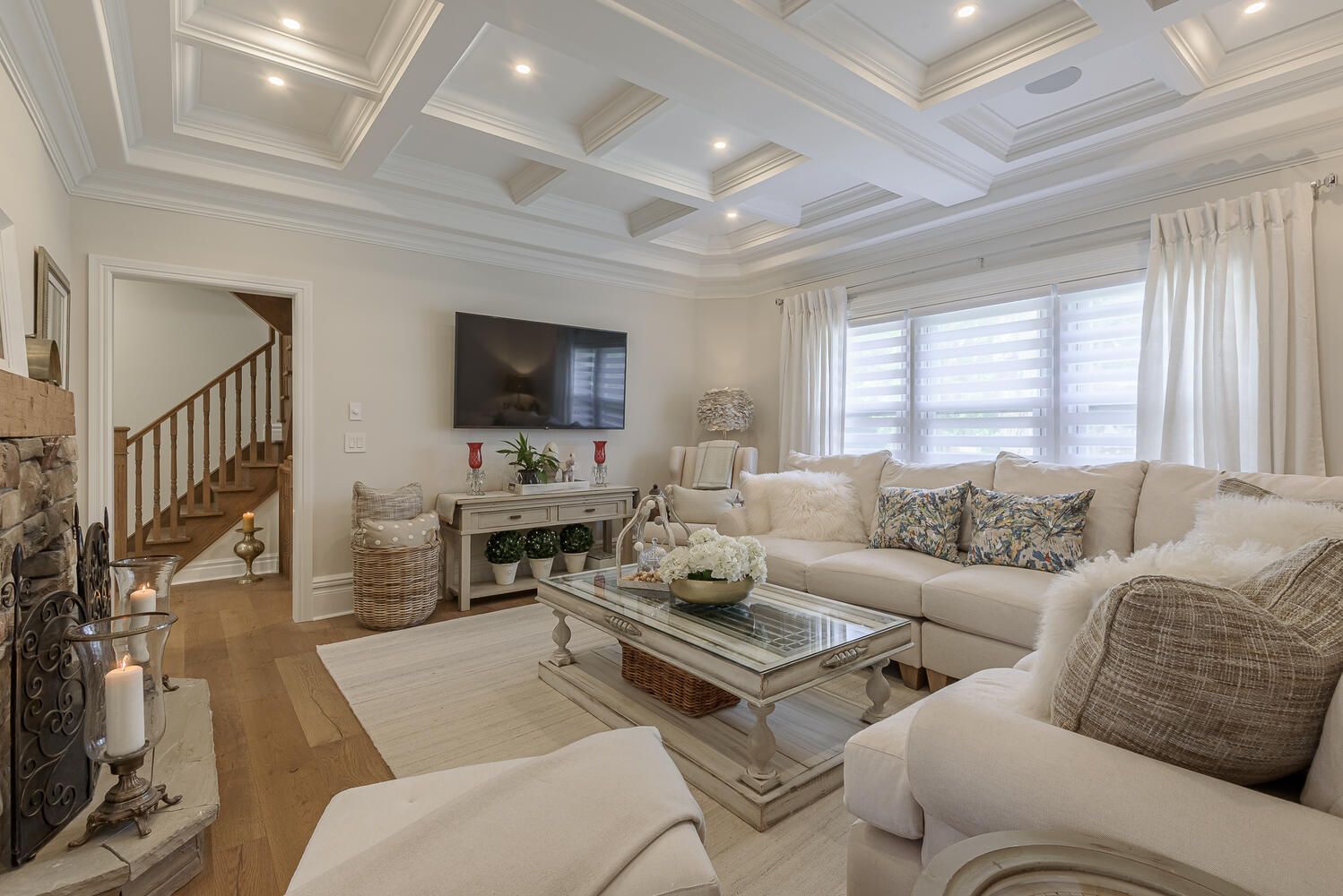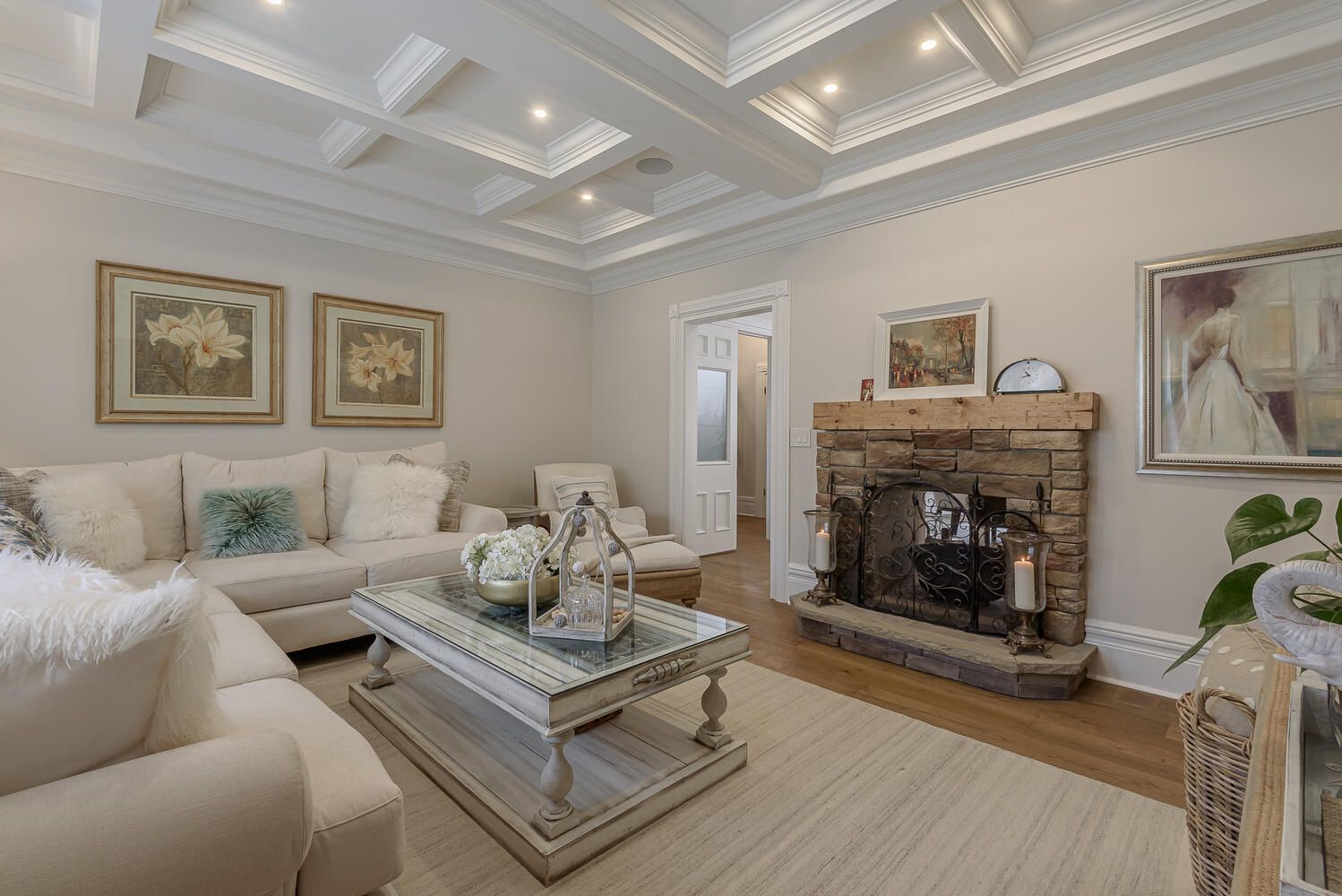 A truly one-of-a-kind, professionally restored home that blends timeless victorian charm with modern luxury. This stunning residence features 10-ft ceilings on the main floor, pot lights throughout, and a custom-made kitchen with a high-end designer backsplash and a spacious walk-in pantry. Original details include elegant straw glass windows, many original glass-paneled doors (no locks), rounded wall edges, oak staircases, and beautifully preserved victorian baseboards, crown moldings, and hinges. The living room features a classic wood-burning fireplace, while a striking gas fireplace connects the family room and dining room; perfect for both ambiance and warmth. Enjoy three expansive porches with cedar ceilings and pot lights, and a large separate garage with loft storage. The home boasts a floating staircase leading to the third floor, a skylight, coffered ceilings in the family room, and a third-floor teenager or nanny suite. All bathrooms include heated floors for year-round comfort, while the basement features in-floor heating, a quartz island bar, and a cozy entertainment space. Upgraded with 200 amp electrical service and a new water heater, this home offers over three full floors of living space plus a finished basement. Located just a 10-minute walk to downtown oakville, this prestigious address offers character, warmth, and sophistication rarely found today.
