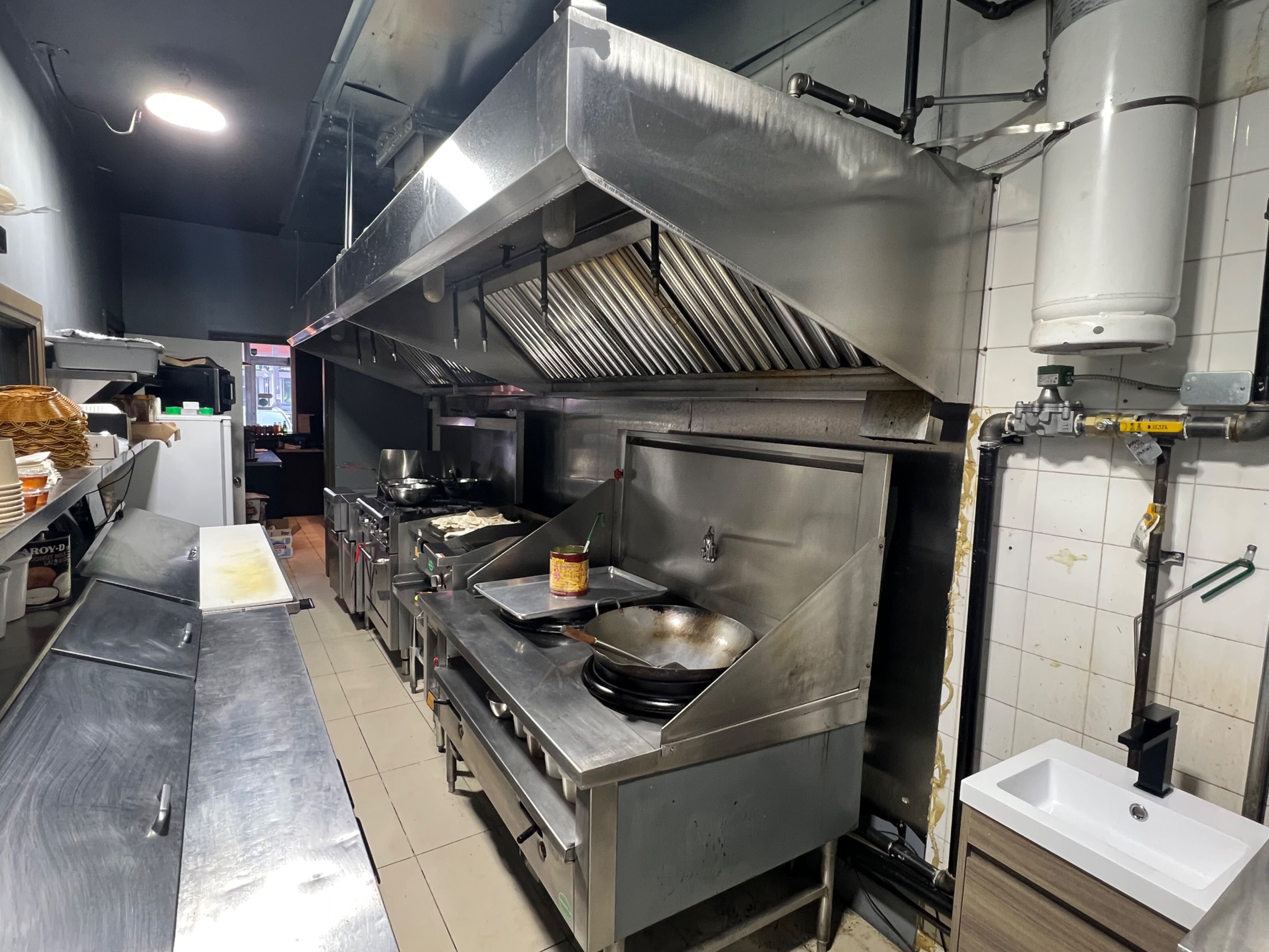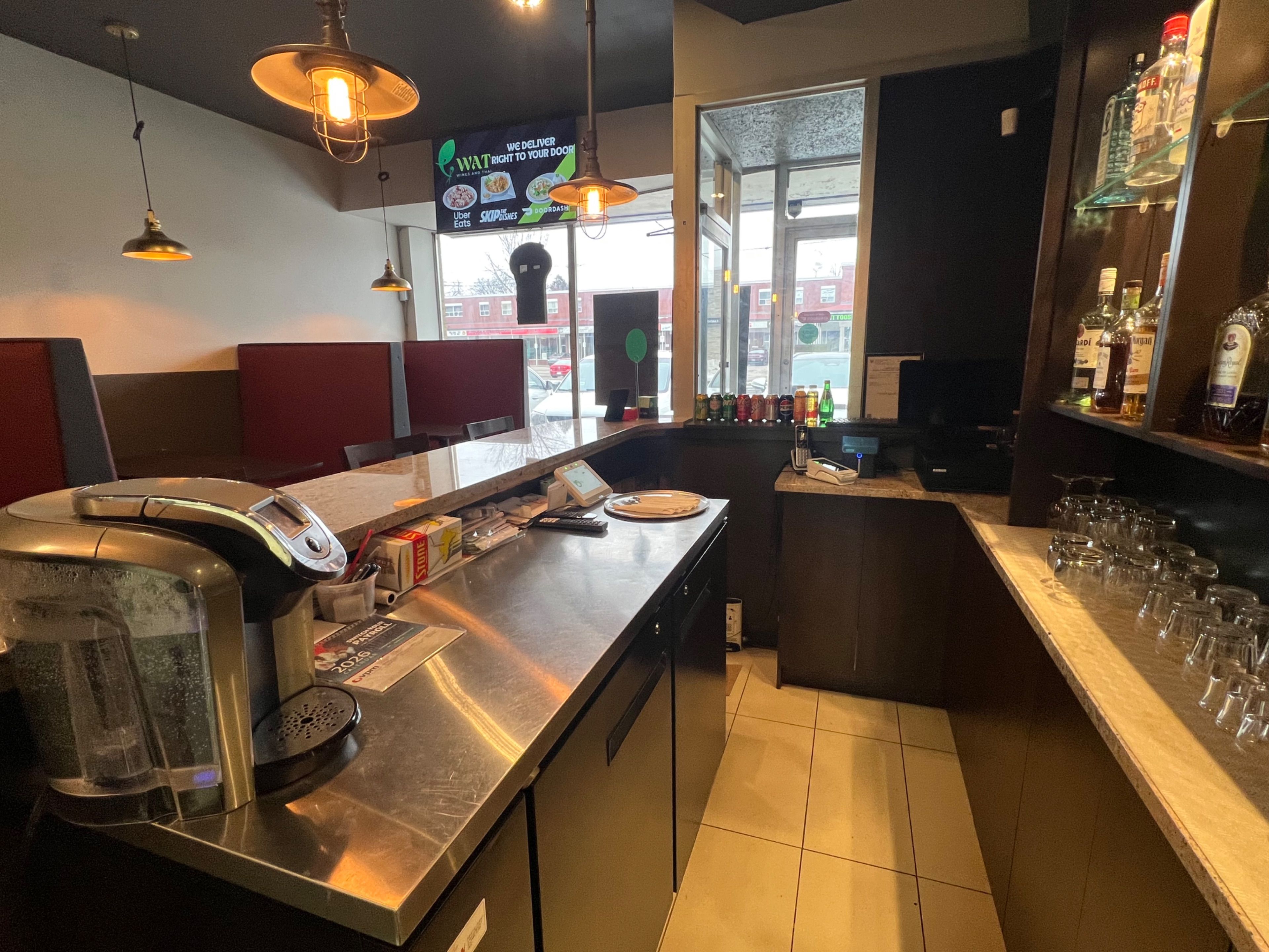 Newly established restaurant located in a prime, high density area with limited competition. Totally renovated and with new equipment: grill kitchen with 15 foot exhaust hood, walk-in cooler, walk-in freezer, dishwasher, etc. All equipment owned. L. L. B. O. With 30 seats. Currently serving best-tasting thai food and chicken wings. Only 2 months established and already doing about $1,000/day and growing. Could be converted to any type of cuisine. Option to add breakfast and extend hours to boost the sales. Great opportunity to be your own boss. Rent $3900/month includes tmi & hst; new lease 5 years + 5 years option to renew.