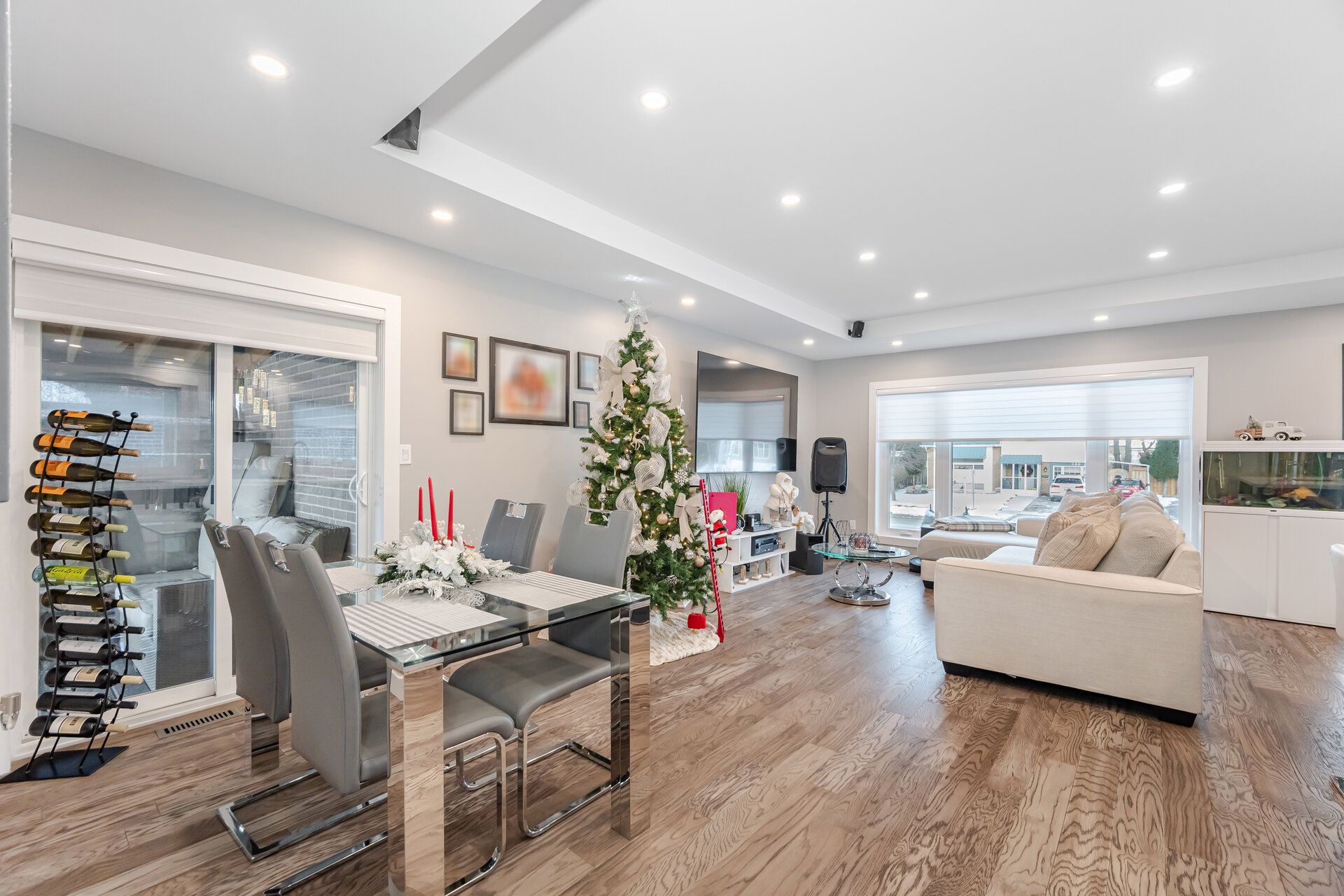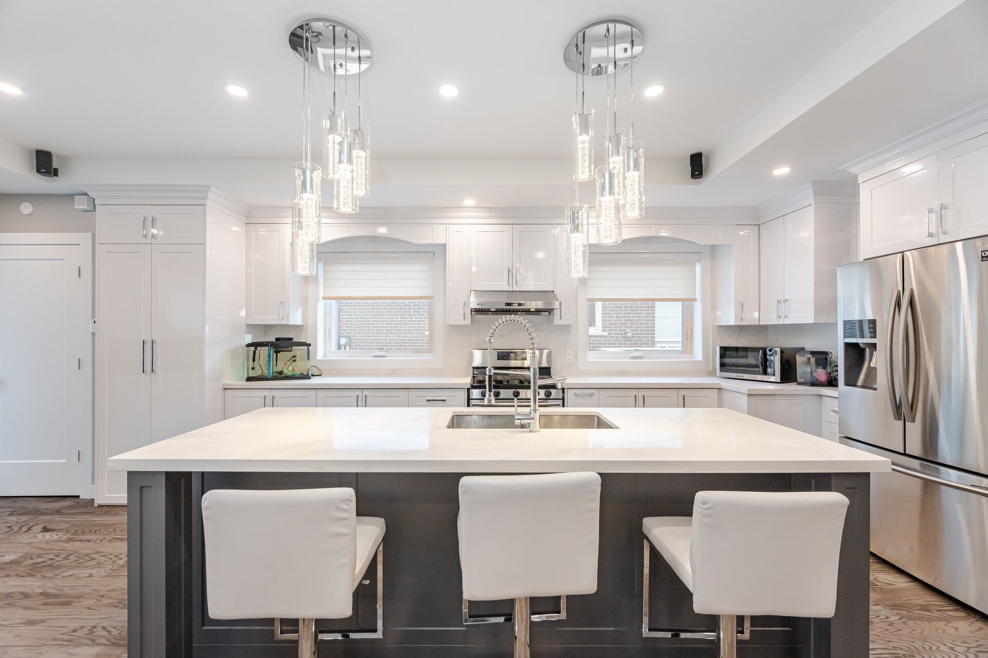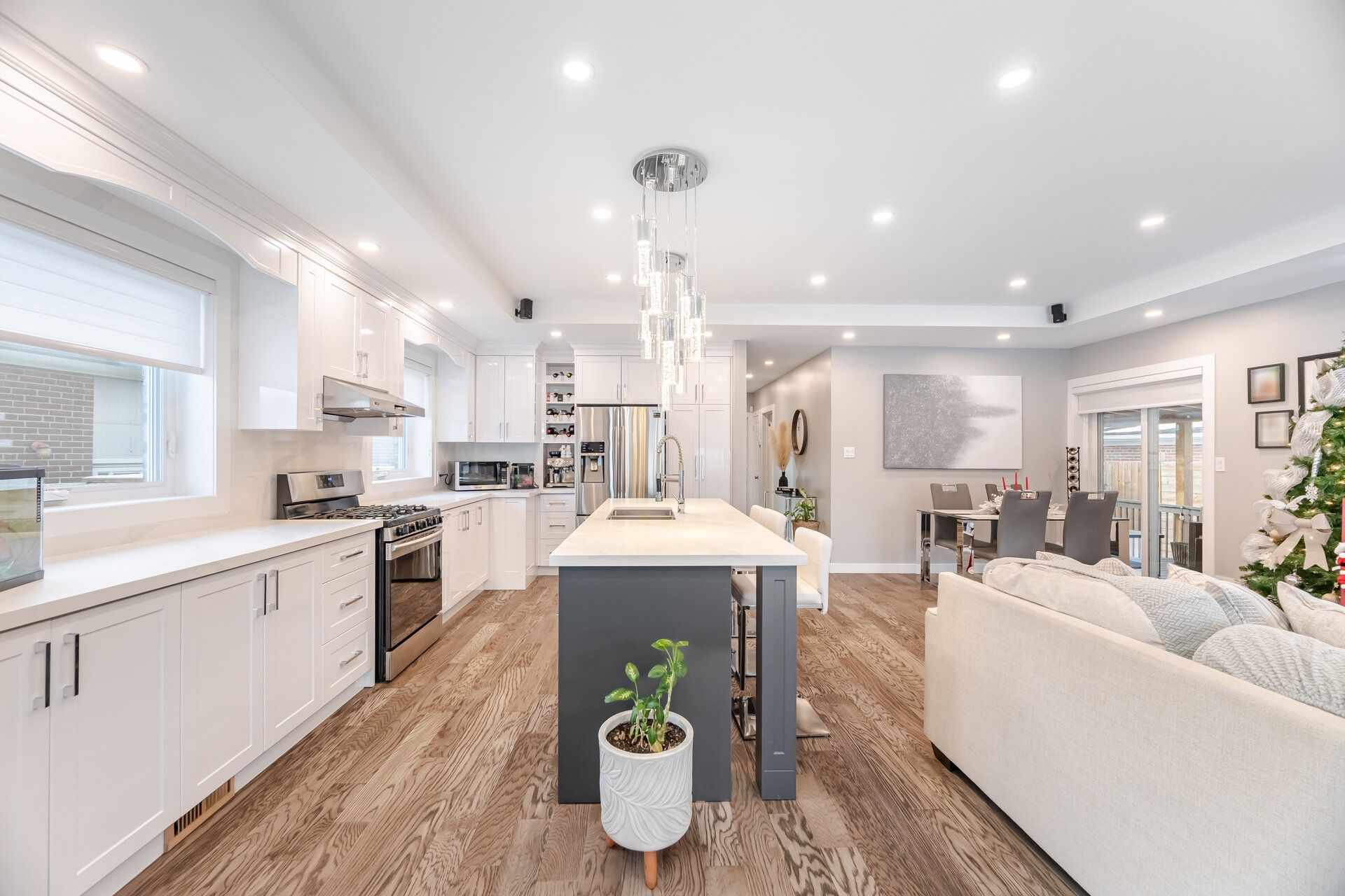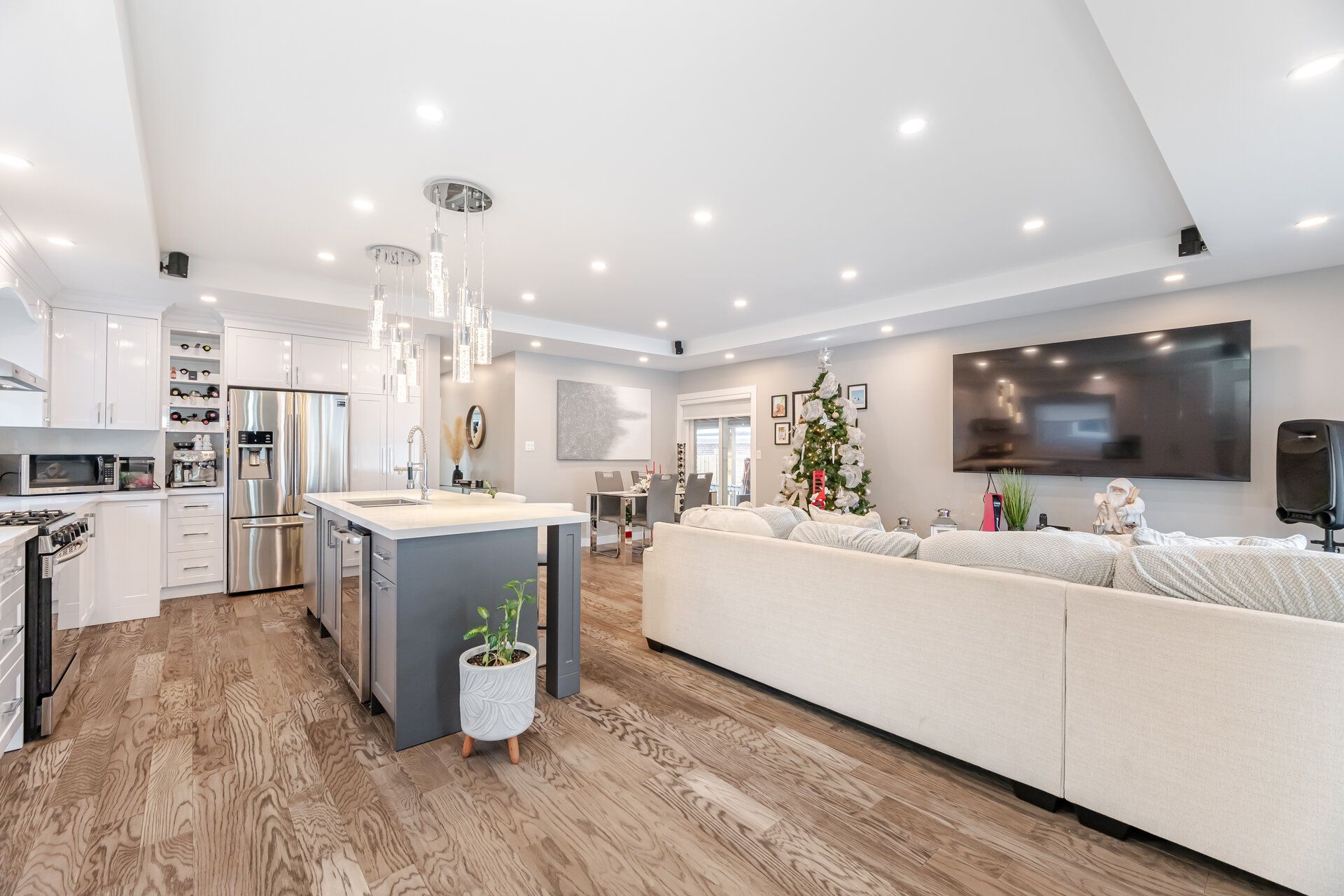 • Modern kitchen with a large island and open concept living space.