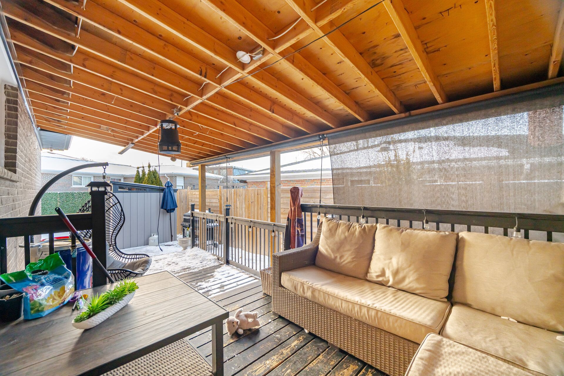 • Private backyard oasis featuring an inground pool and covered porch.