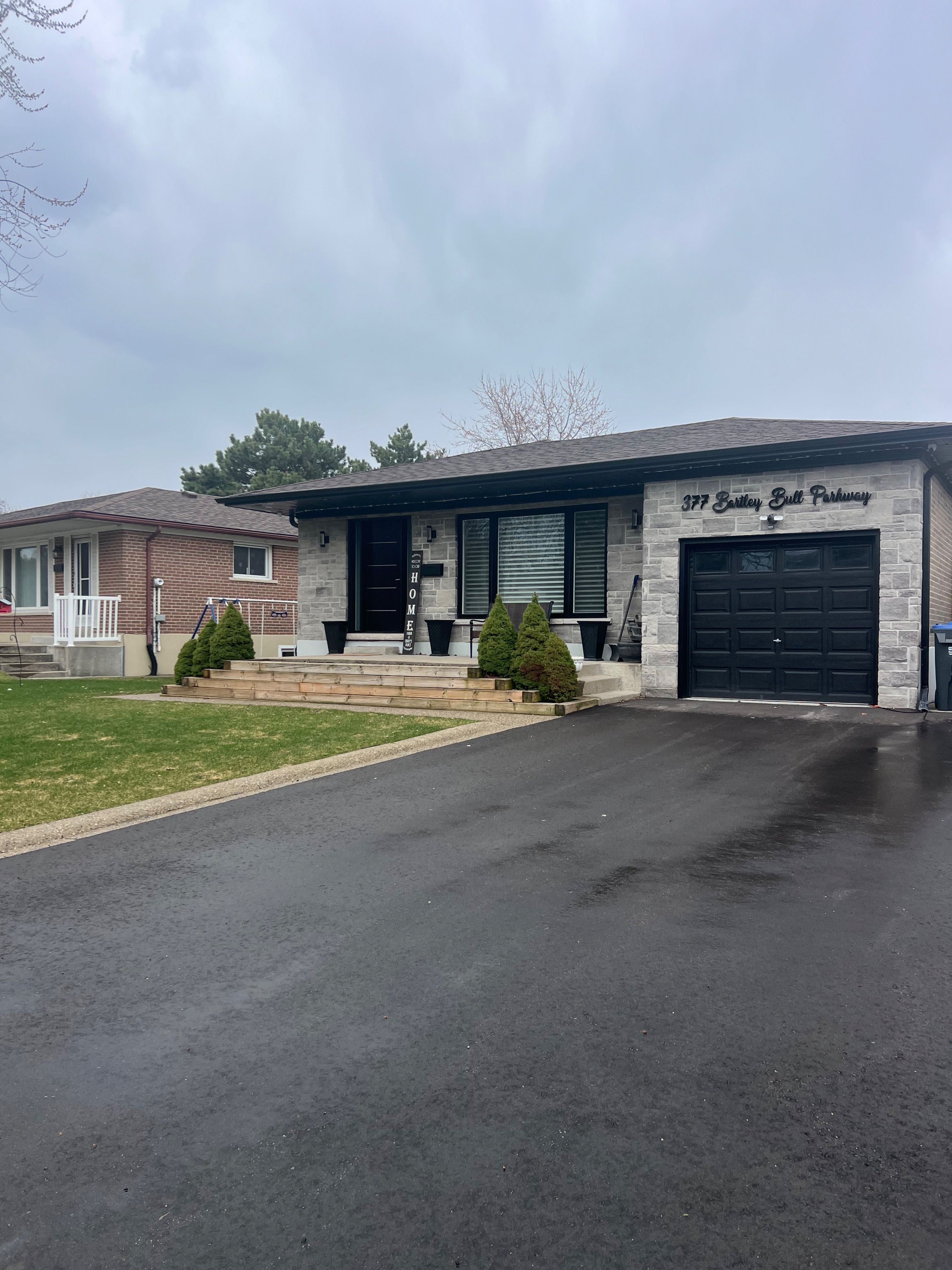 Legal basement apartment!!! Welcome to 377 bartley bull prkwy, a stunning fully upgraded detached bungalow in prestigious peel village community. This exceptional home showcases a designer-inspired main floor featuring a modern white kitchen with large statement island, open concept layout with hardwood floors throughout. Step outside to your own private backyard oasis with a beautifully landscaped setting, inground pool with waterfall feature and covered porch. The spacious primary bedroom offers a walkout to the backyard retreat. The front curb appeal has been enhanced with refaced stone facade, black windows, eaves and soffots redone and newly paved double driveway. This property also offers excellent income potential with a completely separate entrance leading to a fully finished legal 2 bedroom basement apartment with its own laundry room. Ideally located close to schools, parks, public transit and major highways. A rare turnkey opportunity ! ! ! ! Legal basement apartment, inground pool, all new trim doors main level, kitchen (2020) stone facade (2020), windows (2022), furnace/ac (2022), hot water tank owned, paved driveway (2025).