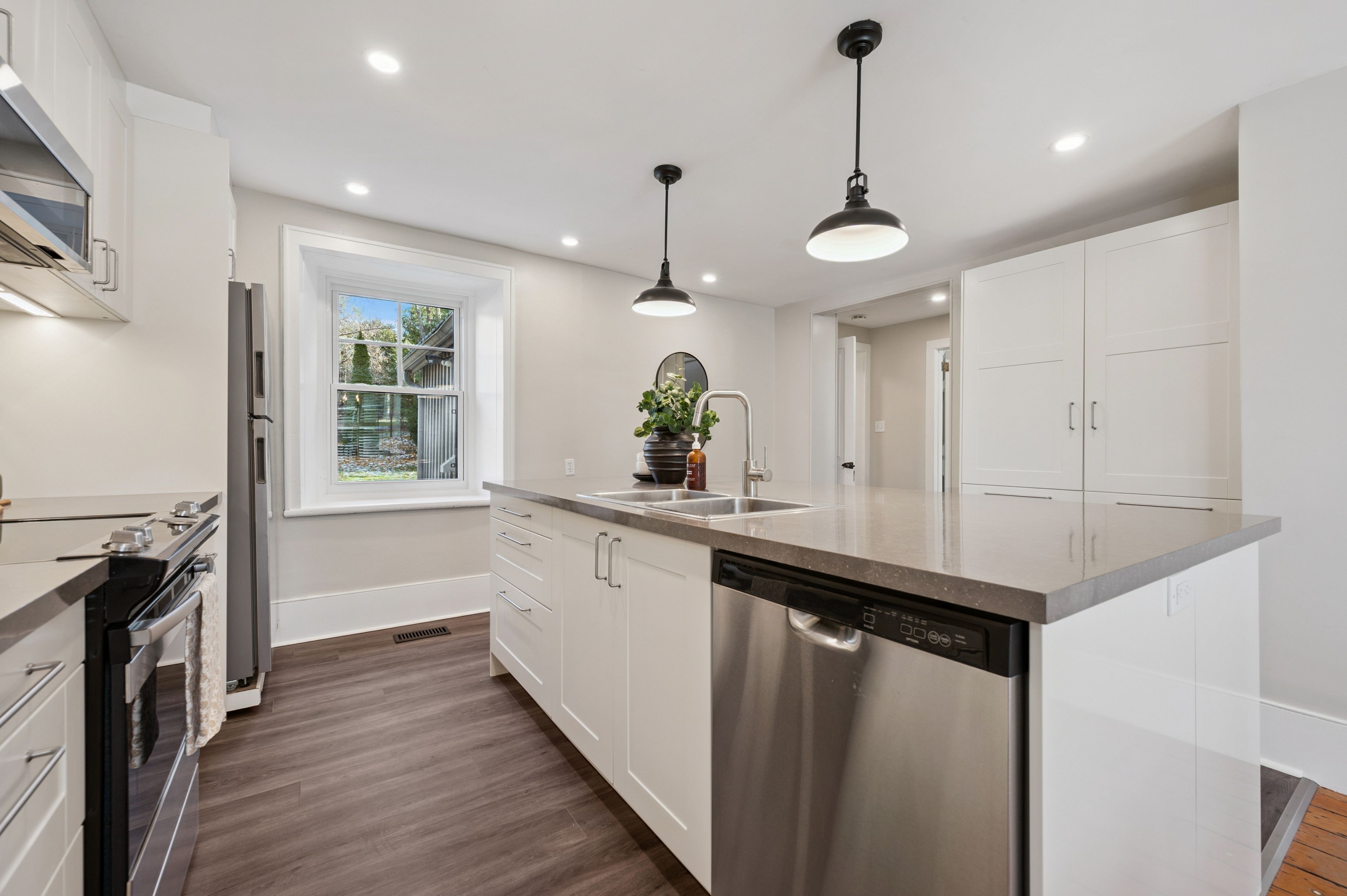 Discover an exceptional opportunity in the heart of elora: two complete homes on one beautiful, treed lot, offering flexibility for multi-generational living, guest accommodations, or strong rental income. The stone house blends heritage charm with modern updates and expansion opportunities. Recent improvements include a fully renovated kitchen, updated bathrooms, new windows and doors, refreshed flooring, insulation upgrades, and a rebuilt chimney. A newer furnace (2023), a/c (2019), water heater (2025) and electrical panel (2020) provide peace of mind. The coach house (built 2024) offers stylish, low-maintenance high efficiency living with beautiful lvp flooring throughout, a bright modern custom kitchen, upstairs laundry, and a spa-like bathroom. The cozy radiant floor heating throughout the main floor is simply perfect for the home. The fenced backyard and landscaped patio create an intimate outdoor retreat. A double garage provides a dedicated parking bay for each home. The property features professional landscaping, mature trees, green space views across the road, paved driveway, new fencing, shared well and water systems, and full appliance packages in both homes. Houses are separately metered. Located just a short walk to downtown elora's restaurants, shops, and riverfront trails, this is a rare chance to live beautifully close to nature and community. With estimated rental income of $3,000+ per month per dwelling, this property is both a lifestyle upgrade and a smart financial move. Two homes. One remarkable setting. Endless possibilities.