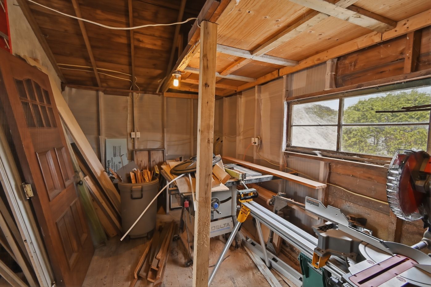 • Large 635 sqft garage includes a sunroom and workshop area for hobbies.